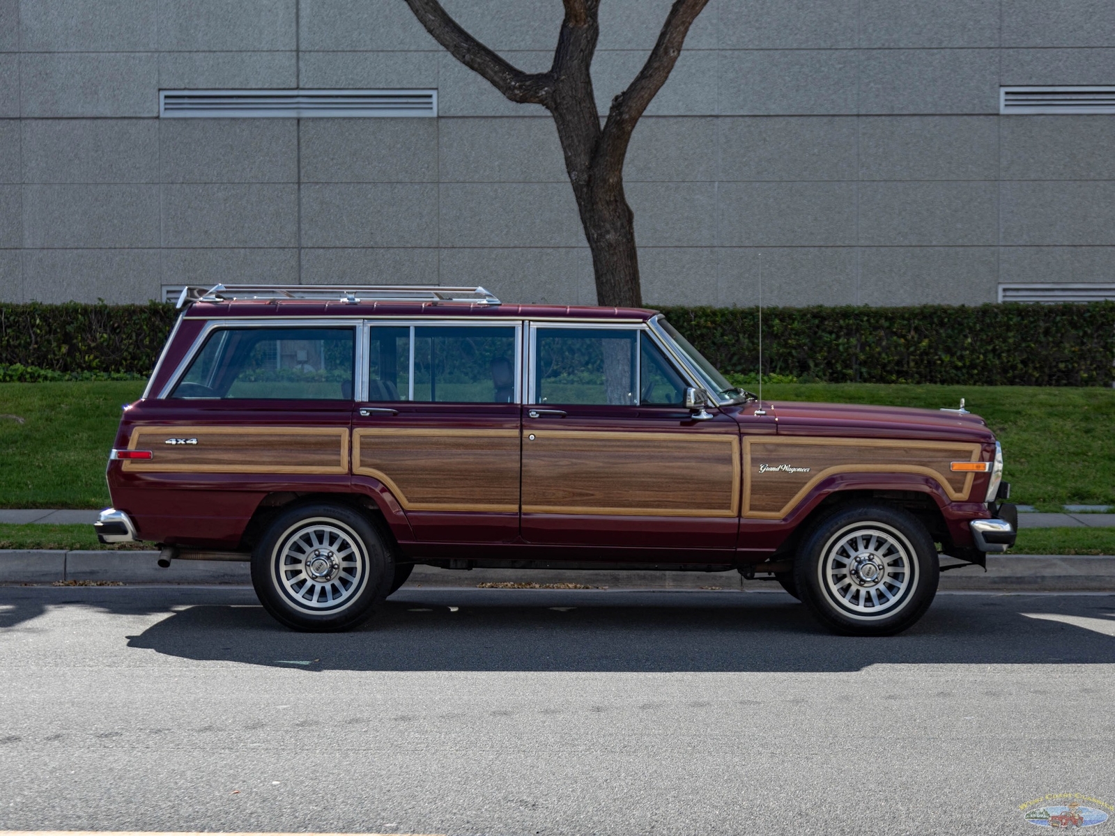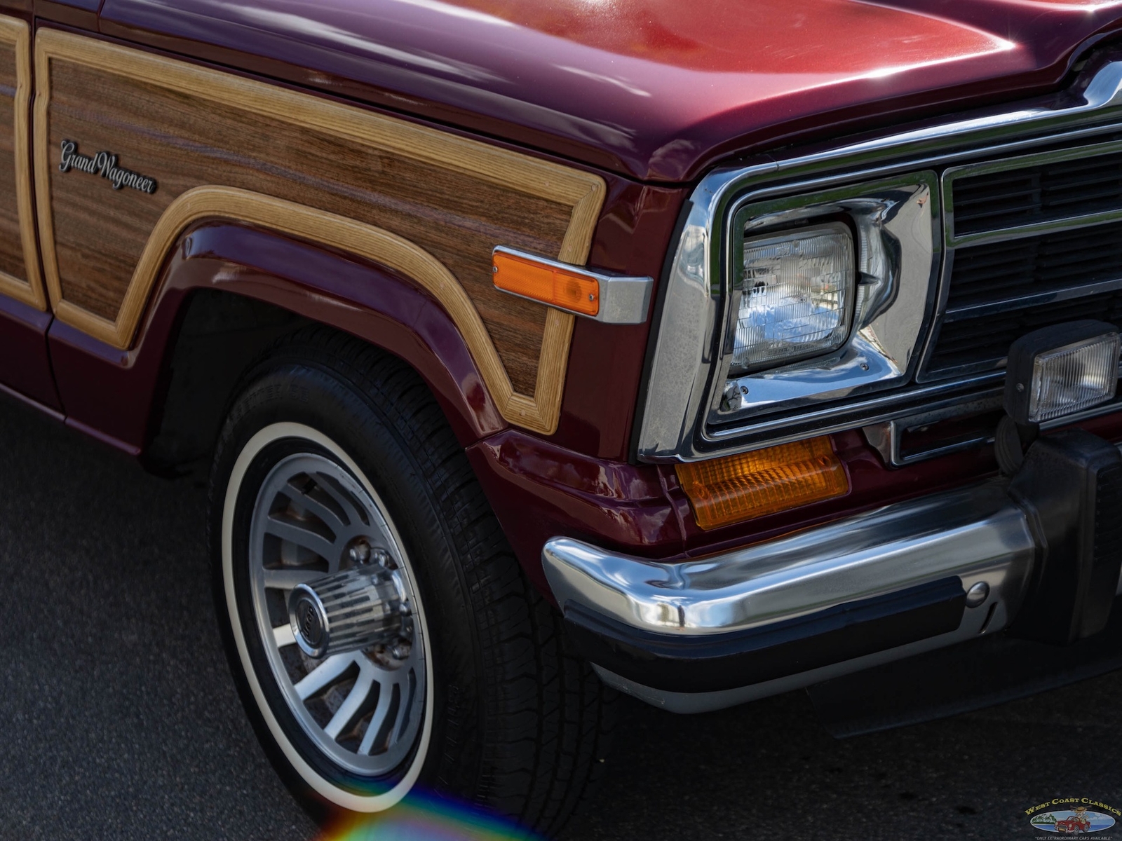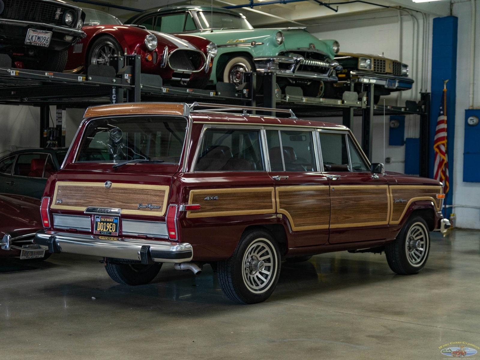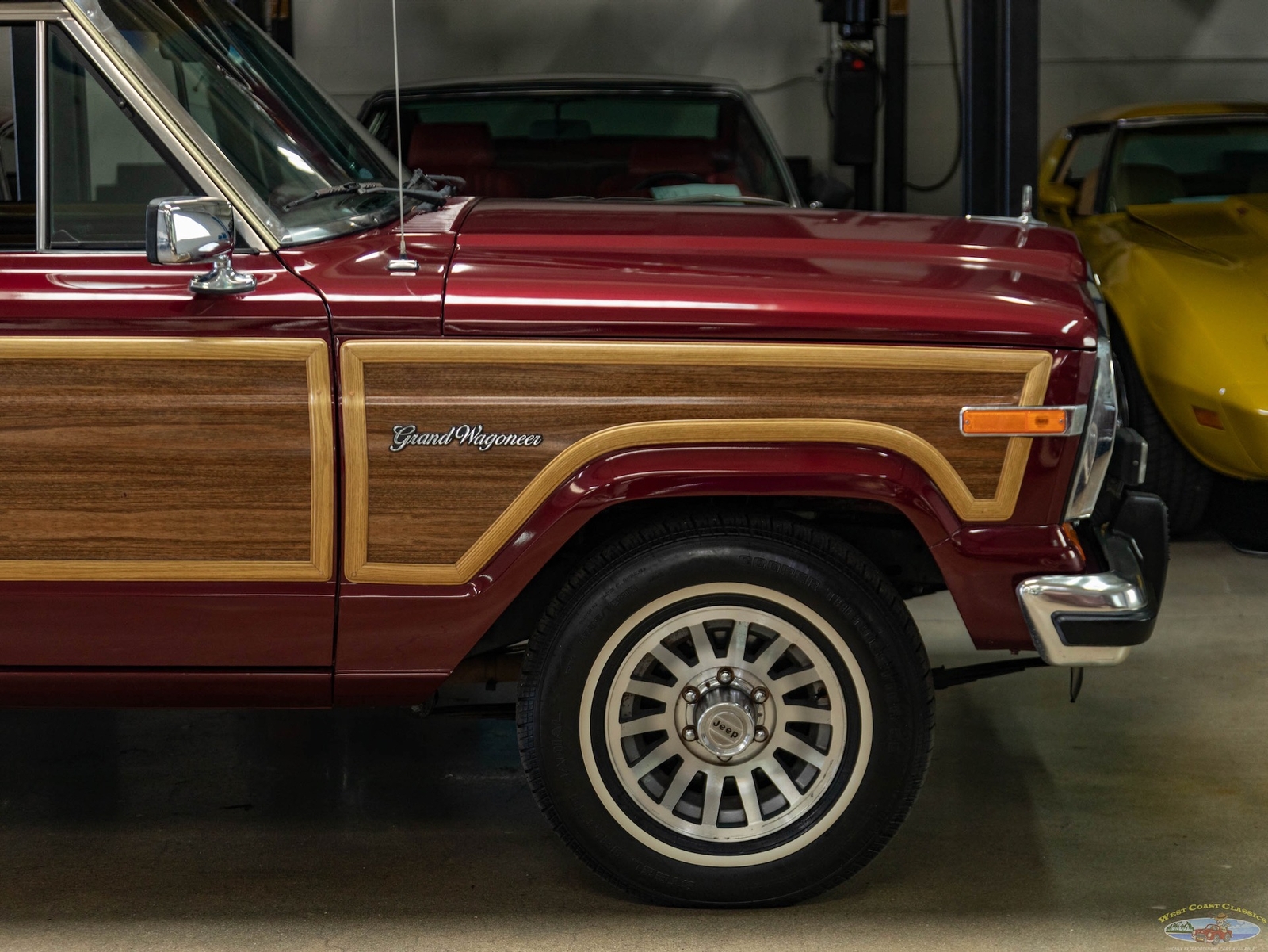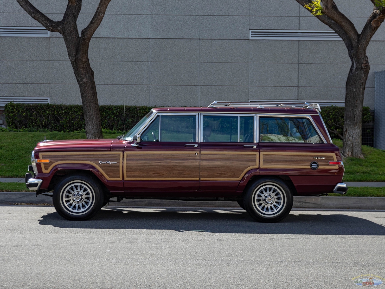 COLLECTIBLE & VERY DESIRABLE TWO OWNER 1991 JEEP GRAND WAGONEER 'FINAL EDITION' 4WD SUV WITH ONLY 71K ORIGINAL MILES!!West Coast Classics are proud to present an absolutely exceptional example of this rare and very desirable American Motors 'Final Edition' 1991 Jeep Grand Wagoneer 4WD 5.9L V8 Full Size SUV model with only 71K original miles and loaded with factory options including; including air conditioning, rear window defroster, power door locks and windows, power steering, power brakes, electric mirrors, tilt wheel, automatic transmission, 'Red' leather seats, tinted glass and power tailgate window!The Jeep Wagoneer was the first luxury 4X4 SUV, compared to its contemporaries such as the basic and utilitarian Land Rover and it only saw very minor mechanical changes throughout its 28 years plus production run, which was the longest production run in US automotive history and which was produced through several different name changes from 1963-1991. The Wagoneer was to replace the original 'Willys Jeep Station Wagon' which had been produced since 1946 and remained in production into 1965. For 1982, new luxury editions named Custom Wagoneer and Wagoneer Brougham were added, and the Wagoneer Limited was substantially upgraded with luxury equipment. Limited buyers got bucket seats with leather trim, a center armrest, and unique door panels; leather-wrapped steering wheel; extra thick carpeting; woodgrain overlay on the lower dash; wide woodgrain side and rear; roofrack; bright drip rail overlay; aluminum wheels (still 15 x 7); a tire upgrade; various moldings; standard air conditioning; power windows and locks; cruise; tilt wheel; FM stereo; the visibility group; electric remote control mirrors; bumper guards; six-way power front seats; and a rear window defogger. In 1984, the full-size Wagoneer line was consolidated into one offering and in 1987 Chrysler bought out American Motors and continued to build the Grand Wagoneer until 1991.These 1987-91 model years are considered the best of the breed due to a number of upgrades including upgraded wood sidings and modern aluminum wheels in 'Gunmetal Grey Metallic' and with two-stage base/clearcoat paint. The 1989-91 years also boasted a number of further improvements including a quality replacement for the air conditioning system, which was prone to leaks in the earlier models, an interior overhead console and compass and other welcome and general improvements in fit and finish.The end of the line came in 1991, after enjoying one of the longest production runs for any vehicle, with the powerful V8 engine and high towing capacity having proved the Grand Wagoneer to be the vehicle of choice for numerous repeat buyers. These late model Grand Wagoneers with low mileage have become a highly prized and coveted vehicle which routinely sell for more than their original sticker prices (see the renown Wagonmaster and other related cult sites for comparison pricing) more than two decades after rolling off the assembly line. In 1991 a total of only 1,560 SJ Grand Wagoneers were produced with an optional 'Final Edition Jeep Grand Wagoneer' badge on the dashboard and this particular example is one such model!This is a genuine two owner vehicle since new and is an absolutely pristine example of this fully loaded and legendary 1991 Jeep Grand Wagoneer 'Final Edition' with only 71K original miles. As previously stated these models have become highly sought after and collectible vehicles with enthusiasts around the world especially seeking out well maintained and low mileage examples of the rare 'Final Edition' like this one!As for the best way to describe the Grand Wagoneer ... large print ads in 1984 declared, Jeep Grand Wagoneer has no rival... why do you suppose its the solitary entry in the full-size, 4-wheel drive luxury wagon class?""The vehicle was always garage kept, by its original owners in Reno, Nevada from whom we purchased the vehicle in the year 2015 with 53,889 original miles and consequently sold to only its second, and now previous owners, in Newport Beach, CA. The vehicle is still virtually as new, there have been no accidents, & the vehicle has never been off road! The vehicle was originally always primarily dealer serviced at 'Land Rover' of Reno, NV and the car has a clean CARFAX report both confirming its ownership and mileage.The original and quite stunning 'Colorado Red' color paint with wood sidings is in excellent condition and the luxurious leather interior is also quite stunning and as new with beautiful original matching Red color leather front and rear seats with virtually no signs of any wear and all the power options and gauges are working as they should including the ice-cold A/C.This well maintained and low original 71K miles highly desirable 1991 'Final Edition' Jeep Grand Wagoneer 4WD 5.9L V8 SUV runs as if still brand new, the transmission shifts smoothly through all the gears, there are no oil leaks and the temperature always remains cool - drives exactly like such a well kept and maintained vehicle with such low miles should! You will surely look long and hard to find a finer or nicer driving and looking example of this legendary full size Jeep Grand Wagoneer, owned by only two very careful and mature non-smoking owners since new!