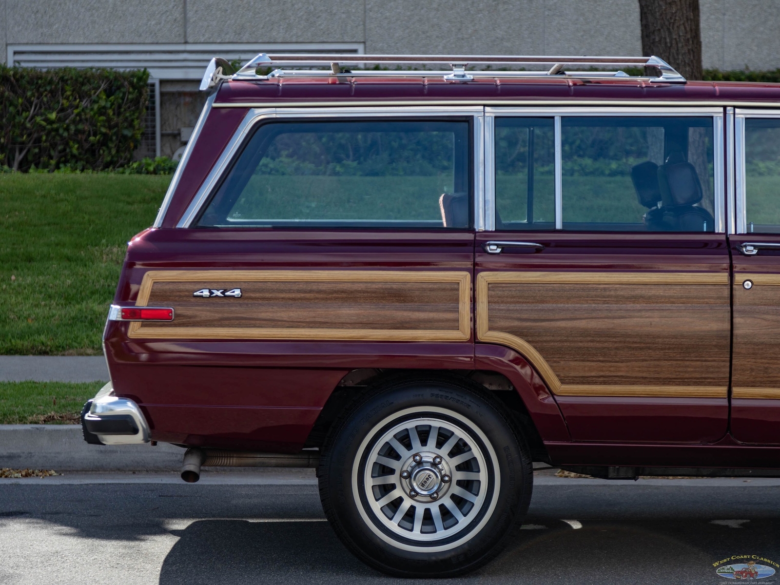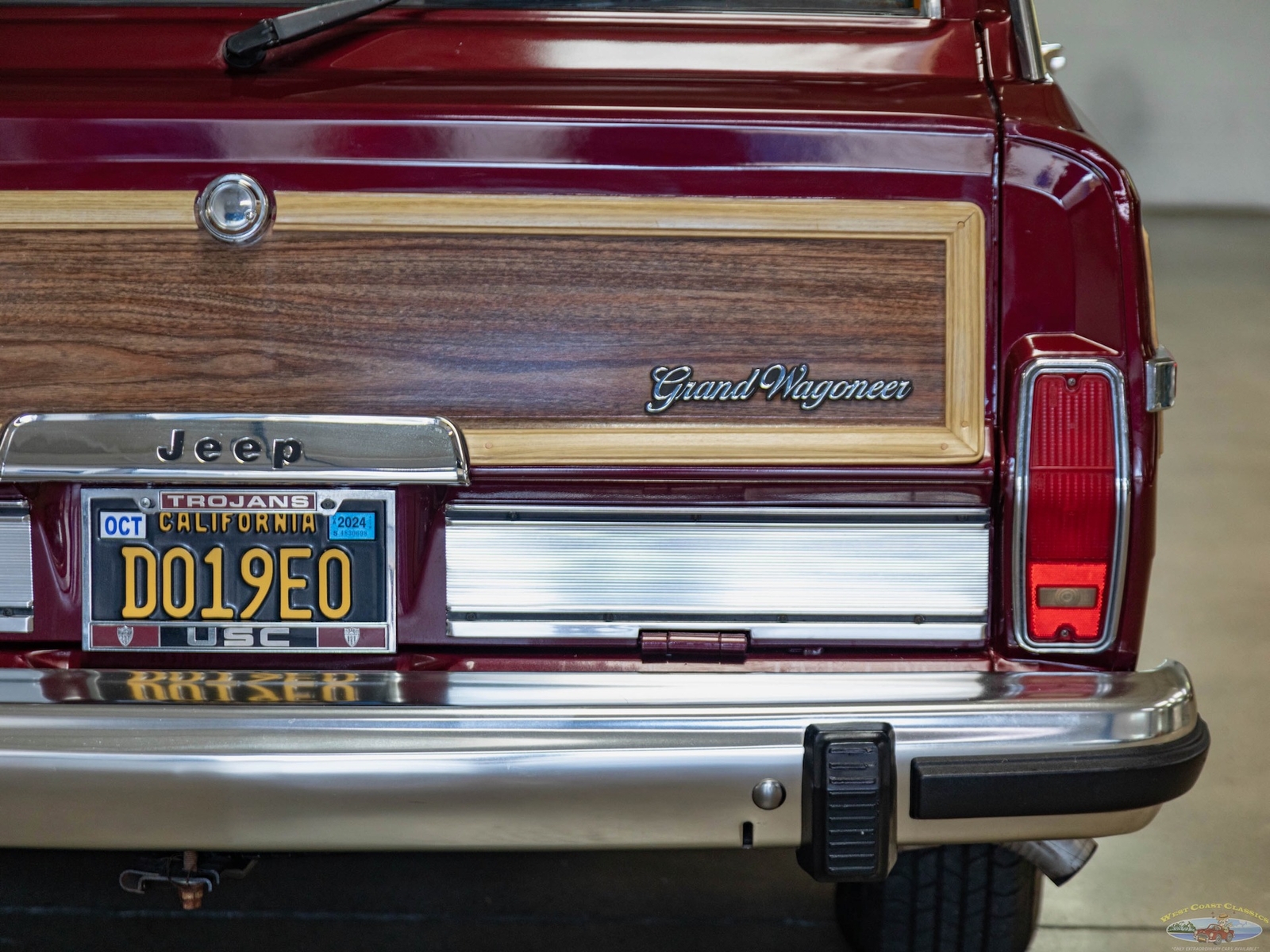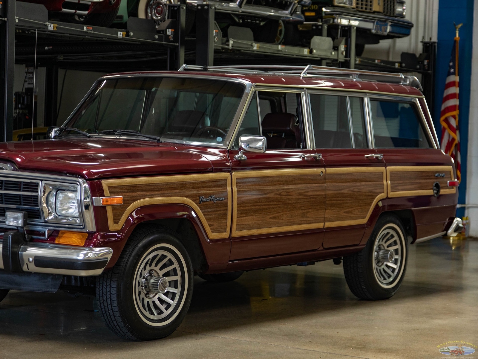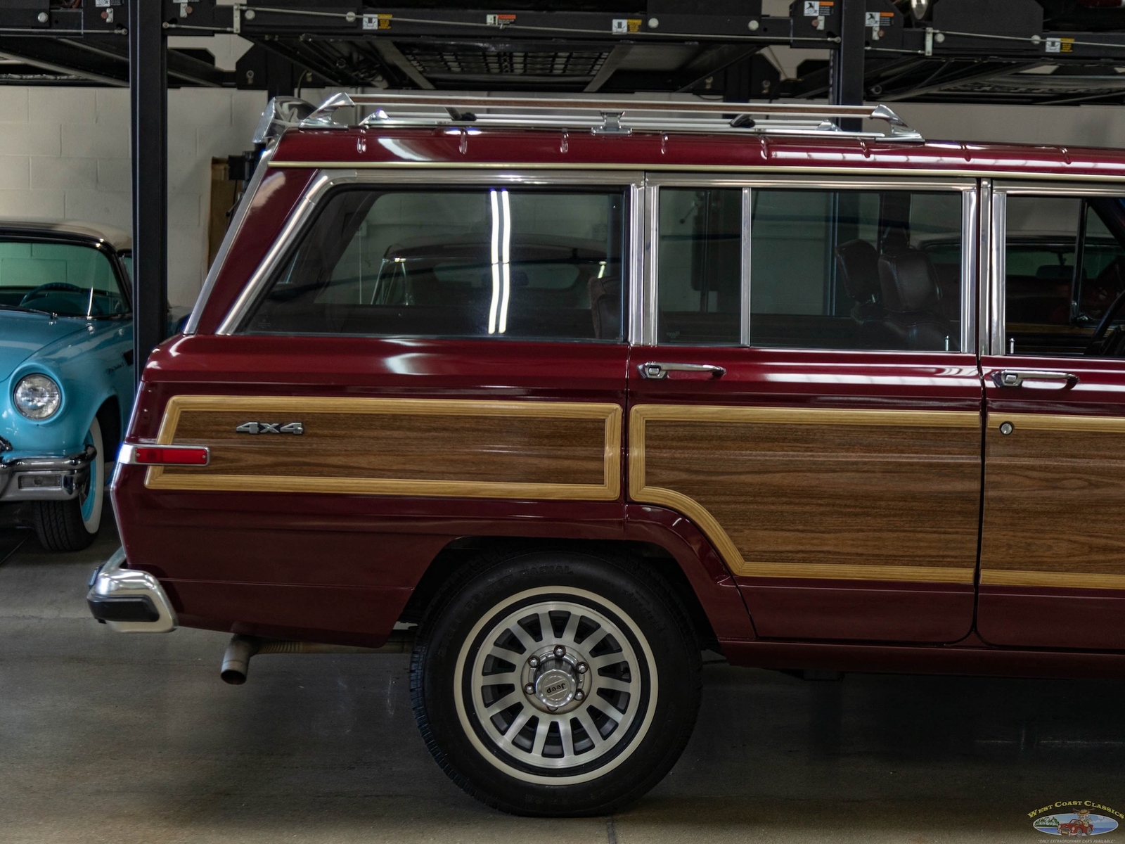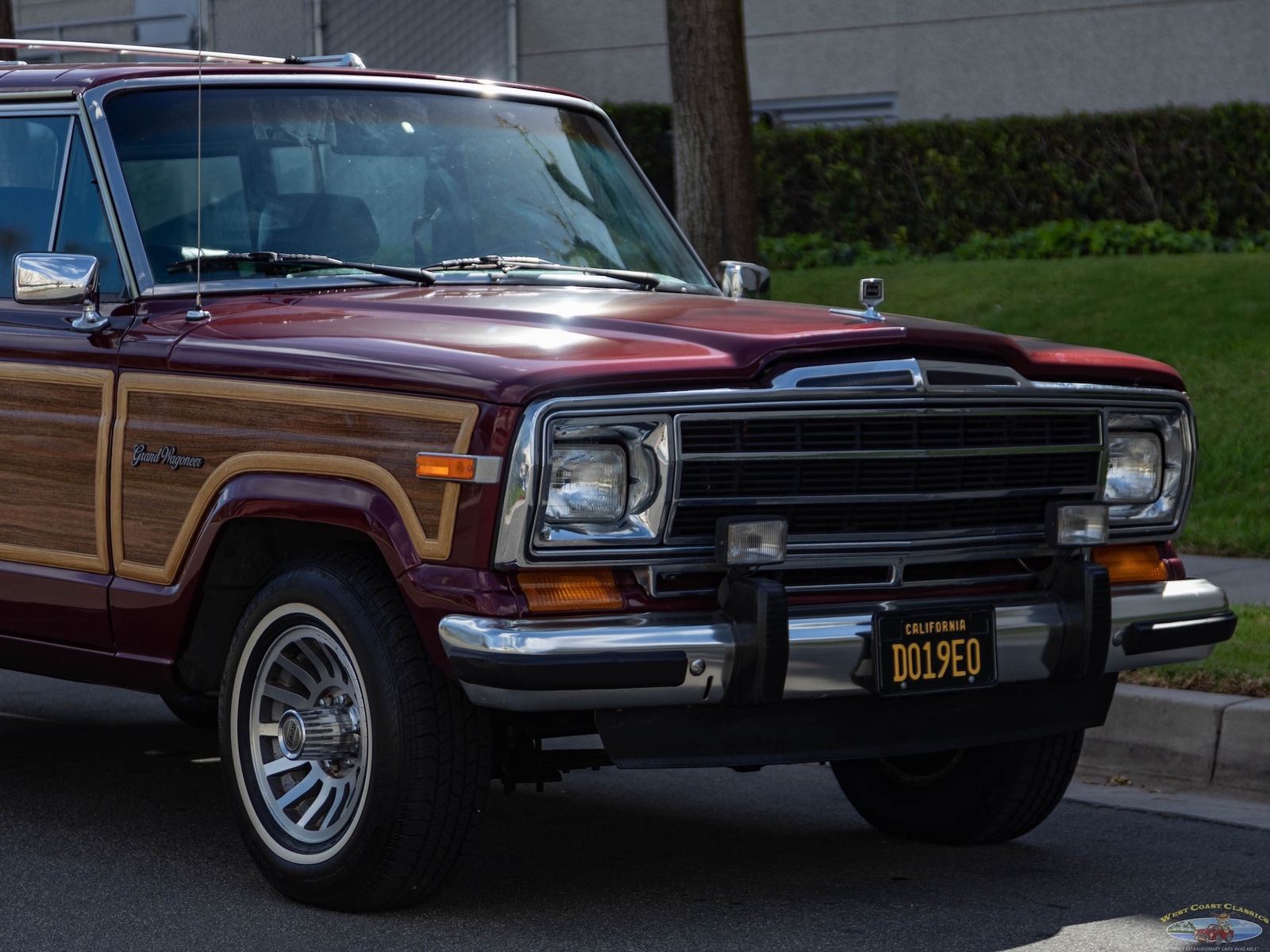 COLLECTIBLE & VERY DESIRABLE TWO OWNER 1991 JEEP GRAND WAGONEER 'FINAL EDITION' 4WD SUV WITH ONLY 71K ORIGINAL MILES!!West Coast Classics are proud to present an absolutely exceptional example of this rare and very desirable American Motors 'Final Edition' 1991 Jeep Grand Wagoneer 4WD 5.9L V8 Full Size SUV model with only 71K original miles and loaded with factory options including; including air conditioning, rear window defroster, power door locks and windows, power steering, power brakes, electric mirrors, tilt wheel, automatic transmission, 'Red' leather seats, tinted glass and power tailgate window!The Jeep Wagoneer was the first luxury 4X4 SUV, compared to its contemporaries such as the basic and utilitarian Land Rover and it only saw very minor mechanical changes throughout its 28 years plus production run, which was the longest production run in US automotive history and which was produced through several different name changes from 1963-1991. The Wagoneer was to replace the original 'Willys Jeep Station Wagon' which had been produced since 1946 and remained in production into 1965. For 1982, new luxury editions named Custom Wagoneer and Wagoneer Brougham were added, and the Wagoneer Limited was substantially upgraded with luxury equipment. Limited buyers got bucket seats with leather trim, a center armrest, and unique door panels; leather-wrapped steering wheel; extra thick carpeting; woodgrain overlay on the lower dash; wide woodgrain side and rear; roofrack; bright drip rail overlay; aluminum wheels (still 15 x 7); a tire upgrade; various moldings; standard air conditioning; power windows and locks; cruise; tilt wheel; FM stereo; the visibility group; electric remote control mirrors; bumper guards; six-way power front seats; and a rear window defogger. In 1984, the full-size Wagoneer line was consolidated into one offering and in 1987 Chrysler bought out American Motors and continued to build the Grand Wagoneer until 1991.These 1987-91 model years are considered the best of the breed due to a number of upgrades including upgraded wood sidings and modern aluminum wheels in 'Gunmetal Grey Metallic' and with two-stage base/clearcoat paint. The 1989-91 years also boasted a number of further improvements including a quality replacement for the air conditioning system, which was prone to leaks in the earlier models, an interior overhead console and compass and other welcome and general improvements in fit and finish.The end of the line came in 1991, after enjoying one of the longest production runs for any vehicle, with the powerful V8 engine and high towing capacity having proved the Grand Wagoneer to be the vehicle of choice for numerous repeat buyers. These late model Grand Wagoneers with low mileage have become a highly prized and coveted vehicle which routinely sell for more than their original sticker prices (see the renown Wagonmaster and other related cult sites for comparison pricing) more than two decades after rolling off the assembly line. In 1991 a total of only 1,560 SJ Grand Wagoneers were produced with an optional 'Final Edition Jeep Grand Wagoneer' badge on the dashboard and this particular example is one such model!This is a genuine two owner vehicle since new and is an absolutely pristine example of this fully loaded and legendary 1991 Jeep Grand Wagoneer 'Final Edition' with only 71K original miles. As previously stated these models have become highly sought after and collectible vehicles with enthusiasts around the world especially seeking out well maintained and low mileage examples of the rare 'Final Edition' like this one!As for the best way to describe the Grand Wagoneer ... large print ads in 1984 declared, Jeep Grand Wagoneer has no rival... why do you suppose its the solitary entry in the full-size, 4-wheel drive luxury wagon class?""The vehicle was always garage kept, by its original owners in Reno, Nevada from whom we purchased the vehicle in the year 2015 with 53,889 original miles and consequently sold to only its second, and now previous owners, in Newport Beach, CA. The vehicle is still virtually as new, there have been no accidents, & the vehicle has never been off road! The vehicle was originally always primarily dealer serviced at 'Land Rover' of Reno, NV and the car has a clean CARFAX report both confirming its ownership and mileage.The original and quite stunning 'Colorado Red' color paint with wood sidings is in excellent condition and the luxurious leather interior is also quite stunning and as new with beautiful original matching Red color leather front and rear seats with virtually no signs of any wear and all the power options and gauges are working as they should including the ice-cold A/C.This well maintained and low original 71K miles highly desirable 1991 'Final Edition' Jeep Grand Wagoneer 4WD 5.9L V8 SUV runs as if still brand new, the transmission shifts smoothly through all the gears, there are no oil leaks and the temperature always remains cool - drives exactly like such a well kept and maintained vehicle with such low miles should! You will surely look long and hard to find a finer or nicer driving and looking example of this legendary full size Jeep Grand Wagoneer, owned by only two very careful and mature non-smoking owners since new!