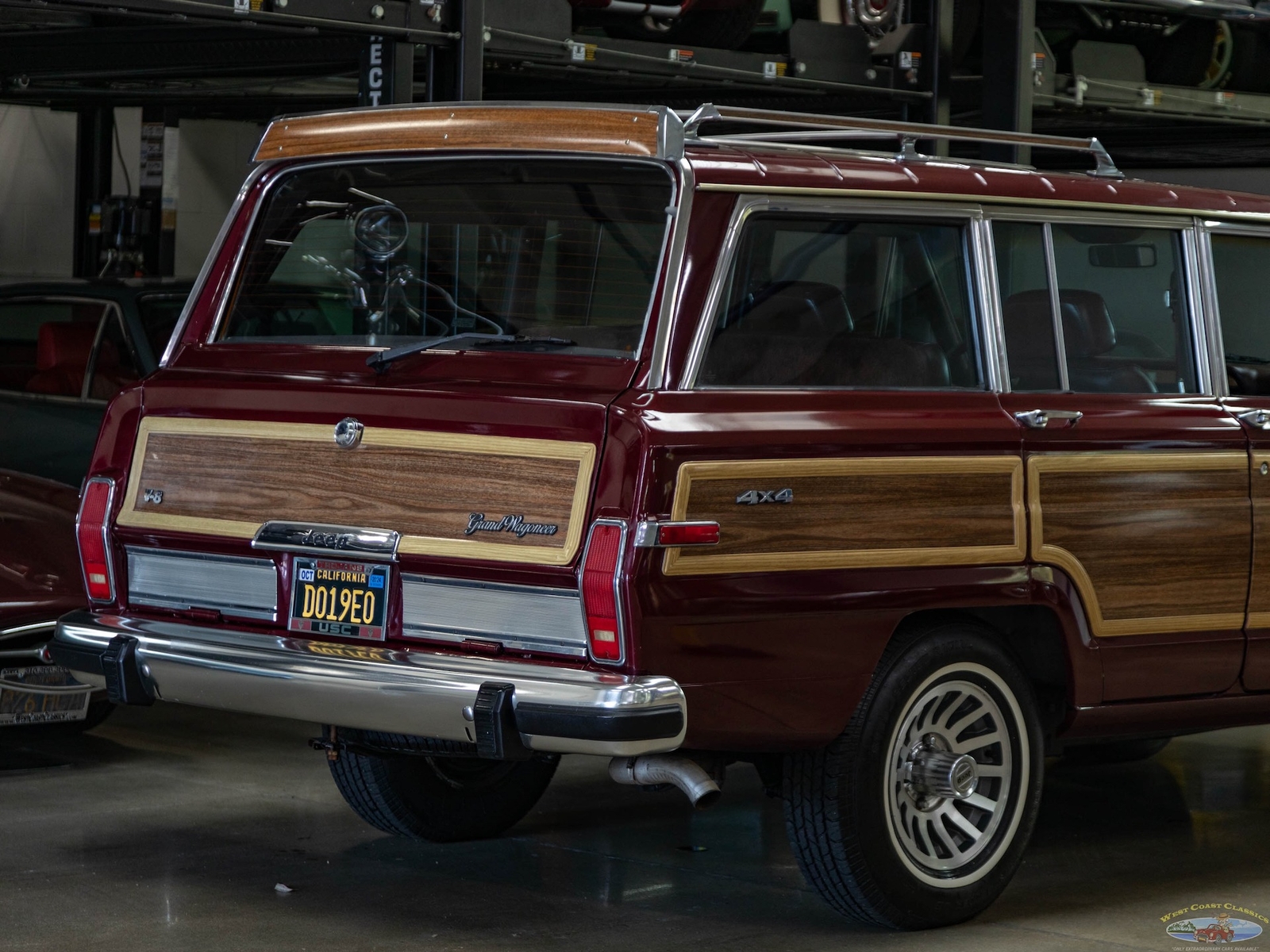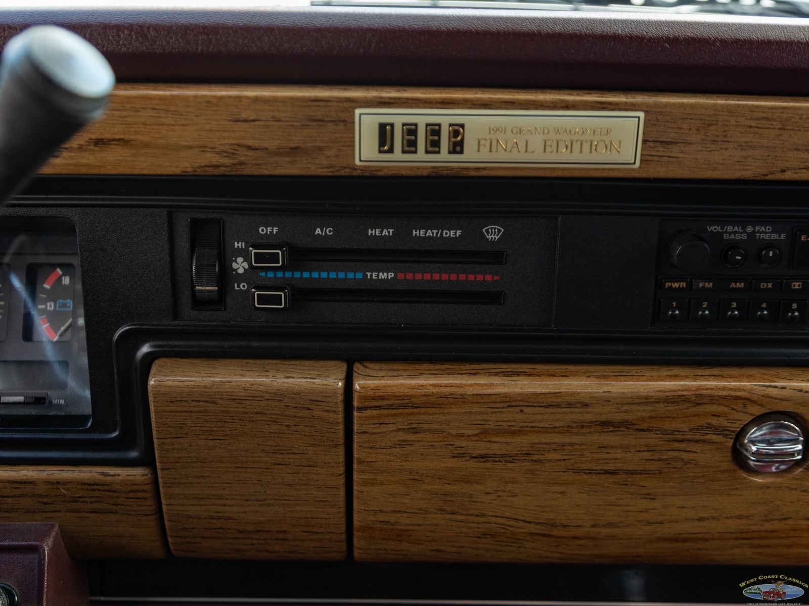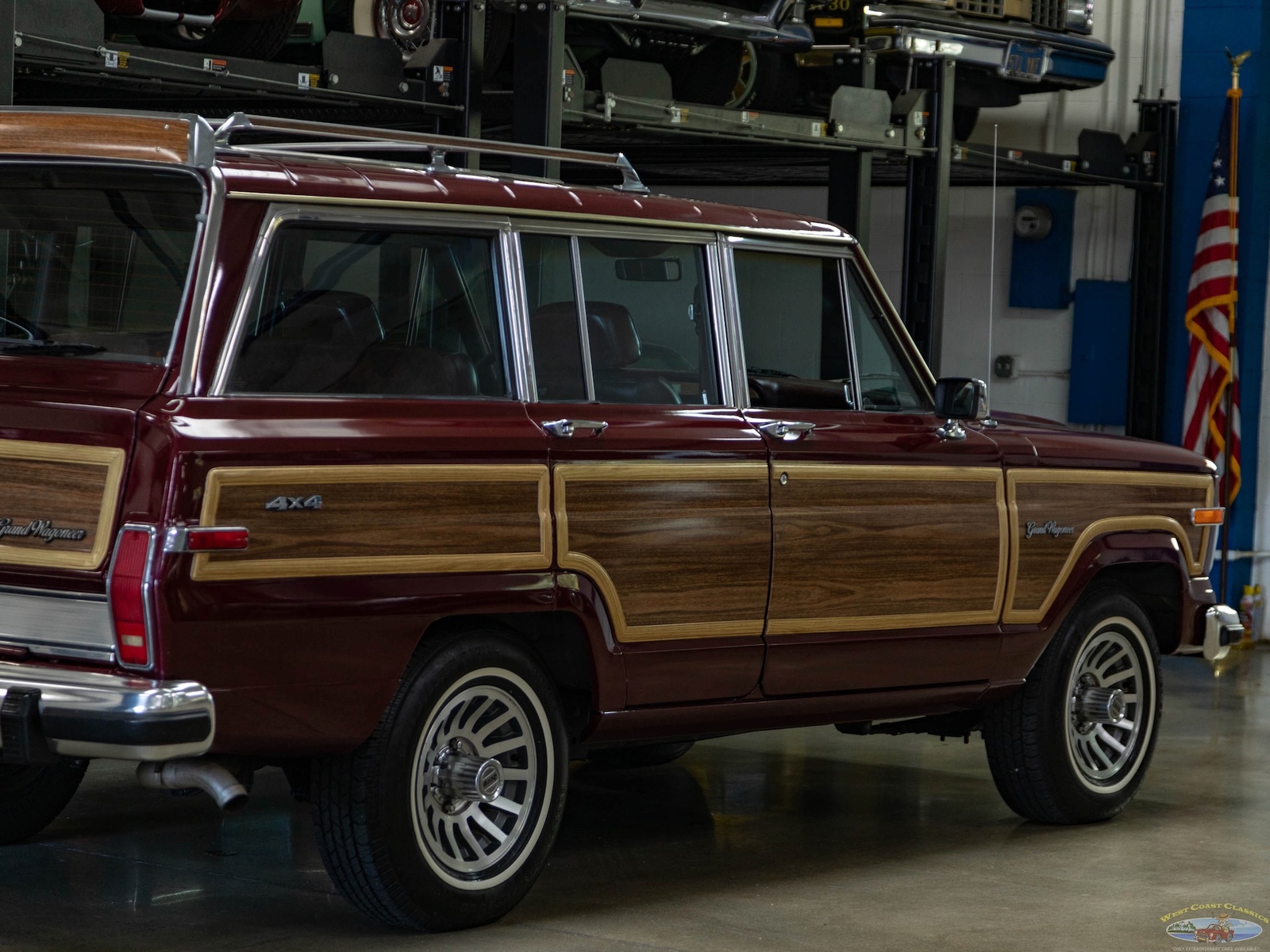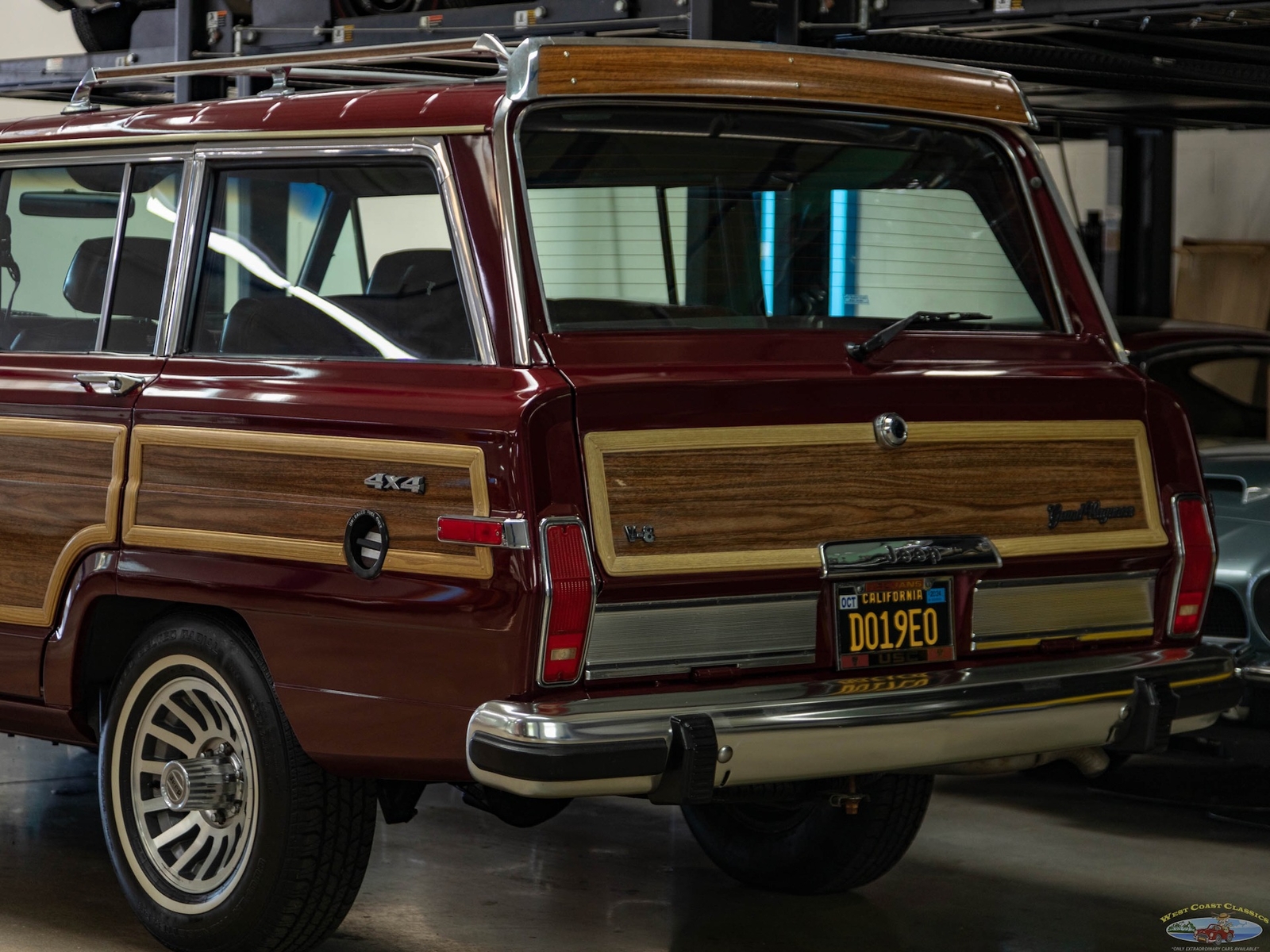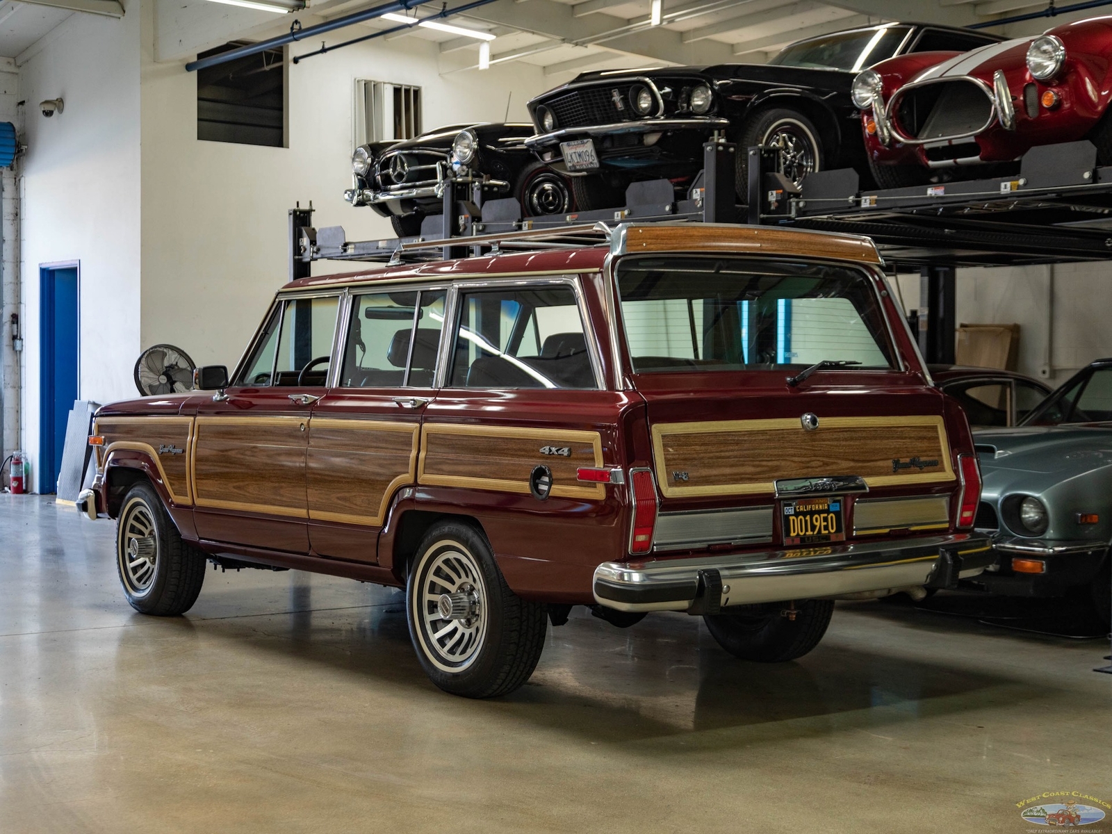 COLLECTIBLE & VERY DESIRABLE TWO OWNER 1991 JEEP GRAND WAGONEER 'FINAL EDITION' 4WD SUV WITH ONLY 71K ORIGINAL MILES!!West Coast Classics are proud to present an absolutely exceptional example of this rare and very desirable American Motors 'Final Edition' 1991 Jeep Grand Wagoneer 4WD 5.9L V8 Full Size SUV model with only 71K original miles and loaded with factory options including; including air conditioning, rear window defroster, power door locks and windows, power steering, power brakes, electric mirrors, tilt wheel, automatic transmission, 'Red' leather seats, tinted glass and power tailgate window!The Jeep Wagoneer was the first luxury 4X4 SUV, compared to its contemporaries such as the basic and utilitarian Land Rover and it only saw very minor mechanical changes throughout its 28 years plus production run, which was the longest production run in US automotive history and which was produced through several different name changes from 1963-1991. The Wagoneer was to replace the original 'Willys Jeep Station Wagon' which had been produced since 1946 and remained in production into 1965. For 1982, new luxury editions named Custom Wagoneer and Wagoneer Brougham were added, and the Wagoneer Limited was substantially upgraded with luxury equipment. Limited buyers got bucket seats with leather trim, a center armrest, and unique door panels; leather-wrapped steering wheel; extra thick carpeting; woodgrain overlay on the lower dash; wide woodgrain side and rear; roofrack; bright drip rail overlay; aluminum wheels (still 15 x 7); a tire upgrade; various moldings; standard air conditioning; power windows and locks; cruise; tilt wheel; FM stereo; the visibility group; electric remote control mirrors; bumper guards; six-way power front seats; and a rear window defogger. In 1984, the full-size Wagoneer line was consolidated into one offering and in 1987 Chrysler bought out American Motors and continued to build the Grand Wagoneer until 1991.These 1987-91 model years are considered the best of the breed due to a number of upgrades including upgraded wood sidings and modern aluminum wheels in 'Gunmetal Grey Metallic' and with two-stage base/clearcoat paint. The 1989-91 years also boasted a number of further improvements including a quality replacement for the air conditioning system, which was prone to leaks in the earlier models, an interior overhead console and compass and other welcome and general improvements in fit and finish.The end of the line came in 1991, after enjoying one of the longest production runs for any vehicle, with the powerful V8 engine and high towing capacity having proved the Grand Wagoneer to be the vehicle of choice for numerous repeat buyers. These late model Grand Wagoneers with low mileage have become a highly prized and coveted vehicle which routinely sell for more than their original sticker prices (see the renown Wagonmaster and other related cult sites for comparison pricing) more than two decades after rolling off the assembly line. In 1991 a total of only 1,560 SJ Grand Wagoneers were produced with an optional 'Final Edition Jeep Grand Wagoneer' badge on the dashboard and this particular example is one such model!This is a genuine two owner vehicle since new and is an absolutely pristine example of this fully loaded and legendary 1991 Jeep Grand Wagoneer 'Final Edition' with only 71K original miles. As previously stated these models have become highly sought after and collectible vehicles with enthusiasts around the world especially seeking out well maintained and low mileage examples of the rare 'Final Edition' like this one!As for the best way to describe the Grand Wagoneer ... large print ads in 1984 declared, Jeep Grand Wagoneer has no rival... why do you suppose its the solitary entry in the full-size, 4-wheel drive luxury wagon class?""The vehicle was always garage kept, by its original owners in Reno, Nevada from whom we purchased the vehicle in the year 2015 with 53,889 original miles and consequently sold to only its second, and now previous owners, in Newport Beach, CA. The vehicle is still virtually as new, there have been no accidents, & the vehicle has never been off road! The vehicle was originally always primarily dealer serviced at 'Land Rover' of Reno, NV and the car has a clean CARFAX report both confirming its ownership and mileage.The original and quite stunning 'Colorado Red' color paint with wood sidings is in excellent condition and the luxurious leather interior is also quite stunning and as new with beautiful original matching Red color leather front and rear seats with virtually no signs of any wear and all the power options and gauges are working as they should including the ice-cold A/C.This well maintained and low original 71K miles highly desirable 1991 'Final Edition' Jeep Grand Wagoneer 4WD 5.9L V8 SUV runs as if still brand new, the transmission shifts smoothly through all the gears, there are no oil leaks and the temperature always remains cool - drives exactly like such a well kept and maintained vehicle with such low miles should! You will surely look long and hard to find a finer or nicer driving and looking example of this legendary full size Jeep Grand Wagoneer, owned by only two very careful and mature non-smoking owners since new!
