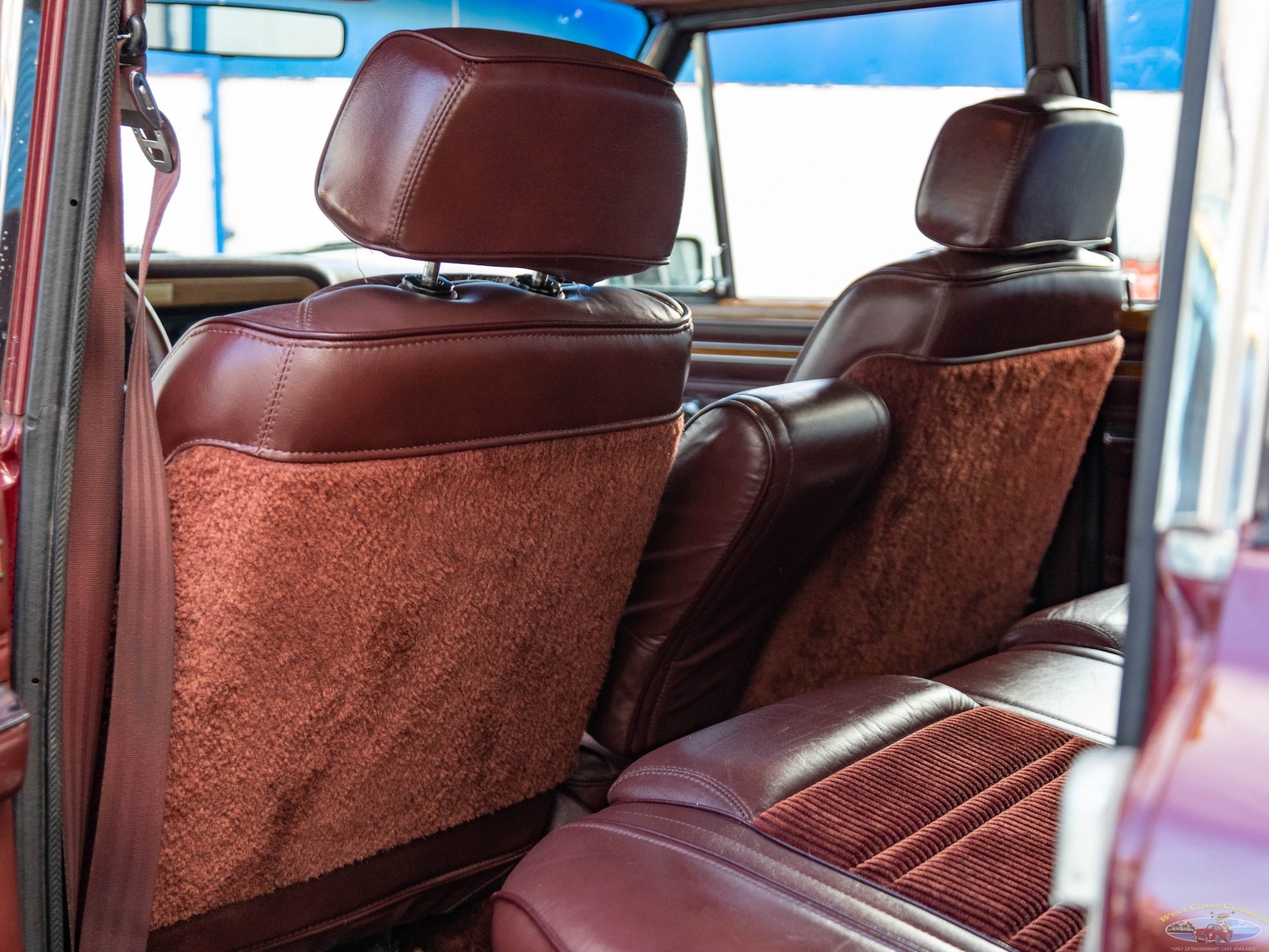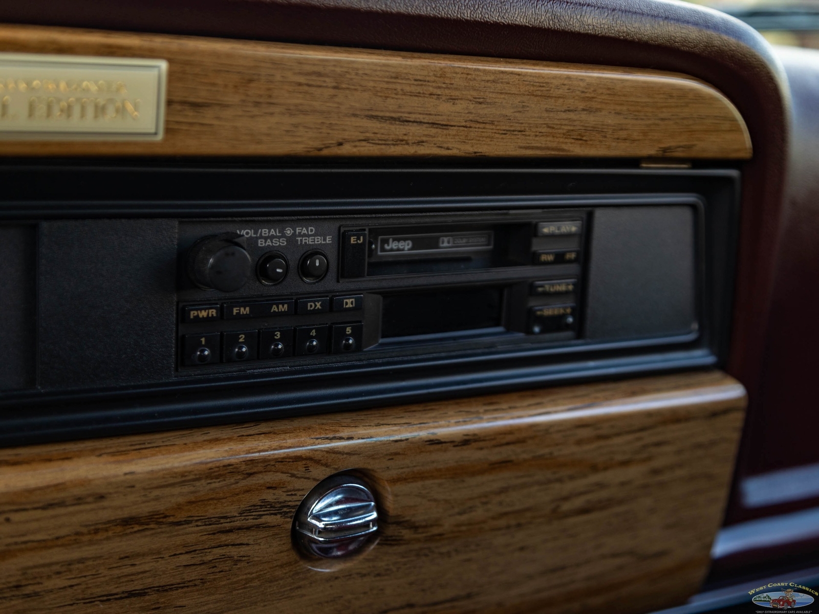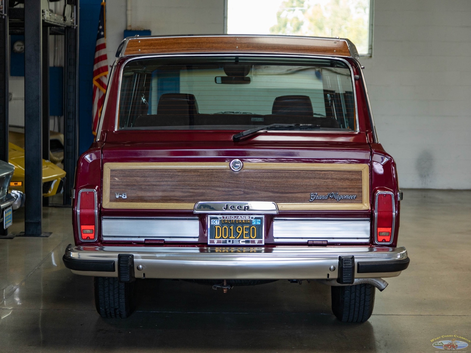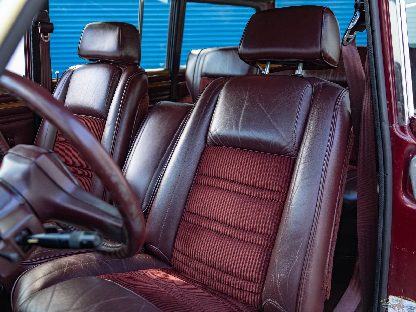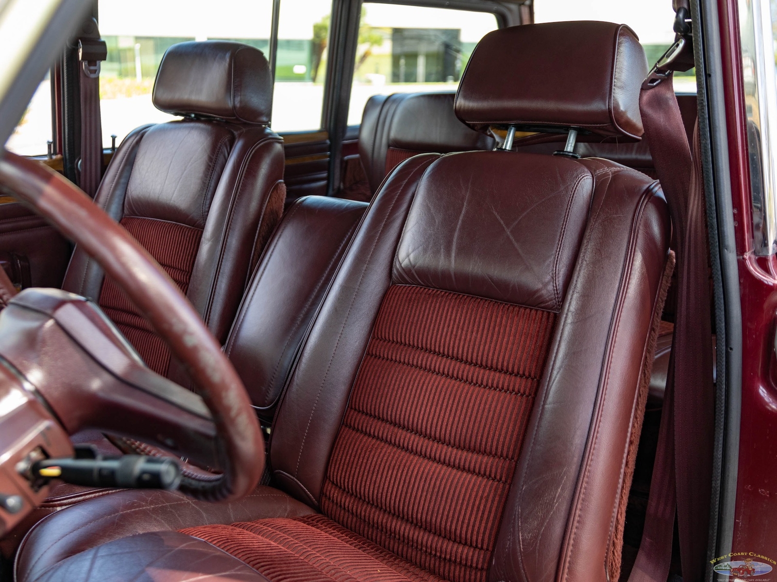 COLLECTIBLE & VERY DESIRABLE TWO OWNER 1991 JEEP GRAND WAGONEER 'FINAL EDITION' 4WD SUV WITH ONLY 71K ORIGINAL MILES!!West Coast Classics are proud to present an absolutely exceptional example of this rare and very desirable American Motors 'Final Edition' 1991 Jeep Grand Wagoneer 4WD 5.9L V8 Full Size SUV model with only 71K original miles and loaded with factory options including; including air conditioning, rear window defroster, power door locks and windows, power steering, power brakes, electric mirrors, tilt wheel, automatic transmission, 'Red' leather seats, tinted glass and power tailgate window!The Jeep Wagoneer was the first luxury 4X4 SUV, compared to its contemporaries such as the basic and utilitarian Land Rover and it only saw very minor mechanical changes throughout its 28 years plus production run, which was the longest production run in US automotive history and which was produced through several different name changes from 1963-1991. The Wagoneer was to replace the original 'Willys Jeep Station Wagon' which had been produced since 1946 and remained in production into 1965. For 1982, new luxury editions named Custom Wagoneer and Wagoneer Brougham were added, and the Wagoneer Limited was substantially upgraded with luxury equipment. Limited buyers got bucket seats with leather trim, a center armrest, and unique door panels; leather-wrapped steering wheel; extra thick carpeting; woodgrain overlay on the lower dash; wide woodgrain side and rear; roofrack; bright drip rail overlay; aluminum wheels (still 15 x 7); a tire upgrade; various moldings; standard air conditioning; power windows and locks; cruise; tilt wheel; FM stereo; the visibility group; electric remote control mirrors; bumper guards; six-way power front seats; and a rear window defogger. In 1984, the full-size Wagoneer line was consolidated into one offering and in 1987 Chrysler bought out American Motors and continued to build the Grand Wagoneer until 1991.These 1987-91 model years are considered the best of the breed due to a number of upgrades including upgraded wood sidings and modern aluminum wheels in 'Gunmetal Grey Metallic' and with two-stage base/clearcoat paint. The 1989-91 years also boasted a number of further improvements including a quality replacement for the air conditioning system, which was prone to leaks in the earlier models, an interior overhead console and compass and other welcome and general improvements in fit and finish.The end of the line came in 1991, after enjoying one of the longest production runs for any vehicle, with the powerful V8 engine and high towing capacity having proved the Grand Wagoneer to be the vehicle of choice for numerous repeat buyers. These late model Grand Wagoneers with low mileage have become a highly prized and coveted vehicle which routinely sell for more than their original sticker prices (see the renown Wagonmaster and other related cult sites for comparison pricing) more than two decades after rolling off the assembly line. In 1991 a total of only 1,560 SJ Grand Wagoneers were produced with an optional 'Final Edition Jeep Grand Wagoneer' badge on the dashboard and this particular example is one such model!This is a genuine two owner vehicle since new and is an absolutely pristine example of this fully loaded and legendary 1991 Jeep Grand Wagoneer 'Final Edition' with only 71K original miles. As previously stated these models have become highly sought after and collectible vehicles with enthusiasts around the world especially seeking out well maintained and low mileage examples of the rare 'Final Edition' like this one!As for the best way to describe the Grand Wagoneer ... large print ads in 1984 declared, Jeep Grand Wagoneer has no rival... why do you suppose its the solitary entry in the full-size, 4-wheel drive luxury wagon class?""The vehicle was always garage kept, by its original owners in Reno, Nevada from whom we purchased the vehicle in the year 2015 with 53,889 original miles and consequently sold to only its second, and now previous owners, in Newport Beach, CA. The vehicle is still virtually as new, there have been no accidents, & the vehicle has never been off road! The vehicle was originally always primarily dealer serviced at 'Land Rover' of Reno, NV and the car has a clean CARFAX report both confirming its ownership and mileage.The original and quite stunning 'Colorado Red' color paint with wood sidings is in excellent condition and the luxurious leather interior is also quite stunning and as new with beautiful original matching Red color leather front and rear seats with virtually no signs of any wear and all the power options and gauges are working as they should including the ice-cold A/C.This well maintained and low original 71K miles highly desirable 1991 'Final Edition' Jeep Grand Wagoneer 4WD 5.9L V8 SUV runs as if still brand new, the transmission shifts smoothly through all the gears, there are no oil leaks and the temperature always remains cool - drives exactly like such a well kept and maintained vehicle with such low miles should! You will surely look long and hard to find a finer or nicer driving and looking example of this legendary full size Jeep Grand Wagoneer, owned by only two very careful and mature non-smoking owners since new!