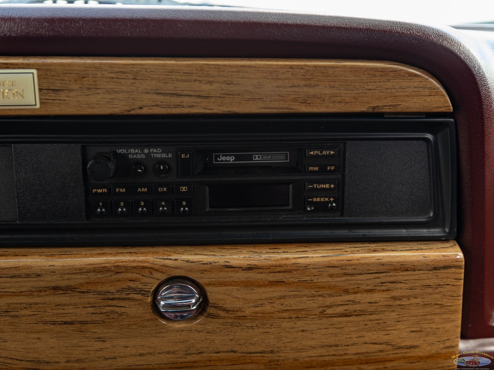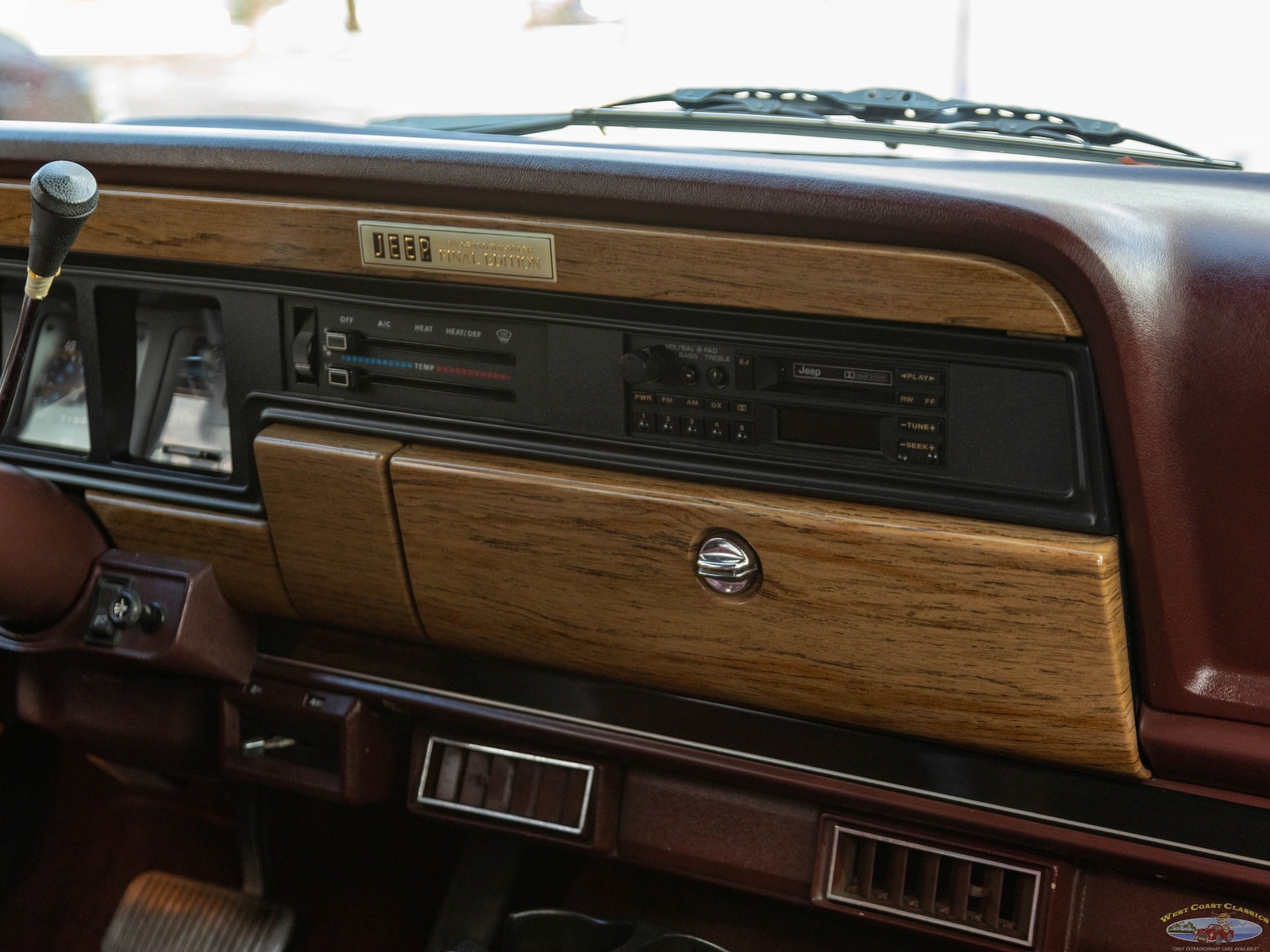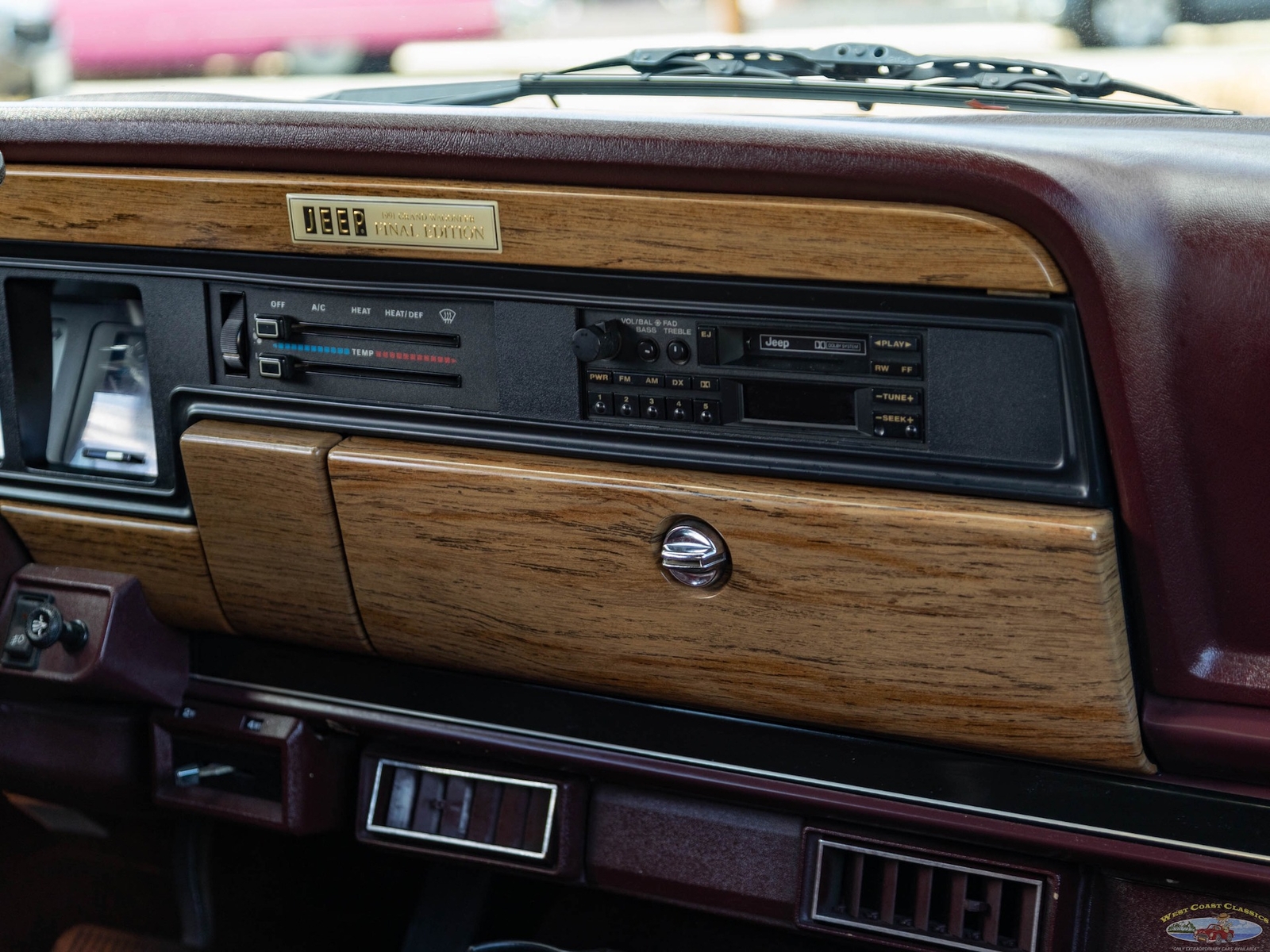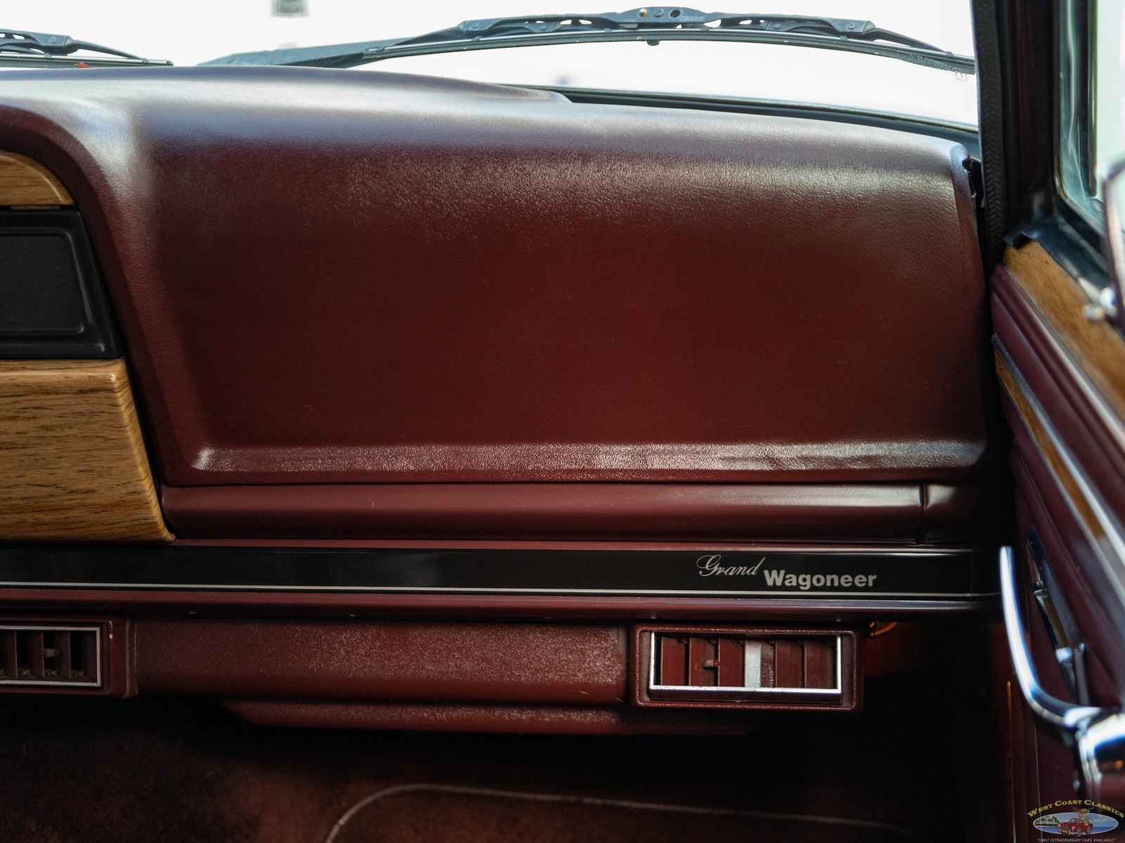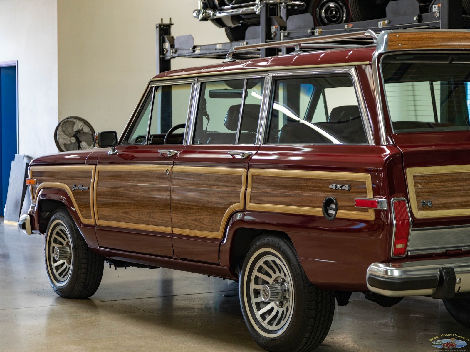 COLLECTIBLE & VERY DESIRABLE TWO OWNER 1991 JEEP GRAND WAGONEER 'FINAL EDITION' 4WD SUV WITH ONLY 71K ORIGINAL MILES!!West Coast Classics are proud to present an absolutely exceptional example of this rare and very desirable American Motors 'Final Edition' 1991 Jeep Grand Wagoneer 4WD 5.9L V8 Full Size SUV model with only 71K original miles and loaded with factory options including; including air conditioning, rear window defroster, power door locks and windows, power steering, power brakes, electric mirrors, tilt wheel, automatic transmission, 'Red' leather seats, tinted glass and power tailgate window!The Jeep Wagoneer was the first luxury 4X4 SUV, compared to its contemporaries such as the basic and utilitarian Land Rover and it only saw very minor mechanical changes throughout its 28 years plus production run, which was the longest production run in US automotive history and which was produced through several different name changes from 1963-1991. The Wagoneer was to replace the original 'Willys Jeep Station Wagon' which had been produced since 1946 and remained in production into 1965. For 1982, new luxury editions named Custom Wagoneer and Wagoneer Brougham were added, and the Wagoneer Limited was substantially upgraded with luxury equipment. Limited buyers got bucket seats with leather trim, a center armrest, and unique door panels; leather-wrapped steering wheel; extra thick carpeting; woodgrain overlay on the lower dash; wide woodgrain side and rear; roofrack; bright drip rail overlay; aluminum wheels (still 15 x 7); a tire upgrade; various moldings; standard air conditioning; power windows and locks; cruise; tilt wheel; FM stereo; the visibility group; electric remote control mirrors; bumper guards; six-way power front seats; and a rear window defogger. In 1984, the full-size Wagoneer line was consolidated into one offering and in 1987 Chrysler bought out American Motors and continued to build the Grand Wagoneer until 1991.These 1987-91 model years are considered the best of the breed due to a number of upgrades including upgraded wood sidings and modern aluminum wheels in 'Gunmetal Grey Metallic' and with two-stage base/clearcoat paint. The 1989-91 years also boasted a number of further improvements including a quality replacement for the air conditioning system, which was prone to leaks in the earlier models, an interior overhead console and compass and other welcome and general improvements in fit and finish.The end of the line came in 1991, after enjoying one of the longest production runs for any vehicle, with the powerful V8 engine and high towing capacity having proved the Grand Wagoneer to be the vehicle of choice for numerous repeat buyers. These late model Grand Wagoneers with low mileage have become a highly prized and coveted vehicle which routinely sell for more than their original sticker prices (see the renown Wagonmaster and other related cult sites for comparison pricing) more than two decades after rolling off the assembly line. In 1991 a total of only 1,560 SJ Grand Wagoneers were produced with an optional 'Final Edition Jeep Grand Wagoneer' badge on the dashboard and this particular example is one such model!This is a genuine two owner vehicle since new and is an absolutely pristine example of this fully loaded and legendary 1991 Jeep Grand Wagoneer 'Final Edition' with only 71K original miles. As previously stated these models have become highly sought after and collectible vehicles with enthusiasts around the world especially seeking out well maintained and low mileage examples of the rare 'Final Edition' like this one!As for the best way to describe the Grand Wagoneer ... large print ads in 1984 declared, Jeep Grand Wagoneer has no rival... why do you suppose its the solitary entry in the full-size, 4-wheel drive luxury wagon class?""The vehicle was always garage kept, by its original owners in Reno, Nevada from whom we purchased the vehicle in the year 2015 with 53,889 original miles and consequently sold to only its second, and now previous owners, in Newport Beach, CA. The vehicle is still virtually as new, there have been no accidents, & the vehicle has never been off road! The vehicle was originally always primarily dealer serviced at 'Land Rover' of Reno, NV and the car has a clean CARFAX report both confirming its ownership and mileage.The original and quite stunning 'Colorado Red' color paint with wood sidings is in excellent condition and the luxurious leather interior is also quite stunning and as new with beautiful original matching Red color leather front and rear seats with virtually no signs of any wear and all the power options and gauges are working as they should including the ice-cold A/C.This well maintained and low original 71K miles highly desirable 1991 'Final Edition' Jeep Grand Wagoneer 4WD 5.9L V8 SUV runs as if still brand new, the transmission shifts smoothly through all the gears, there are no oil leaks and the temperature always remains cool - drives exactly like such a well kept and maintained vehicle with such low miles should! You will surely look long and hard to find a finer or nicer driving and looking example of this legendary full size Jeep Grand Wagoneer, owned by only two very careful and mature non-smoking owners since new!