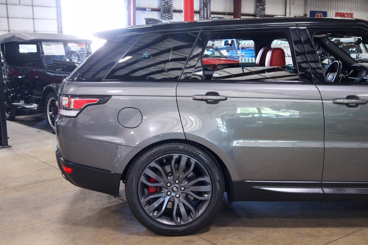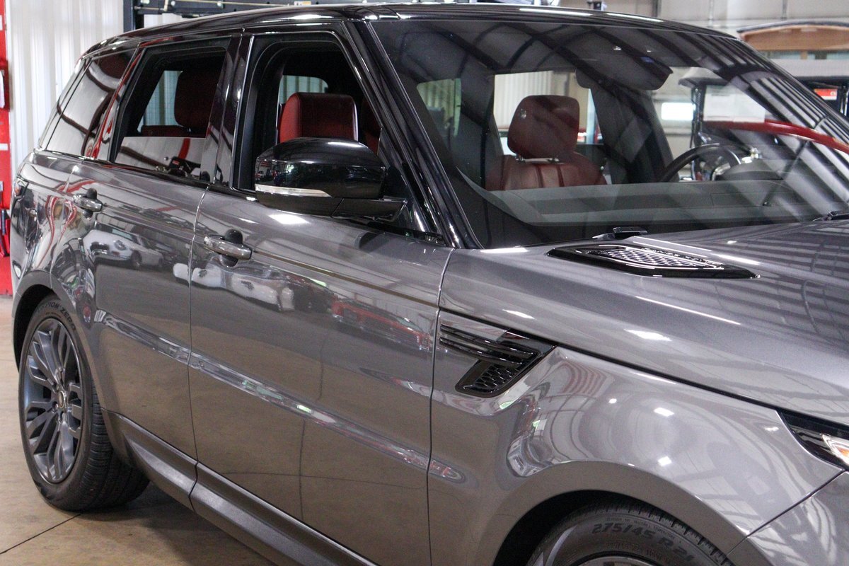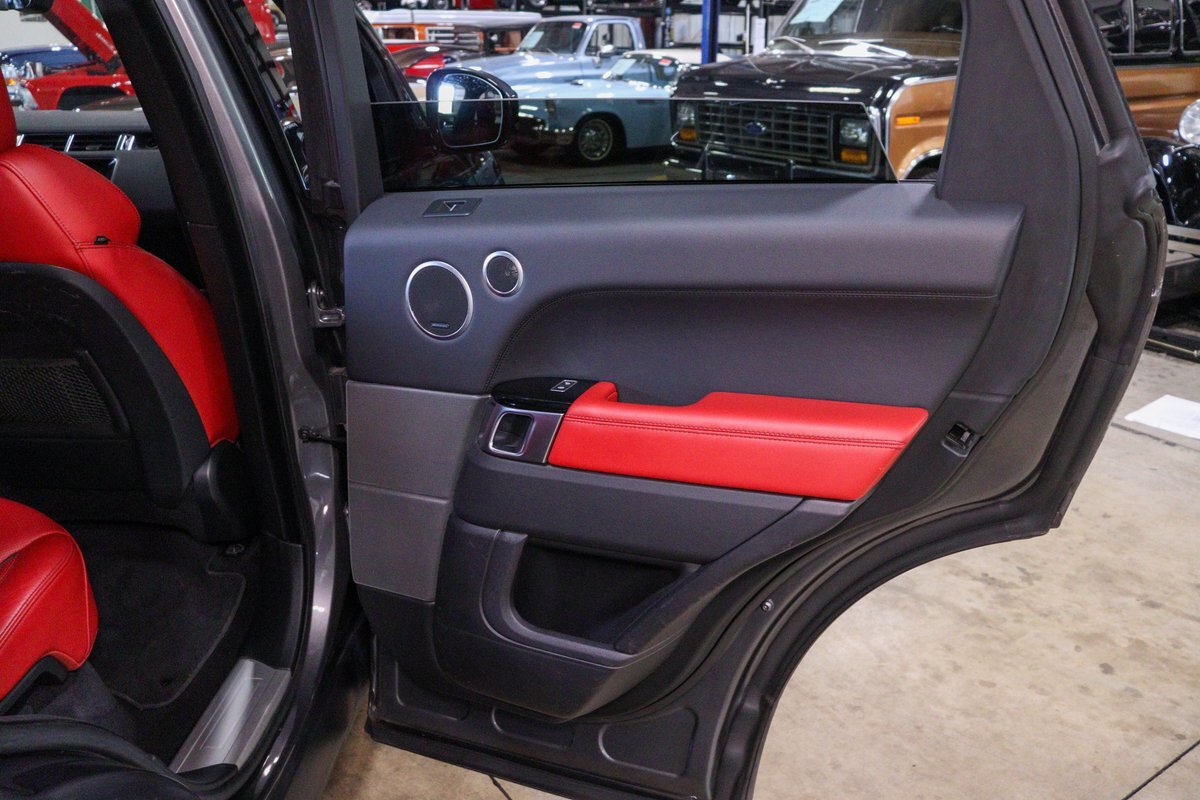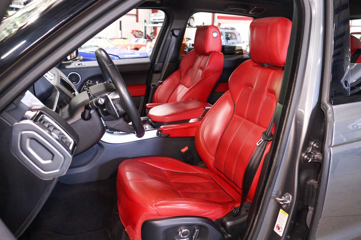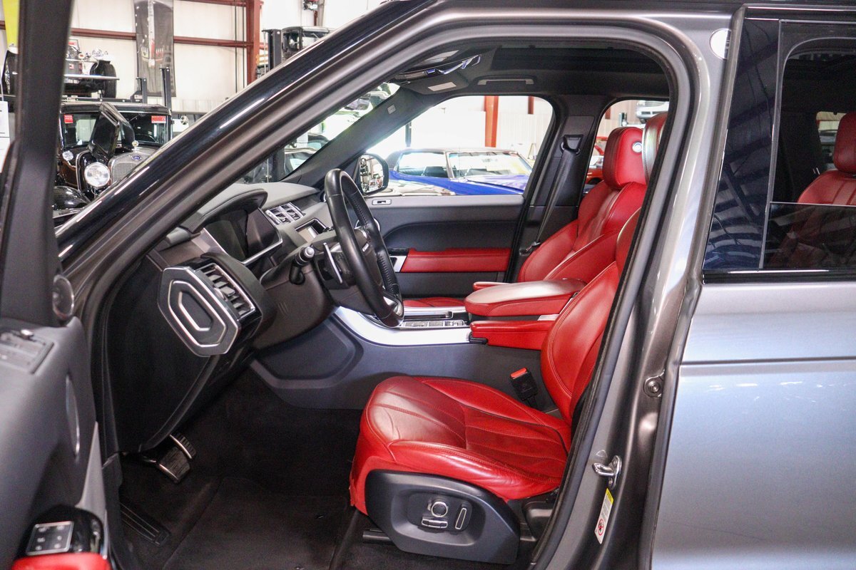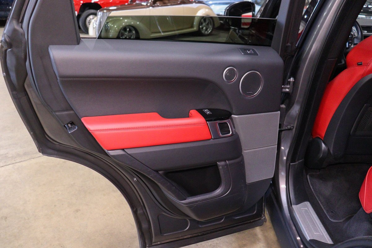 GR Auto Gallery is pleased to offer this one owner, well maintained, 2017 Land Rover Range Rover Sport Supercharged Dynamic for consideration. This Supercharged grocery getter was purchased new at Sharp Land Rover of Grand Rapids, MI on July 14, 2017 and remains in the hands of its original owner and current consignor. It was delivered dressed in Corris Grey exterior paint over an eye-catching Pimento / Ebony interior. It is powered by its Supercharged 5.0 liter V8 producing a burly 510 horsepower and 461 ft lbs of torque. In true Range Rover fashion, the vehicle is loaded with standard features and optioned as follows: Front Climate Comfort and Visibility package, 16 way Power Front Climate Seats, Heated Rear Seats, Heated Steering Wheel, Twin Blade Sunvisors, Adaptive Xenon Headlights with Auto High Beam, Auto Diming Exterior Mirrors, 825 Watt Meridian Premium Audio Drive Package, Driver Condition Monitor, Blind Spot Monitoring with Reverse Traffic Detection, Intelligent Speed Limiter and Traffic Sign Recognition, Ebony Headliner, Full Size Spare, 21" 507 Style Satin Grey Wheel, Front Console Cooler Compartment, Head Up Display, Heated Windscreen, Santorini Black Contrast Roof, Grand Black Wood Trim.