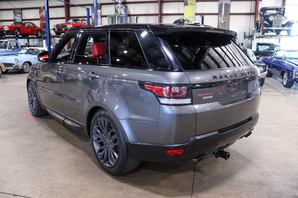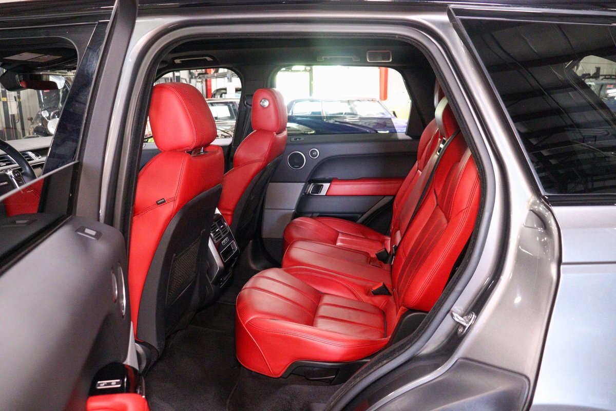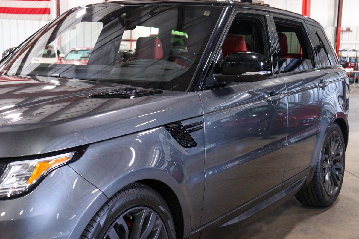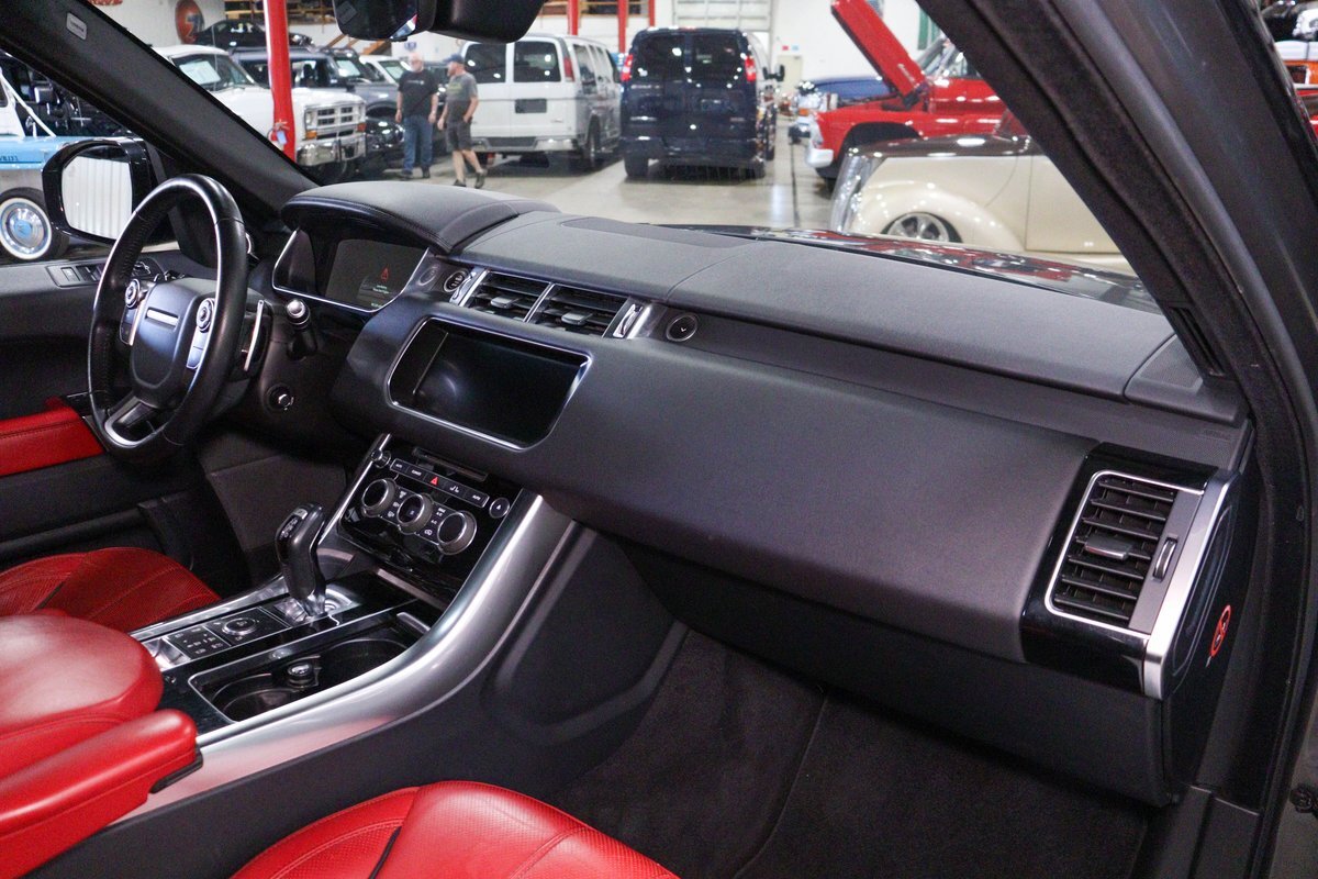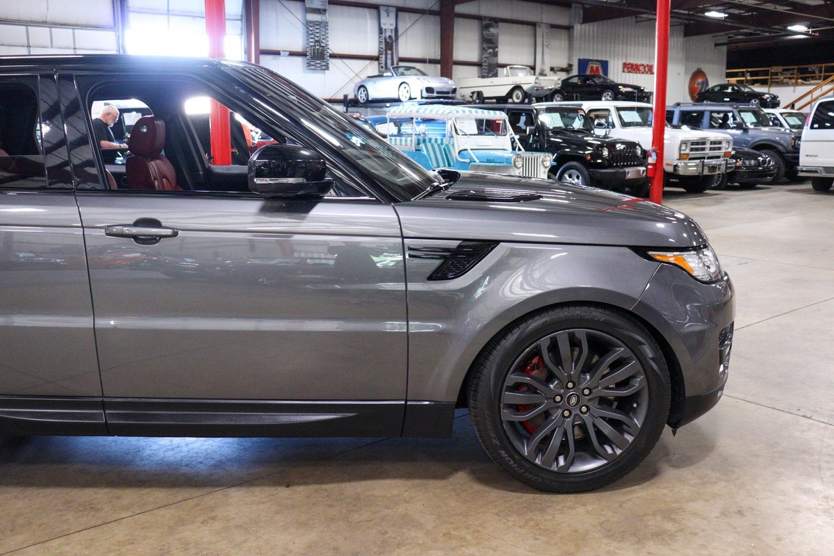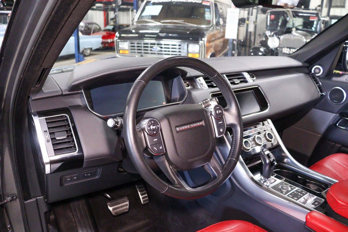 GR Auto Gallery is pleased to offer this one owner, well maintained, 2017 Land Rover Range Rover Sport Supercharged Dynamic for consideration. This Supercharged grocery getter was purchased new at Sharp Land Rover of Grand Rapids, MI on July 14, 2017 and remains in the hands of its original owner and current consignor. It was delivered dressed in Corris Grey exterior paint over an eye-catching Pimento / Ebony interior. It is powered by its Supercharged 5.0 liter V8 producing a burly 510 horsepower and 461 ft lbs of torque. In true Range Rover fashion, the vehicle is loaded with standard features and optioned as follows: Front Climate Comfort and Visibility package, 16 way Power Front Climate Seats, Heated Rear Seats, Heated Steering Wheel, Twin Blade Sunvisors, Adaptive Xenon Headlights with Auto High Beam, Auto Diming Exterior Mirrors, 825 Watt Meridian Premium Audio Drive Package, Driver Condition Monitor, Blind Spot Monitoring with Reverse Traffic Detection, Intelligent Speed Limiter and Traffic Sign Recognition, Ebony Headliner, Full Size Spare, 21" 507 Style Satin Grey Wheel, Front Console Cooler Compartment, Head Up Display, Heated Windscreen, Santorini Black Contrast Roof, Grand Black Wood Trim.