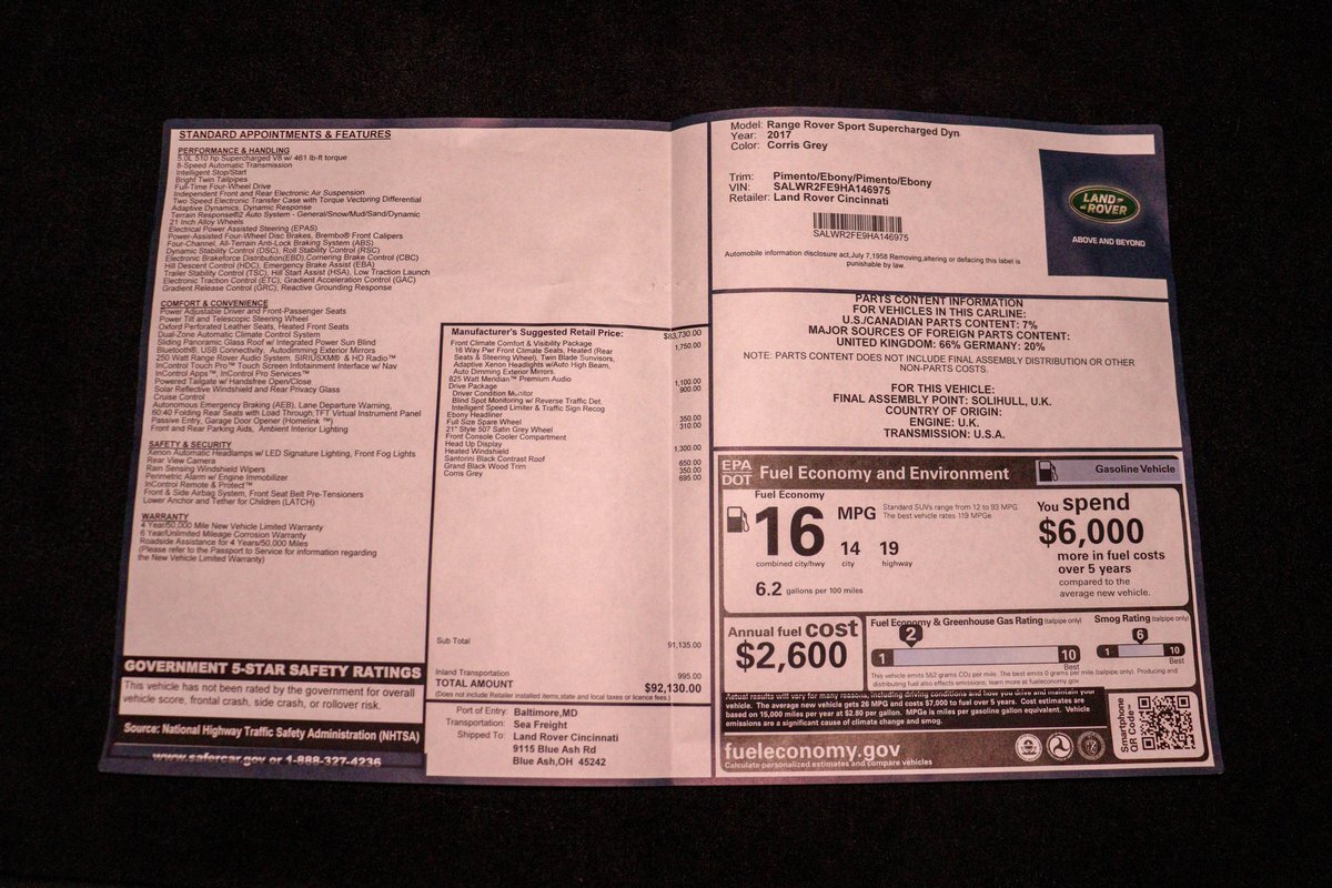 Today this Range Rover Sport presents very good in all areas. It has had routine maintenance since day one and most notably, a recent timing chain replacement to ensure longevity. It is an exciting vehicle to drive and will get you anywhere you want to go on or off road. MSRP was over $92000.00. A ton of vehicle for the money offered here. Comes complete with Original books and original window sticker.