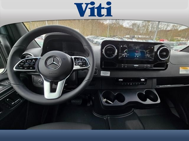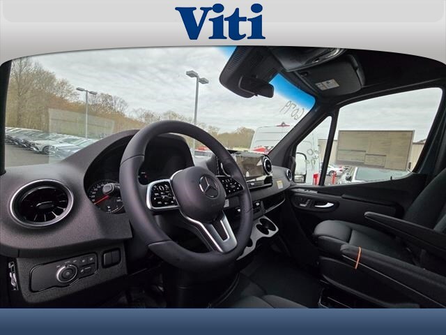 MODEL: 2024 M2CA7A, Equipment includes: Comfort Package - Comfort overhead control panel, Lumbar support driver's and co-driver's seats, Comfort head restraint driver and co-driver. Driver Convenience Package - 12V power outlet driver seat base, Electrically folding exterior mirrors, Hinged lid for storage compartments left and right, Two additional master keys, Attention Assist. Premium Plus Package - Tray for smartphones incl. wireless charging, MBUX Multimedia System with 10.25-inch touchscreen, Front-to-rear outlet in instrument panel, Traffic Sign Assist. Leather steering wheel, Wet Wiper System, Active Lane Keeping Assist. Exterior Lighting Package - Fog lamp with cornering light function, Partial LED tail lights, High beam assist, LED high performance headlamps. All Wheel Drive Package, Chrome Grille Package, Comfort Plus Package, Swivel Seat Package, Rear spring vibration absorbers, Mounting rails for roof rack, 115V socket, 12V power outlet rear compartment, Active Distance Assist DISTRONIC, Electrically heated windshield, Interior rear view mirror, Rear window defroster, Thermotronic automatic climate control, Blind Spot Assist, Parking Package with 360 degree camera, LED light strip in load compartment, Front engine bracket for additional alternator, Wood floor with 6 D-Rings, Sidewall paneling full hardboard, Storage compartment with net in rear doors, 2nd row fixed window driver and passenger side, Rear doors opening to side wall, Black tinting (90%) for rear windows, and more.