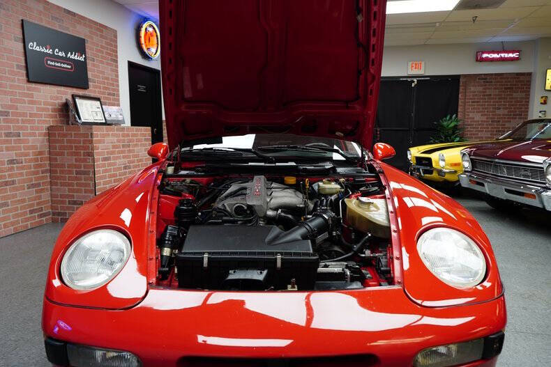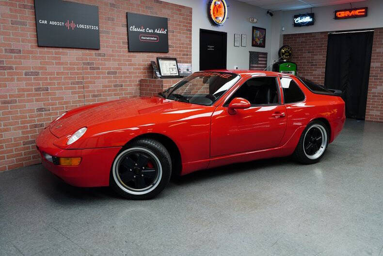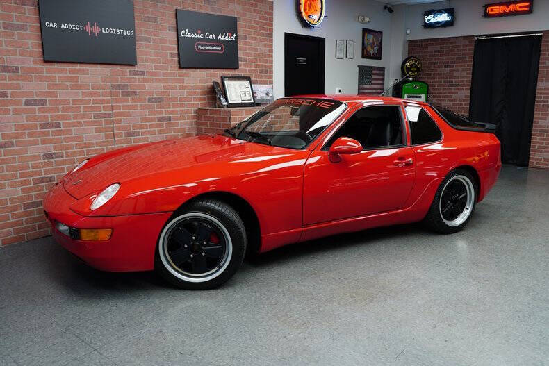 Classic Car Addict is excited to present this 1994 Porsche 968 for sale in our Mesa, Arizona showroom. The Porsche 968 is a sports car manufactured by German automobile manufacturer Porshe AG from 1991 until 1995. It was the final evolution of a series of water-cooled front-engine rear wheel drive models that began 20 years earlier with 924, taking over the entry level position in the company lineup from the 944. The 968 was Porsche's last new front-engine vehicle before the introduction of the Cayenne in 2003. There were only 1,076 produced, and only 778 in US and Canada. The 968 was mainly a restyled evolution of the 944 with design links visible to its predecessor. Design work was done by Harm Lagaay who had designed the 924 and the 944 as well. The front of the car largely resembled the top-of-the line 928, sharing its exposed pop-up headlamps and the integrated front bumper. This frontal design would eventually appear on the 911 (993) two years later. The cabin features power-adjustable front bucket seats and rear seats that are finished in black leather that color coordinates with the dashboard, carpets and door panel treatments. Accessories include cruise control, power windows, power locks, and air conditioning. The original radio was removed and replaced with a Kenwood CD player. The leather-wrapped steering wheel frames a 160-mph speedometer, an 8k-rpm tachometer, and gauges for fuel level, coolant temperature, oil pressure, and voltage. The exterior is finished in red and does have some sun fade marks on the front fenders. Front headlights and fog lights do work. Additional options include a color matched targa top, a rear window wiper, rear spoiler, and comes with two seats of rims. The wheels on it currently are said to be Fuch replicas. The 3.0 liter inline-four is mated to a 4 speed triptronic automatic transmission that was factory rated a 236 horsepower and 225 lb.-ft of torque. A booklet of receipts will be sent with the sale of the vehicle. All work was done at TRE motorsports in CA that included timing belt, balance shaft, serpentine belt, water pump, new radiator and front brake pads. Don't miss out on owning this Porsche, call Classic Car Addict today at 480-256-1459. And be sure to watch the full walkaround/driving video directly on our YouTube channel. We are a Classic Car company that combines a lifelong passion for classic cars with a level of customer service that thinks of you first. A company small enough to allow a personal relationship but a company with global expertise to deliver all your needs.