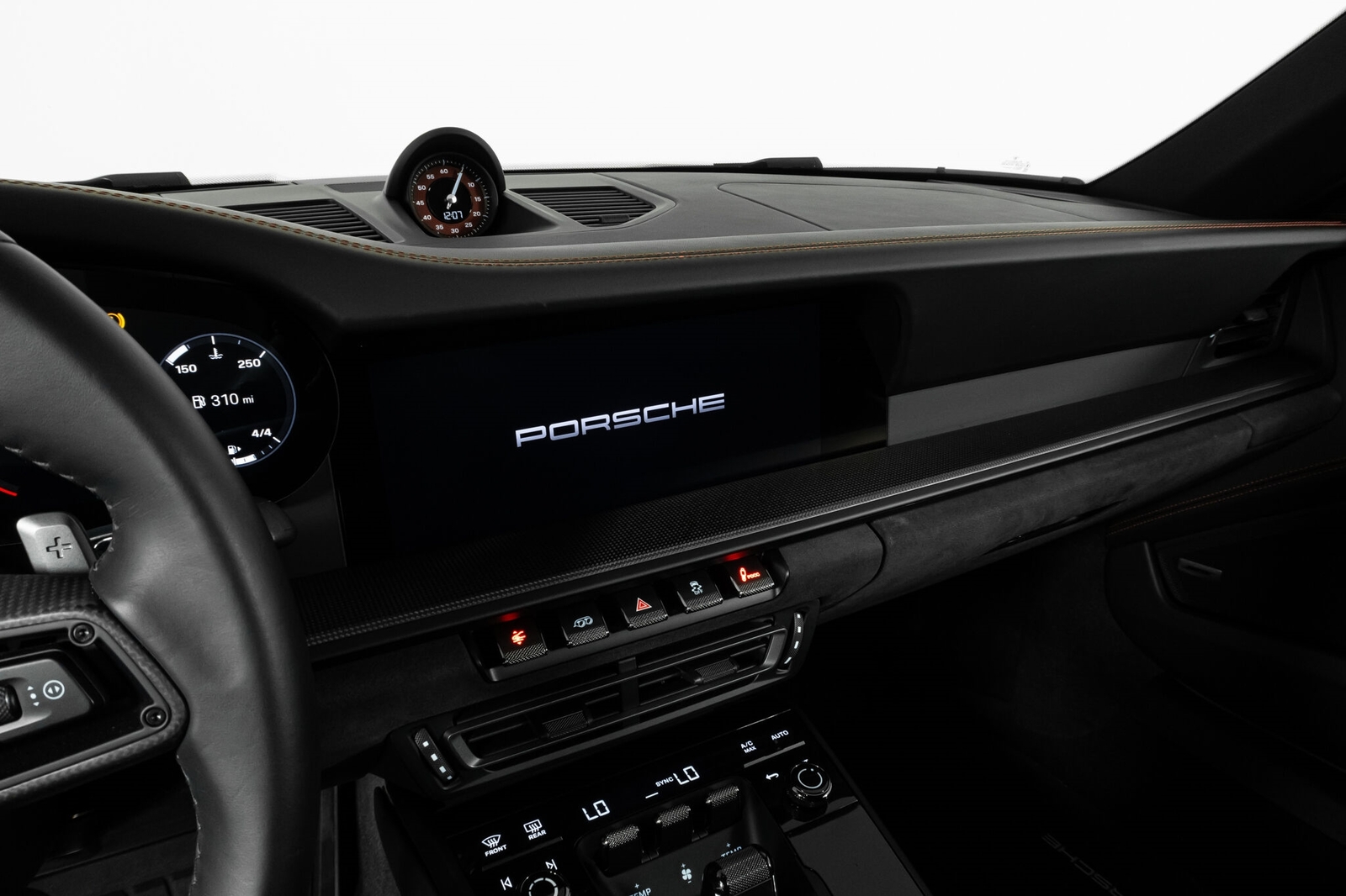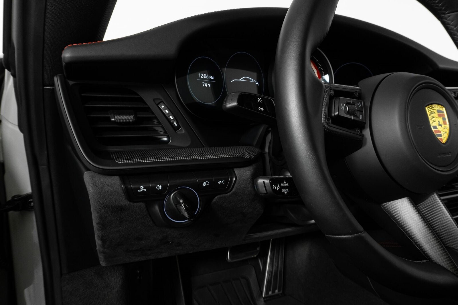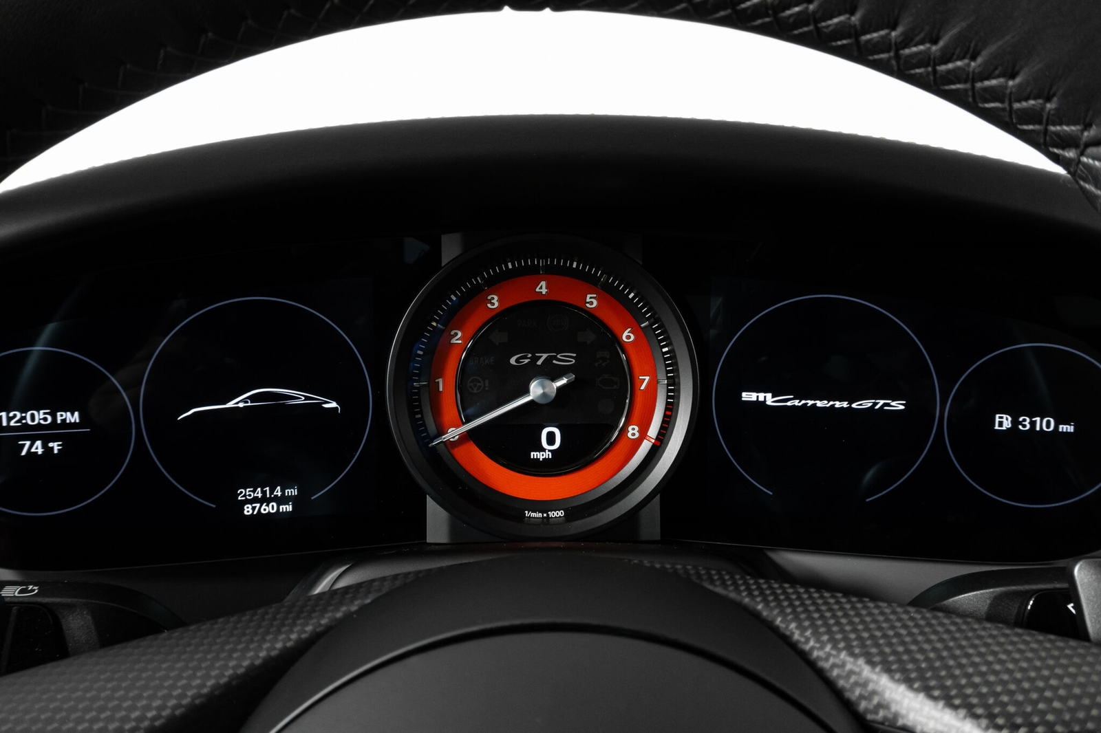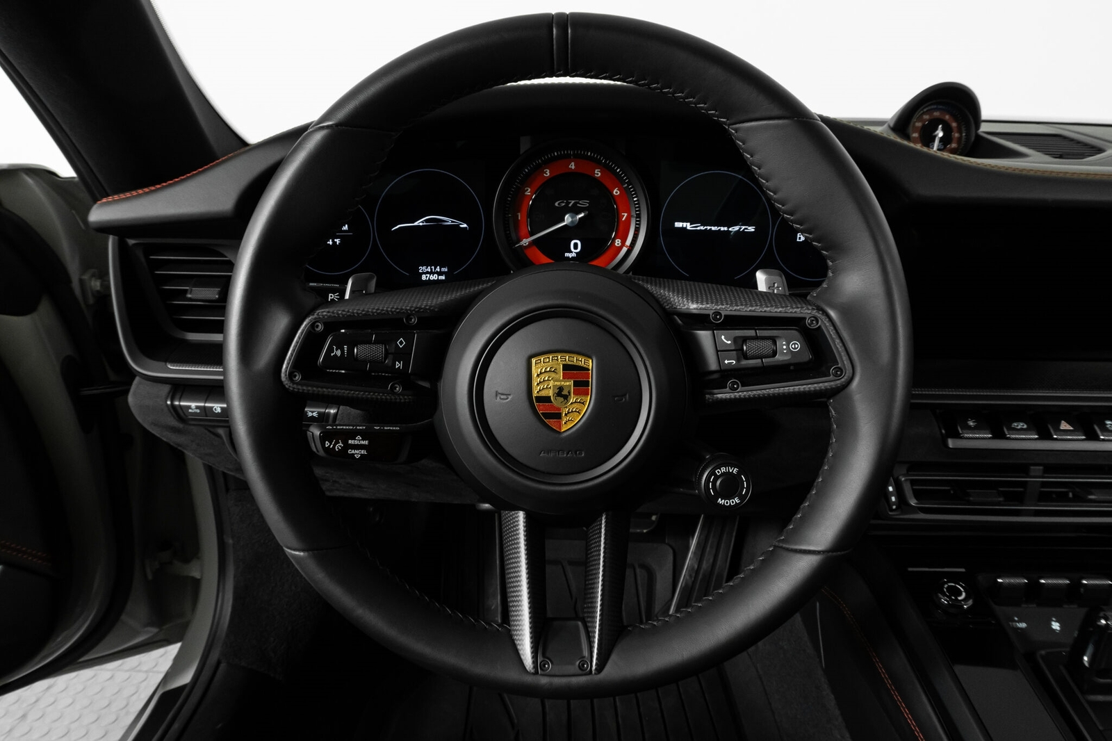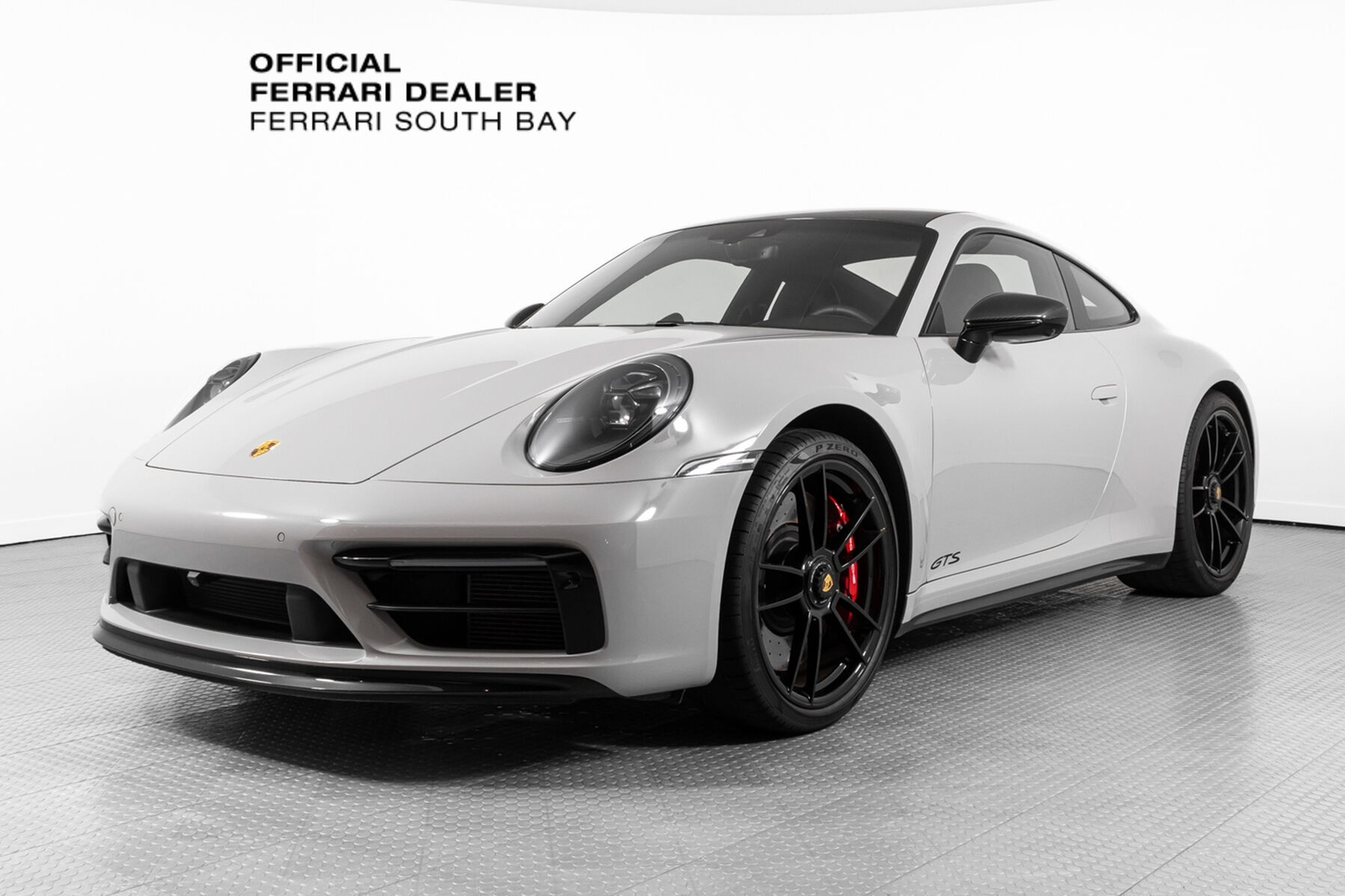 Ferrari South Bay is pleased to offer this beautiful One-Owner Porsche-Certified 911 GTS in Chalk Grey over Black and Carmine Leather. Featuring a wide array of desirable options, this athletic coupe is sure to please its next owner!The exterior is finished in Chalk (light gray), and features a Carbon Fibre roof, High Gloss Black Exterior Package, High Gloss Black Window Surrounds, and Electric Folding Exterior Mirror Housings in Carbon Fibre. The Porsche Logo and Model Designation on the Rear are also High Gloss Black. The Sports Exhaust provides extra thrills while the engine's climbing the Carmine Red Tachometer. An Extended Range Fuel tank provides for longer stretches between fuel stops. Rear Axle Steering, Porsche Dynamic Chassis Control, and Power Steering Plus add agility whether on the freeway or in a canyon, and LED-Matrix Design Headlights help you find your way at night. The Front Axle Lift helps with steep driveways, while Under Door Puddle Light Projectors and Exclusive Design Fuel Cap and Taillights add nice exterior finishing touches to this terrific GTS. Inside, you'll find Black and Carmine Red Leather, with Full Bucket Seats up front (the Rear Seat has been deleted). Matte Carbon Fibre finishes the Heated GT Steering Wheel and Illuminated Door-Sill Guards. A Bose Surround Sound-System and the Sport Chrono Package handle music and lap timing duties. The Reversing Camera, front and rear Parking Assist, Surround View Camera and Lane Change Assist all help with tight maneuvers, while the Storage Package and Ambient Lighting Plus add convenience and atmosphere.This 2023 Porsche 911 GTS is offered with both original keys and books, and carries its Porsche Factory CPO Warranty through November 29, 2028. If you'd like to find out more about this stunning 911 GTS, please reach out to our knowledgeable sales staff for further details or to arrange for a viewing.