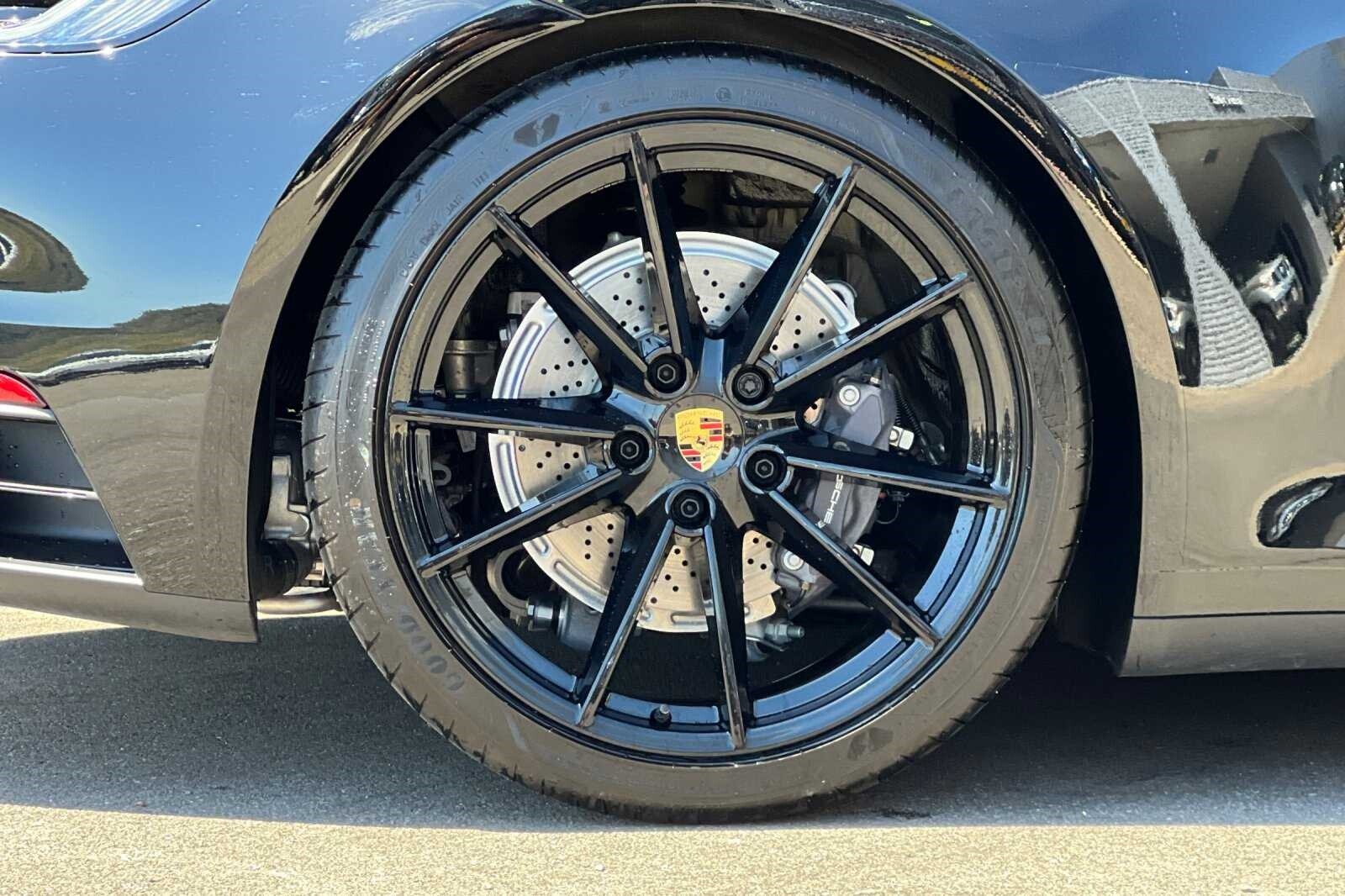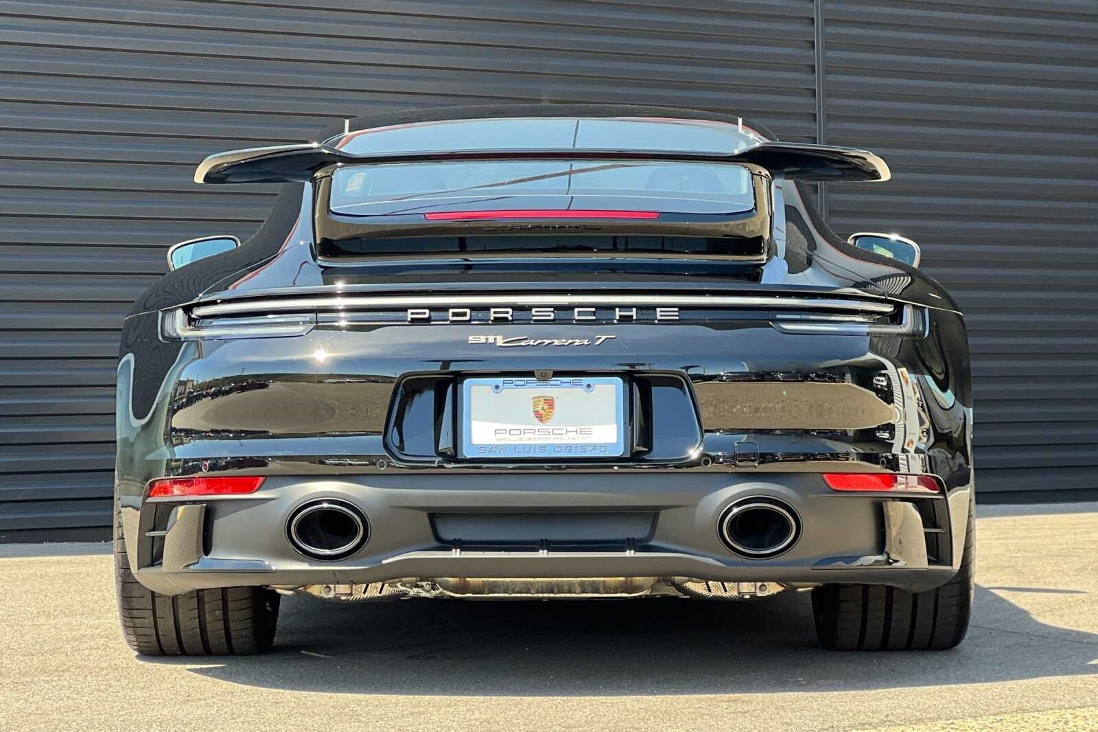 This Porsche San Luis Obispo 2023 Black Porsche 911 Carrera T is well equipped and includes these features and benefits: Porsche Approved Certified Pre-Owned Certified, 4-Wheel Disc Brakes, 8 Speakers, ABS brakes, Adaptive suspension, Air Conditioning, Alloy wheels, Auto-dimming door mirrors, Auto-dimming Rear-View mirror, Automatic temperature control, Brake assist, Bumpers: body-color, Delay-off headlights, Driver door bin, Driver vanity mirror, Dual front impact airbags, Dual front side impact airbags, Electronic Stability Control, Exterior Parking Camera Rear, Four wheel independent suspension, Front anti-roll bar, Front Bucket Seats, Front Center Armrest, Front dual zone A/C, Front reading lights, Fully automatic headlights, Garage door transmitter: HomeLink, Heated door mirrors, Heated front seats, Illuminated entry, Leather steering wheel, Low tire pressure warning, Navigation system: Porsche Communication Management (PCM), Occupant sensing airbag, Outside temperature display, Overhead airbag, Overhead console, Passenger door bin, Passenger vanity mirror, Porsche Communication Management, Power door mirrors, Power driver seat, Power passenger seat, Power steering, Power windows, Radio data system, Rain sensing wipers, Rear anti-roll bar, Rear fog lights, Rear window defroster, Remote keyless entry, Security system, Speed control, Spoiler, Sport steering wheel, Steering wheel mounted audio controls, Tachometer, Telescoping steering wheel, Tilt steering wheel, Traction control, Trip computer, and Variably intermittent wipers.