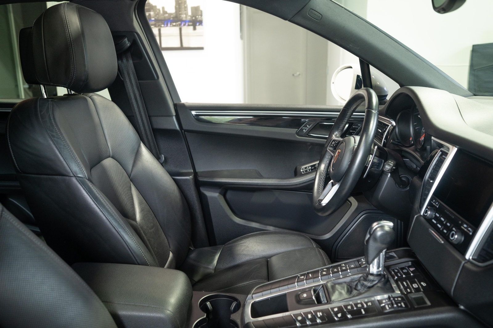 Complementing its elegant interior is the striking white exterior paint color that enhances the sleek and sporty design of the 2018 Porsche Macan. With its timeless aesthetic appeal and modern styling, this vehicle is sure to turn heads wherever you go, making a bold statement on the road.