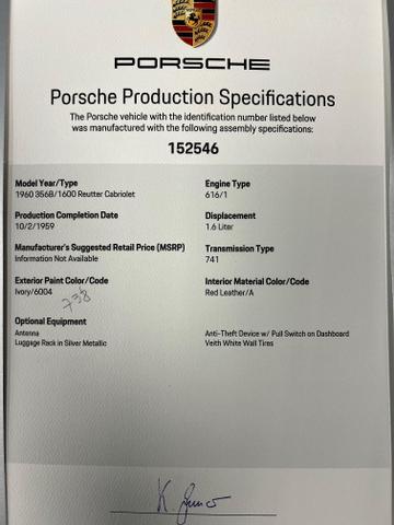 1960 Porsche 356B 1600 Reutter Cabriolet 90607 Miles Ivory