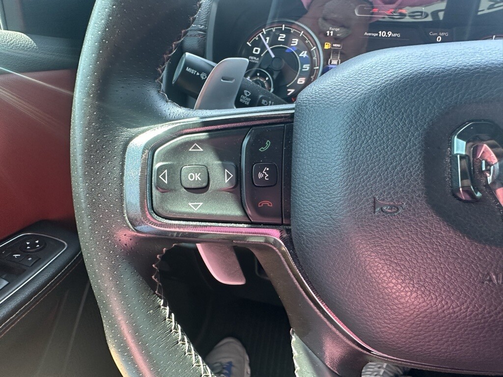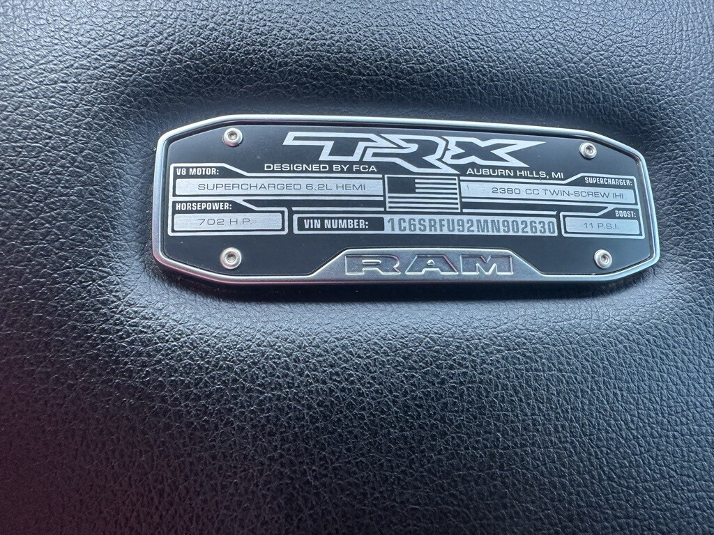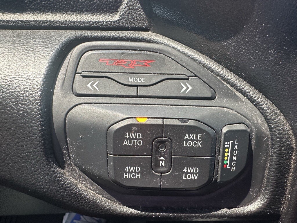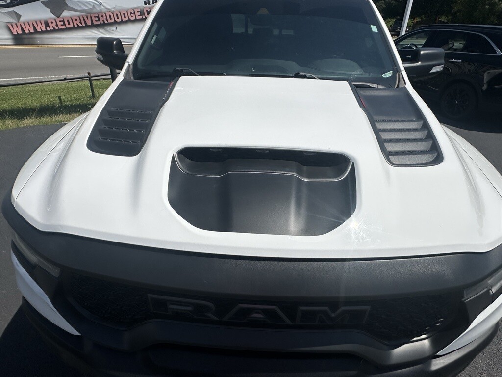 -One Owner CarFax-, Clean CarFax, 1500 TRX, 4D Crew Cab, 6.2L Supercharged HEMI V8 SRT, 8-Speed Automatic, 4WD, Bright White Clearcoat, Black/Trx Red Cloth, 10 Speakers, 4 Way Front Headrests, 4-Wheel Disc Brakes, ABS brakes, Adaptive suspension, Air Conditioning, Alloy wheels, AM/FM radio: SiriusXM with 360L, Apple CarPlay/Android Auto, Auto High-beam Headlights, Auto-dimming door mirrors, Auto-dimming Rear-View mirror, Automatic temperature control, Black Exterior Mirrors, Brake assist, Compass, Delay-off headlights, Driver door bin, Electronic Stability Control, Exterior Mirrors Courtesy Lamps, Exterior Mirrors w/Heating Element, Exterior Mirrors w/Supplemental Signals, Front Bucket Seats, Front Center Armrest w/Storage, Front dual zone A/C, Front fog lights, Front reading lights, Fully automatic headlights, Heated door mirrors, Illuminated entry, Leather Shift Knob, Leather steering wheel, Low tire pressure warning, Navigation System, Outside temperature display, Overhead console, ParkView Rear Back-Up Camera, Passenger door bin, Passenger vanity mirror, Power 4-Way Driver Lumbar Adjust, Power door mirrors, Power driver seat, Power steering, Power windows, Power-Folding Mirrors, Quick Order Package 29Y, Radio data system, Radio: Uconnect 12 w/Navigation, Rear seat center armrest, Rear step bumper, Remote keyless entry, Security system, Speed control, Split folding rear seat, Sport steering wheel, Steering wheel mounted audio controls, Tachometer, Telescoping steering wheel, Tilt steering wheel, Traction control, Trailer Brake Control, Trailer Light Check, Trailer Tire Pressure Monitoring System, Trailer Tow Group, Trip computer, Turn signal indicator mirrors, Variably intermittent wipers, Voltmeter.
