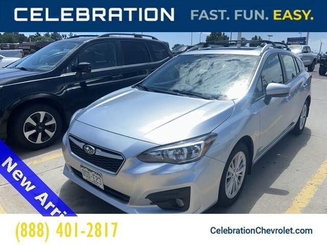 Recent Arrival! 2018 Subaru Impreza 2.0i Premium 2.0i Premium AWD * LOW MILES, * EXTRA CLEAN, MUST SEE!!!, EXCEPTIONAL VALUE, Test Drive Today, Gas Saver - Save at the Pump, Extra Clean - This is the one!, ** APPLE CAR PLAY / ANDROID AUTO, ** BLUETOOTH, ** BACK UP CAMERA, On SALE Today at Celebration Chevrolet, 16 Alloy Wheels, 4-Wheel Disc Brakes, 6 Speakers, ABS brakes, Aero Crossbar Set, Air Conditioning, All-Weather Floor Liners, AM/FM radio, Apple CarPlay/Android Auto, Auto-Dimming Mirror w/Compass & HomeLink, Blind Spot Detection, Brake assist, Cargo Tray, Cloth Upholstery, Delay-off headlights, Driver vanity mirror, Dual front impact airbags, Dual front side impact airbags, Electronic Stability Control, Emergency communication system: STARLINK, Exterior Parking Camera Rear, EyeSight & BSD & RCTA & Moonroof, EyeSight System, Four wheel independent suspension, Front anti-roll bar, Front Bucket Seats, Front Center Armrest, Front reading lights, Fully automatic headlights, Heated door mirrors, Heated Front Bucket Seats, Heated front seats, Illuminated entry, Knee airbag, Low tire pressure warning, Occupant sensing airbag, Outside temperature display, Overhead airbag, Panic alarm, Passenger door bin, Passenger vanity mirror, Power door mirrors, Power Moonroof, Power steering, Power windows, Radio data system, Radio: Subaru Starlink 6.5 Multimedia System, Rear anti-roll bar, Rear Cross Traffic Alert, Rear window defroster, Rear window wiper, Remote keyless entry, Roof rack: rails only, Security system, Speed control, Speed-sensing steering, Split folding rear seat, Spoiler, Steering Responsive Fog Lights (SRF), Steering wheel mounted audio controls, Tachometer, Telescoping steering wheel, Tilt steering wheel, Traction control, Trip computer, Variably intermittent wipers. 28/37 City/Highway MPG