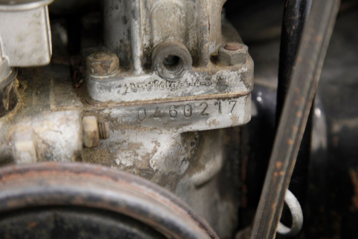 A 1200cc horizontally opposed 4-cylinder engine sits in the rear of this car. It has a 1-barrel Solex carb on top, and a 4-speed manual transmission. Power is transferred to the tires via a 4.375 final drive geared axle. The engine appears with some patina and surface rust is noted within the bay on the bottom edge.