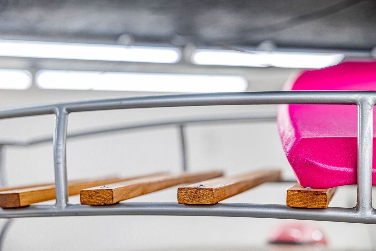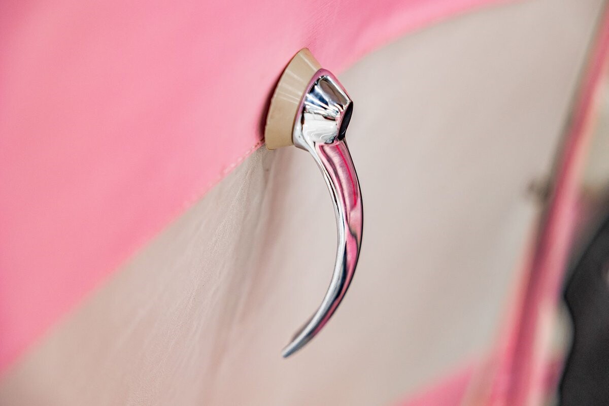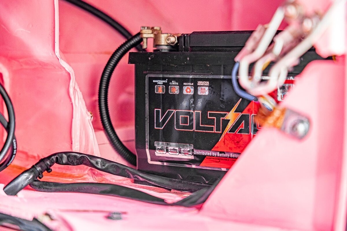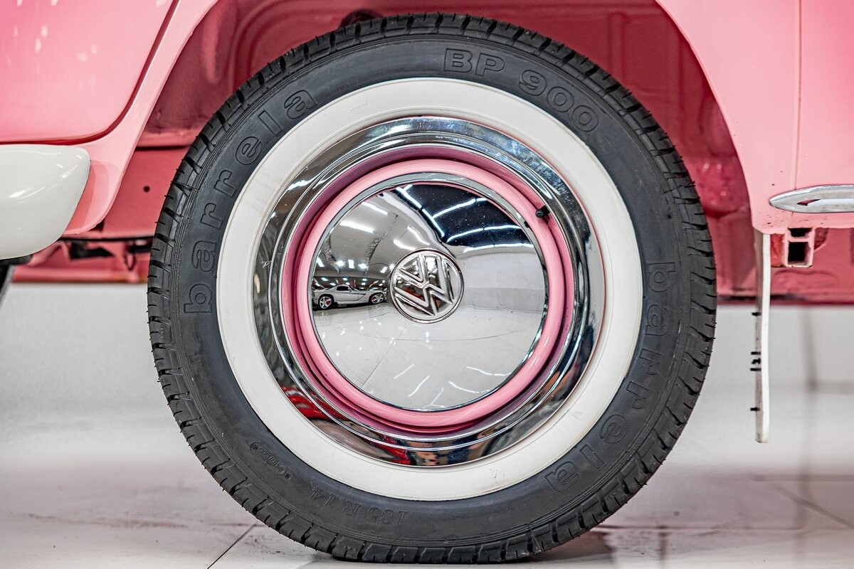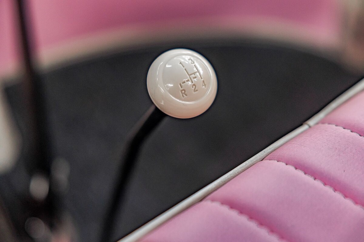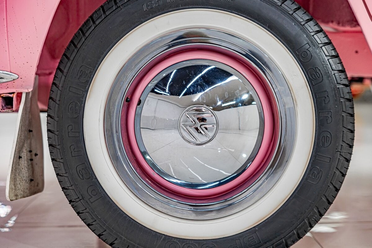 UNDERSIDE: This was flipped upside down on a rotisserie. The bottom is clean metal and it was prepped and painted pink. It has power brakes, disc in front.