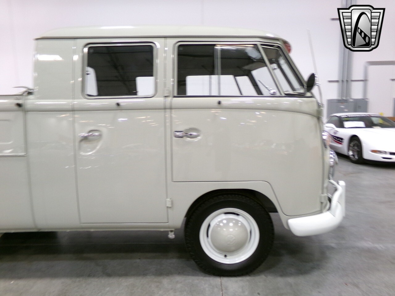 Introducing the classic 1962 Volkswagen Double Cab, a timeless piece of automotive history. This vehicle is presented in a sophisticated light gray exterior color that complements its gray interior, creating a seamless blend of style and elegance.