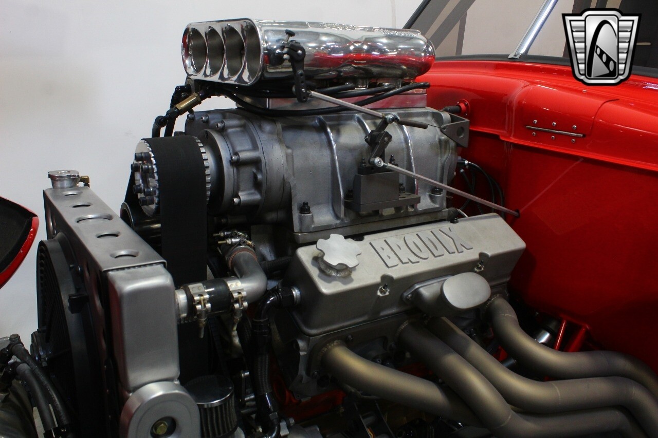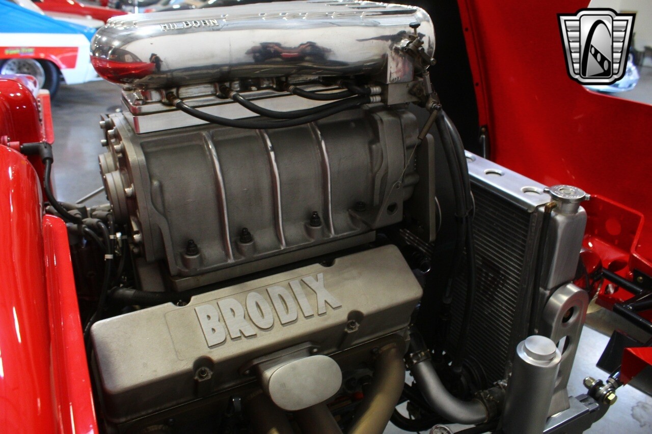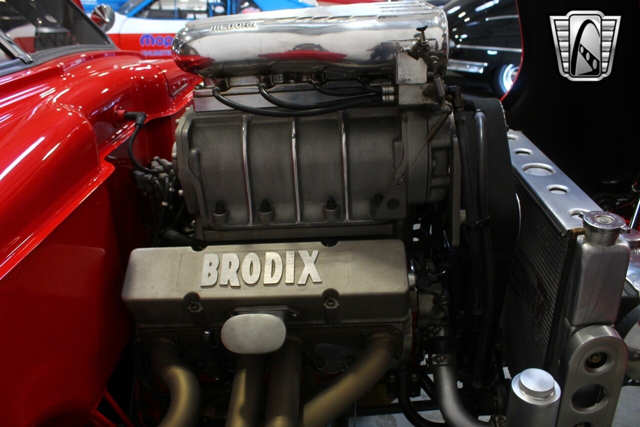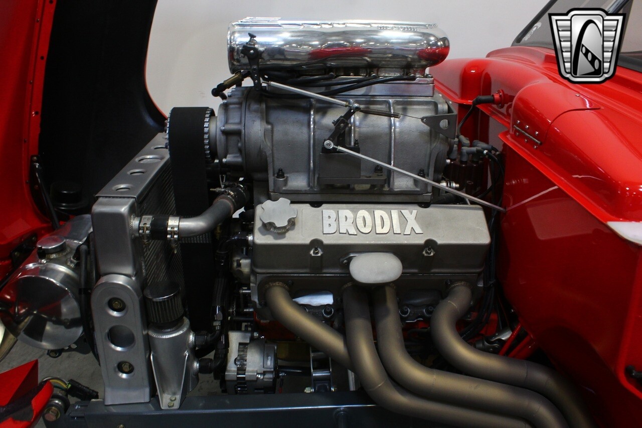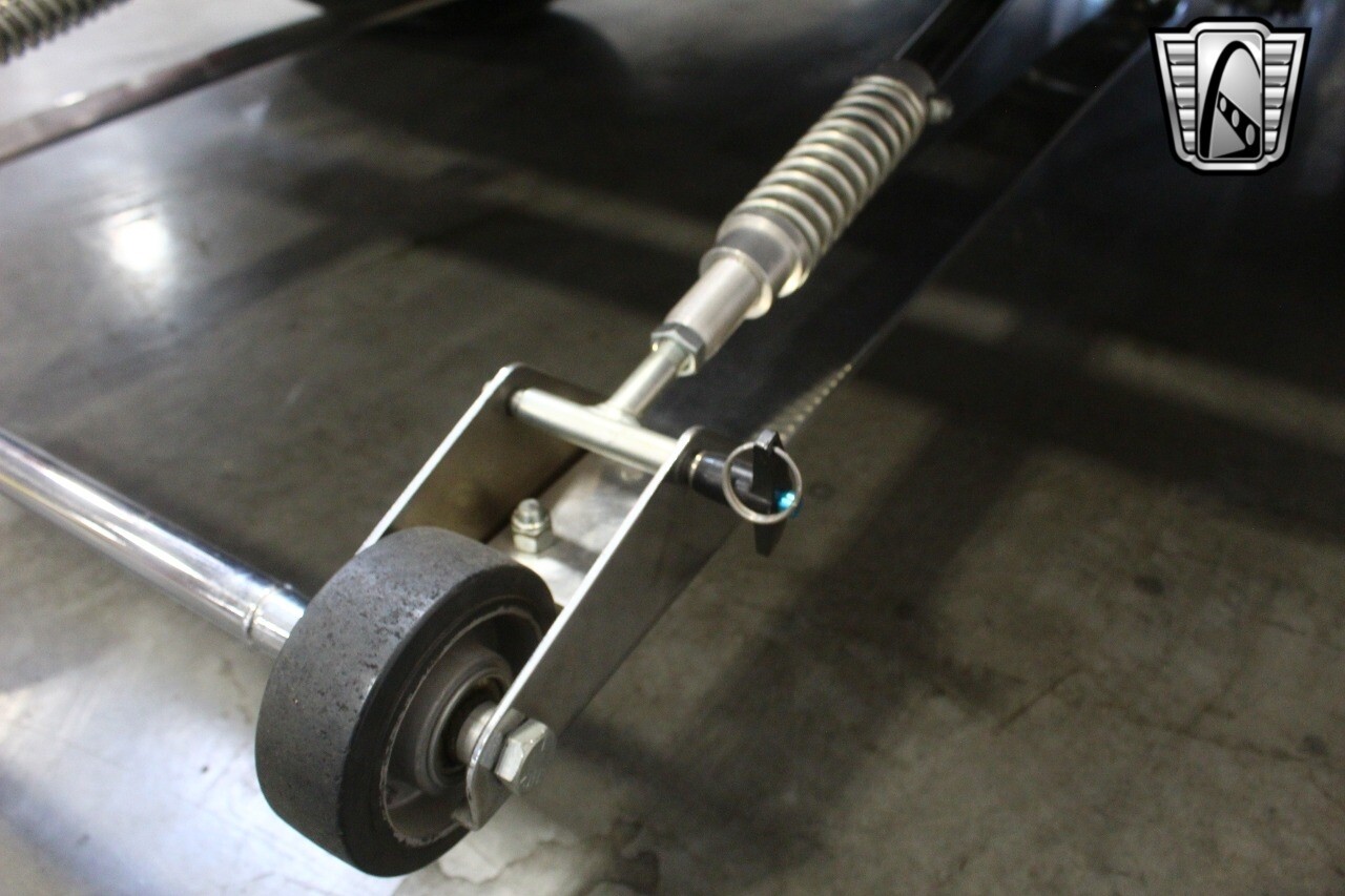 Front suspension consists of a Speedway front axle with Ford spindles, Wilwood disc brakes and Competition Engineering 3 way adjustable shocks. The rear suspension is the stock springs on rollers with four foot ladder bars, Competition Engineering 3 way shocks and Ford drum brakes.
