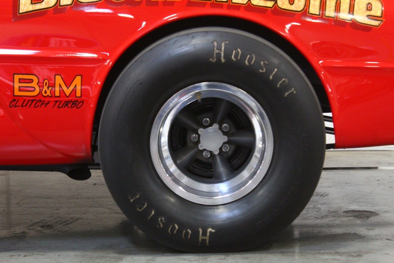 Everything was torn down to bare metal and the beautiful execution of creating what you see today began 4 years prior. The frame was boxed and powder coated along with the suspension parts and pieces in metallic gray and black. A Dart 427 block was built by Kenny Dutwieler as a pump gas screamer using Brodix aluminum heads, Jessel shaft rockers, Diamond 9:4:1 pistons, Crower custom roller cam, 6-71 supercharger and Hillborn injection. A B&M Clutch Turbo is mated to a McLeod twin disc clutch that runs the dyno'd 690hp at 6500 rpms to a Ford 9 inch rear end running 4:11 gears.