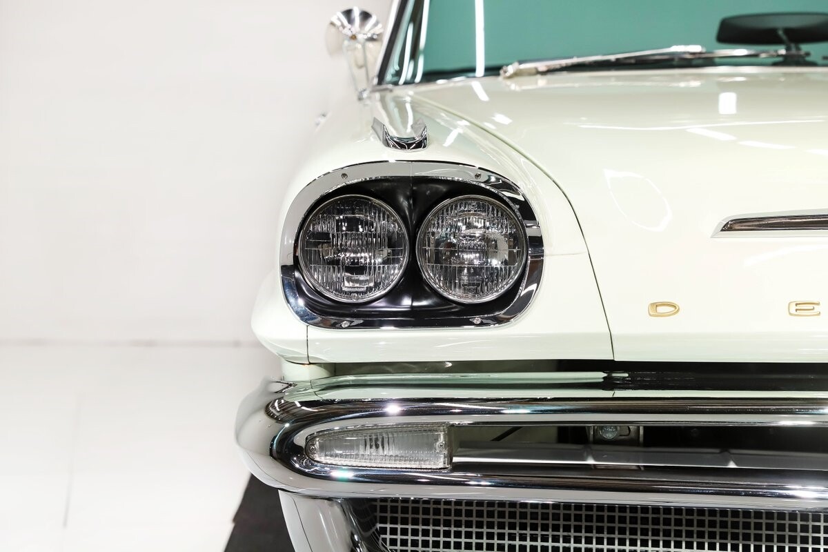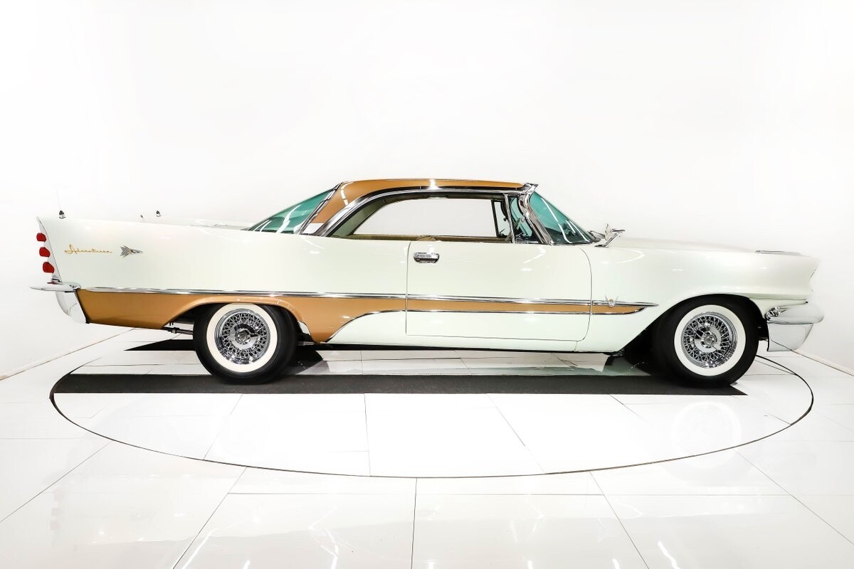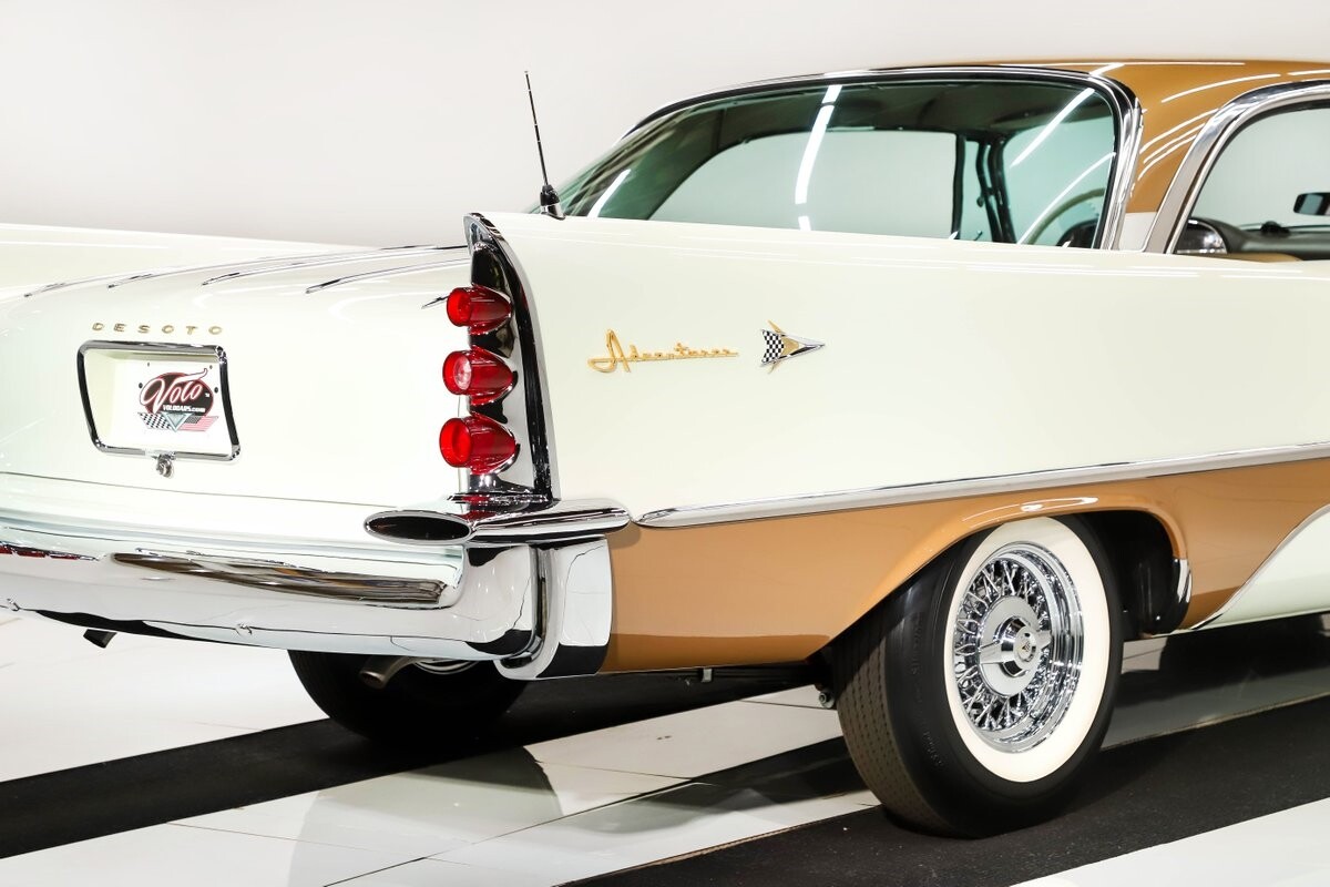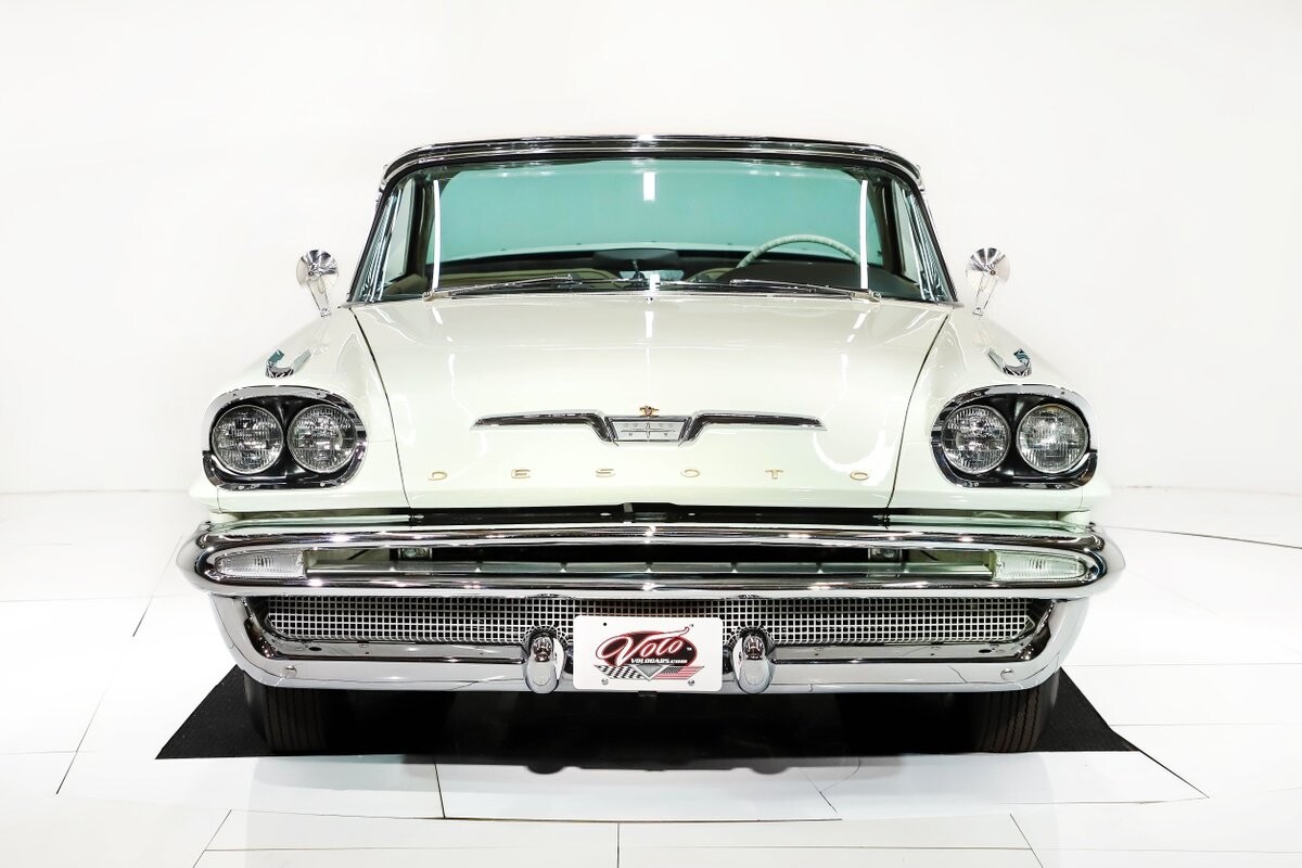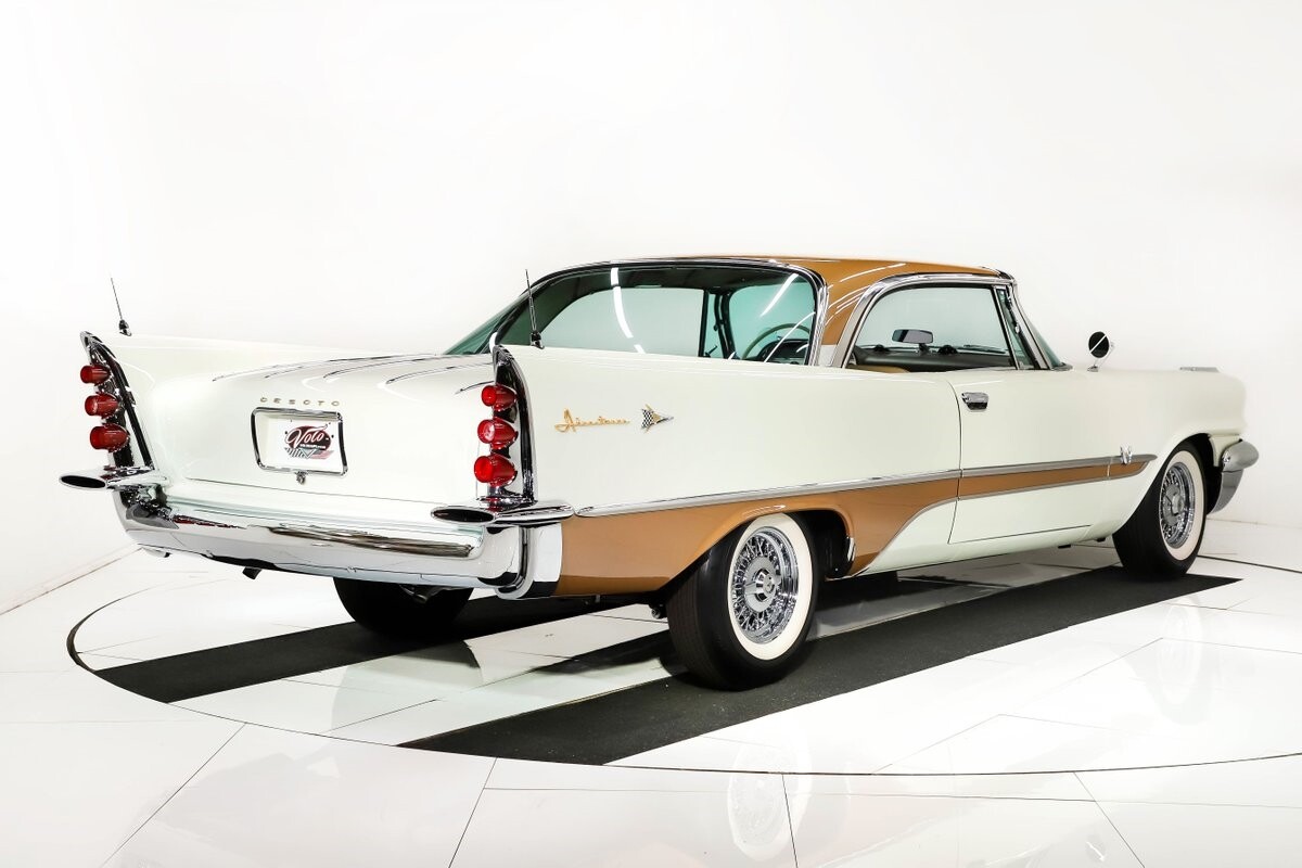 ENGINE COMPARTMENT: 345 cubic inch Hemi with a race cam and dual 4 barrel carbs produced 345 horsepower! It's not all race car, this one has power steering and brakes along with factory air conditioning! It is concourse restored in here, factory correct down to the stickers and paint stamps. It has the correct DeSoto Firedome valve covers, dual air cleaners, and even the Mopar Jiffy Jet washer bag. The a/c box has correct raw fiberglass, all the metal surfaces are painted slick. The wiring was all replaced, it has a reproduction battery. This motor compartment is detailed!