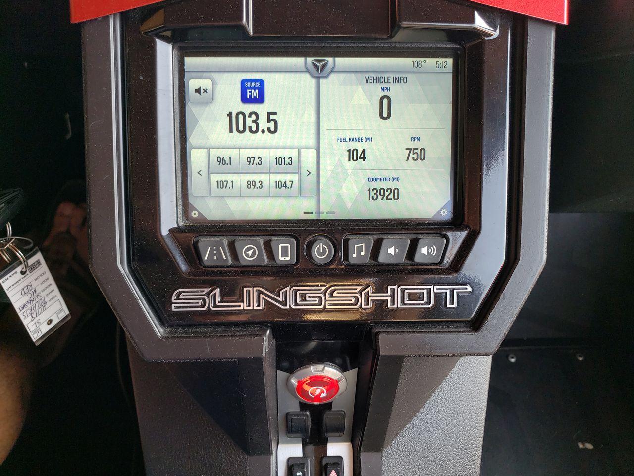 Super clean and fully equipped Slingshot SL AutoCycle trike finished in the beautiful Sunset Red Pearl with just 13K original miles. Fully serviced and inspected including new rear tire. Loaed with all the SL features including the new larger screen Ride Command system with Bluetooth and Backup Camera, 18" front and 20" rear wheels, Windshield, Cruise control, Traction and stability control system, Rockford Fosgate premium sound system, and more. Comes complete with a custom storage cover and installed Pedal Commander performance throttle control system. In stock and ready to ride and enjoy TODAY!!