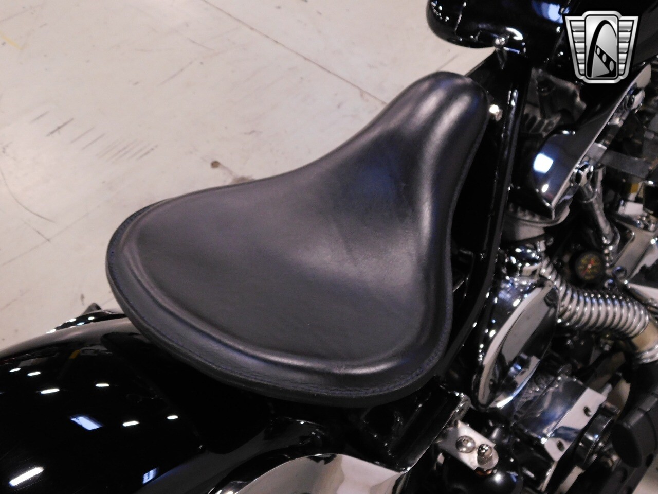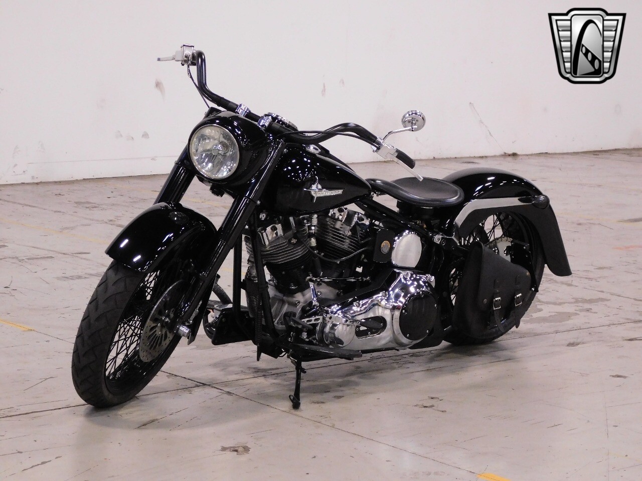 Here's some specs that was shared by the owner. The frame is a Kraft Tech Softail34 degree. The shocks are Legend Air Ride with height adjustment. Transmission is a 6 speed. S and S carb and air cleaner. We have a lot more information on this incredible build. [ omitted ].