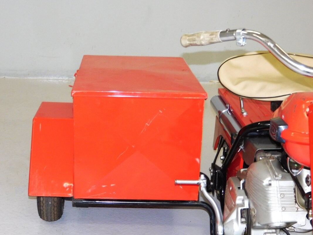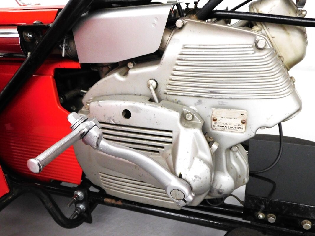 This 1963 Cushman Silver Eagle with Sidecar is a real classic! It features a Huntsman Red finish and is an unrestored survivor in great condition. Boasting a manual start (not electric start) OMC engine, this scooter runs like a dream after a fresh oil change. A must-have for any vintage enthusiast! The consignor does not have a title for this scooter, but we will get it titled for you. ALL VEHICLES SOLD "AS-IS".
