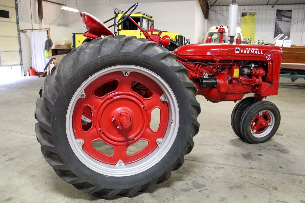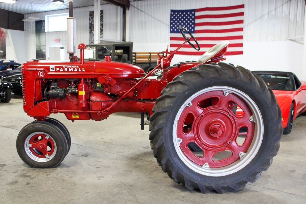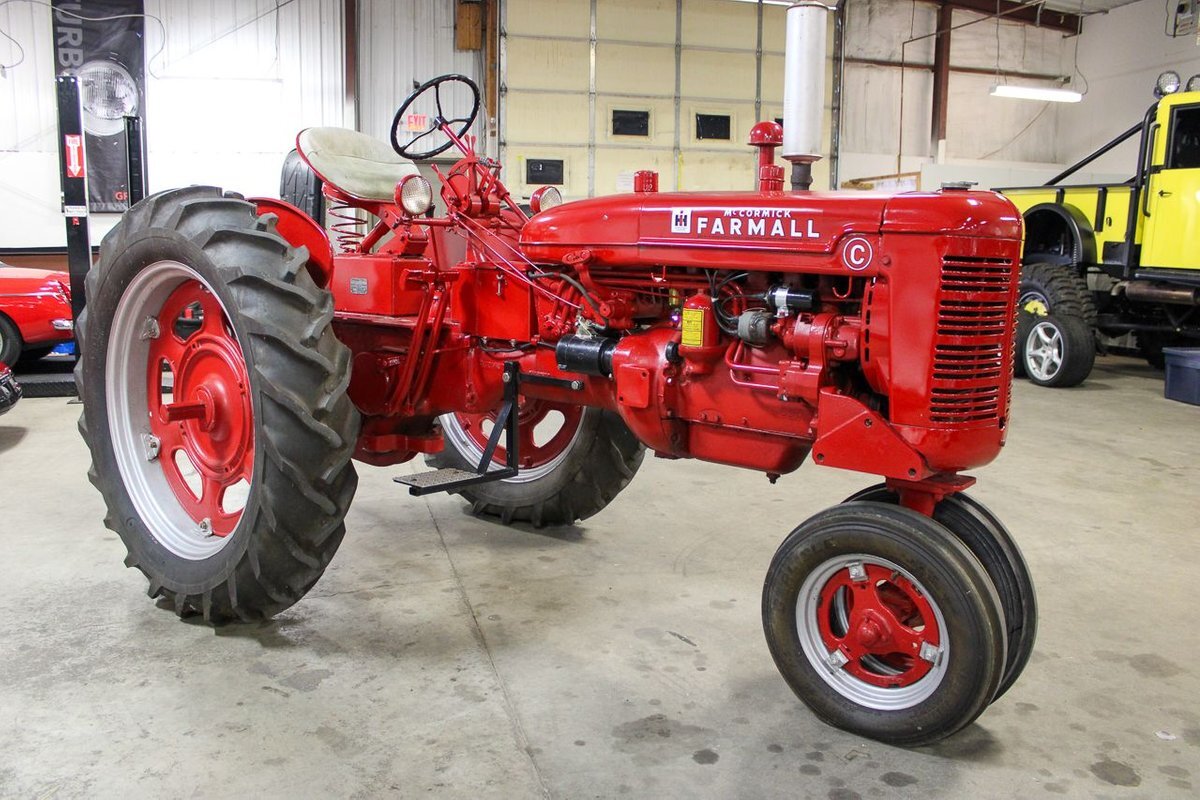 The 1947 McCormick Farmall C tractor is a classic example of mid-20th-century agricultural machinery. This iconic piece of farming equipment, manufactured by the International Harvester Company, embodies the timeless design and reliability that Farmall tractors are known for.The tractor's exterior is characterized by its distinctive bright red color, which has become synonymous with the Farmall brand. Its compact and sturdy design is immediately recognizable, with a sleek, rounded profile that gives it a timeless appeal. The front grille, adorned with the iconic Farmall logo, adds a touch of nostalgia and authenticity to its appearance.Under the hood, the 1947 Farmall C is powered by a robust four-cylinder engine. This engine, designed for efficiency and durability, was a workhorse on farms across America during the post-World War II era. It delivers dependable power, making it suitable for a wide range of agricultural tasks, from plowing fields to pulling implements and hauling loads.The operator's station features a simple yet functional design. The seat is positioned for a clear view of the field ahead, allowing the farmer to work with precision. The steering wheel is practical and easy to grip, ensuring comfortable control during long hours of operation. The control panel includes essential gauges and levers for managing various functions, while the foot pedals allow for easy modulation of speed and braking.The 1947 McCormick Farmall C tractor is a testament to durability and reliability, as it was built to withstand the rigors of farm work. Its rugged construction and dependable mechanical components make it a valuable asset for farmers of its time and a sought-after collectible for vintage tractor enthusiasts today.This vintage tractor represents an era when farming relied heavily on the strength and resilience of machines like the Farmall C. It serves as a reminder of the agricultural heritage that has shaped the farming industry in the United States, making it an enduring symbol of farming's past and a cherished piece of history for those who appreciate classic farm equipment. This is a nicely restored classic tractor that starts perfectly, idles, shifts and brakes as it should. Own a piece of history today!