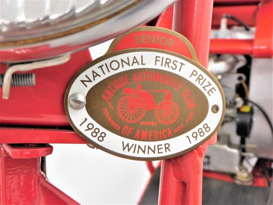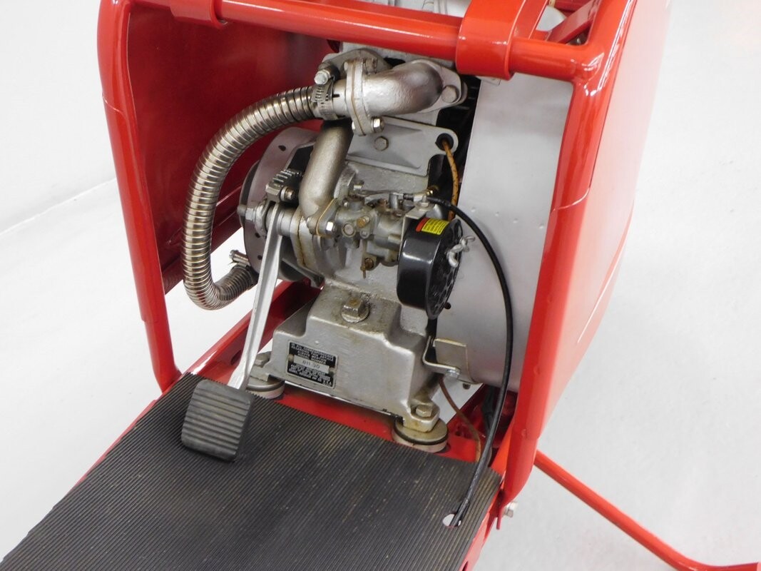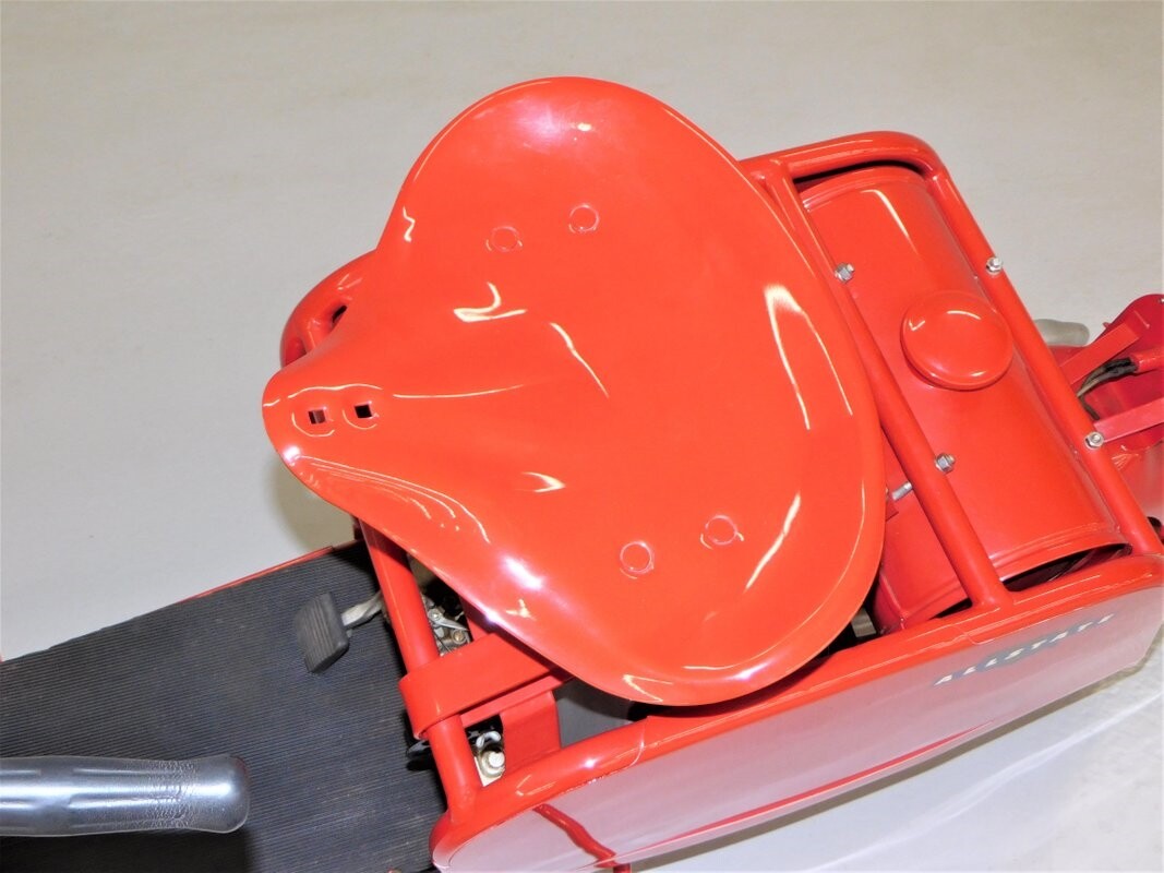 Cushman, who started making scooters in 1936, supplied scooters for Sears, who marketed all of their scooters as Allstate. This 1951 red Allstate is a Cushman production restored by Sony Sain and comes from the collection of Dennis Carpenter. This is a running scooter but it does not have a title. Since it is only 3 HP, it is classified as a Moped and can be registered but not titled in NC. Check with your local DMV for their requirements. ALL VEHICLES SOLD "AS-IS"