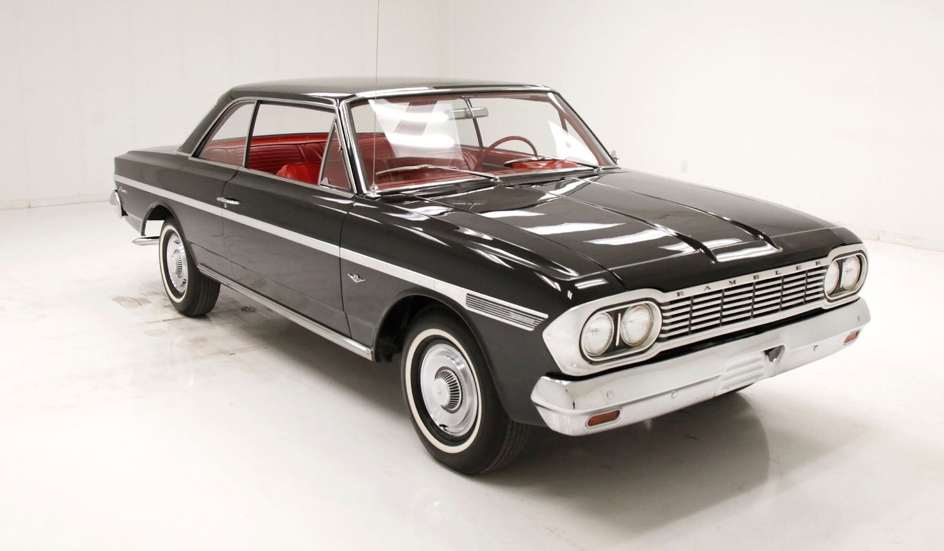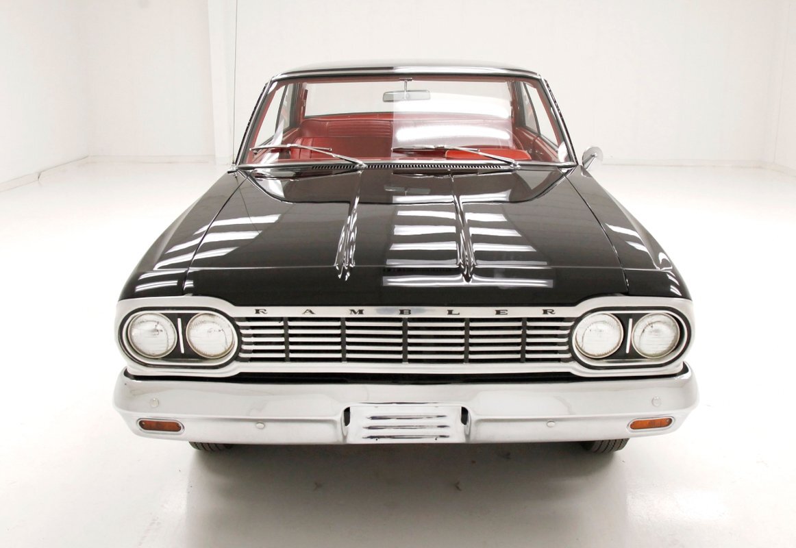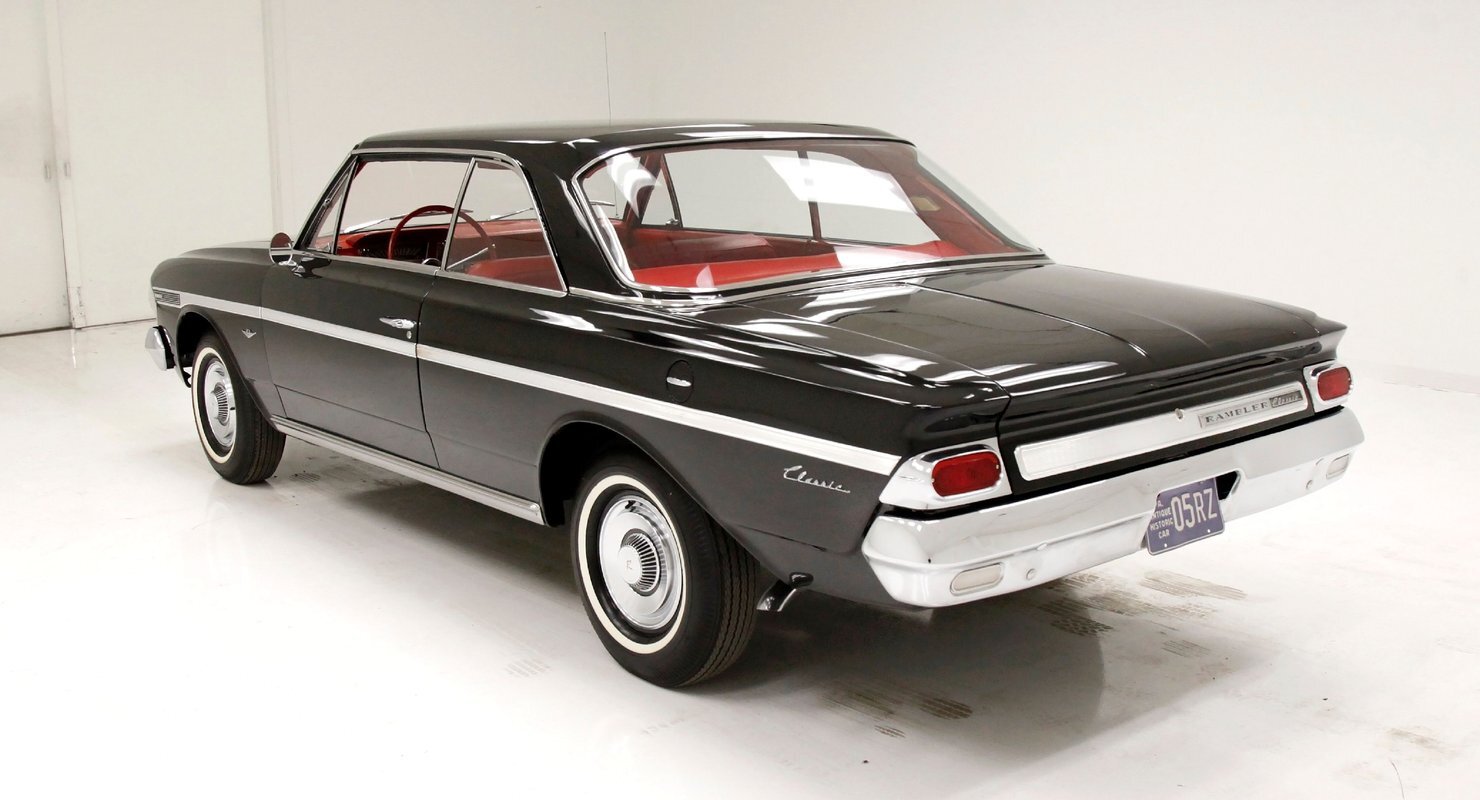 The Rambler Classic is an intermediate sized automobile that was built and sold by American Motors Corporation from the 1961 to 1966 model years. The Classic took the place of the Rambler Six and Rambler Rebel V-8 names, which were retired at the end of the 1960 model year. Introduced a six-passenger four-door sedan and station wagon versions, additional body styles were added. Two-door models became available as a "post" sedan in 1963 as well as a sporty pillarless hardtop. The 1964 model year Classics were refined with stainless steel rocker moldings, a flush single-plane aluminum grille replacing the previous year's deep concave design, and oval tail lamps replacing the flush-mounted lenses of the 1963's. Classics with bucket seats and a V8 engine could be ordered with a new "Shift-Command" three-speed automatic transmission mounted on the center console that could be shifted manually. A new two-door model joined the line only available in the top 770 trim. The pillarless hardtop offered a large glass area, and "its sales were brisk".