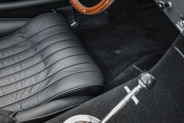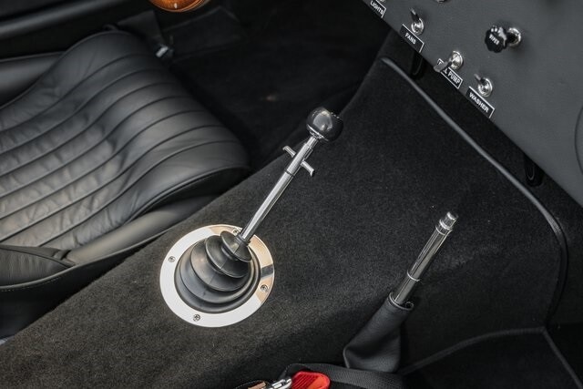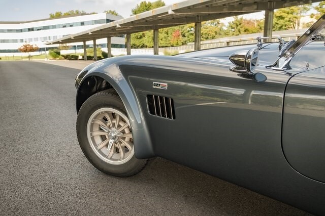 Our Superformance MKIII Cobra Vin # SPO 3538 Under-exhaust Roadster, painted in charcoal grey with black leather interior is a recreation of Carroll Shelby's