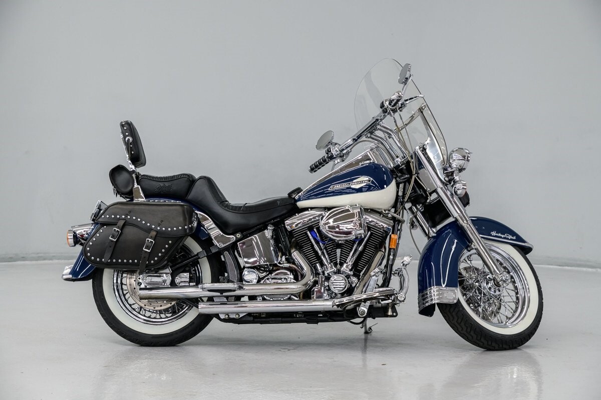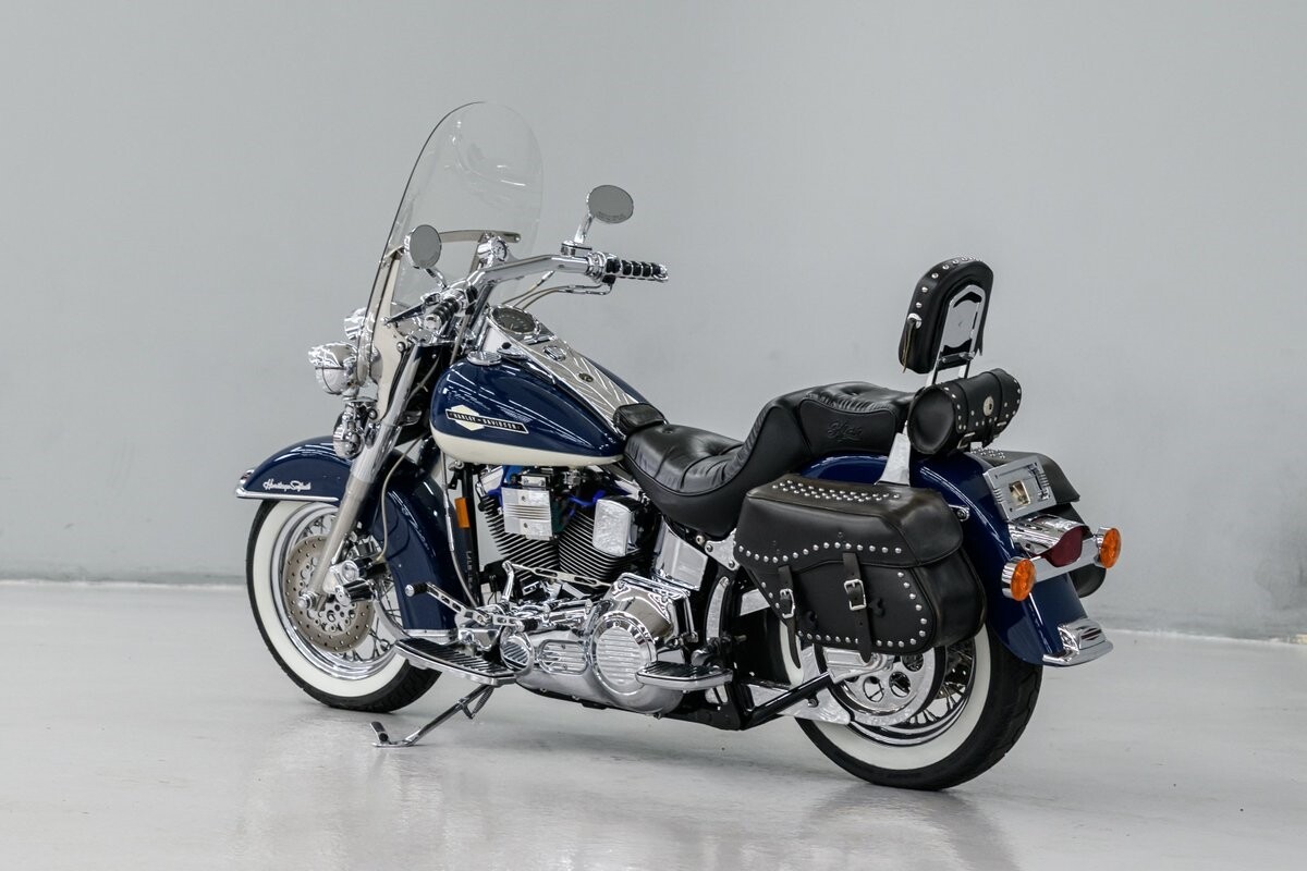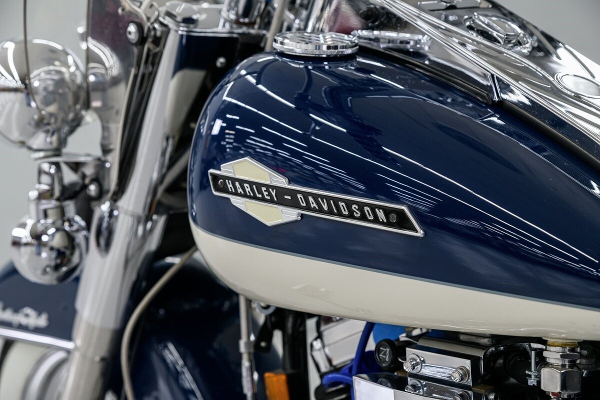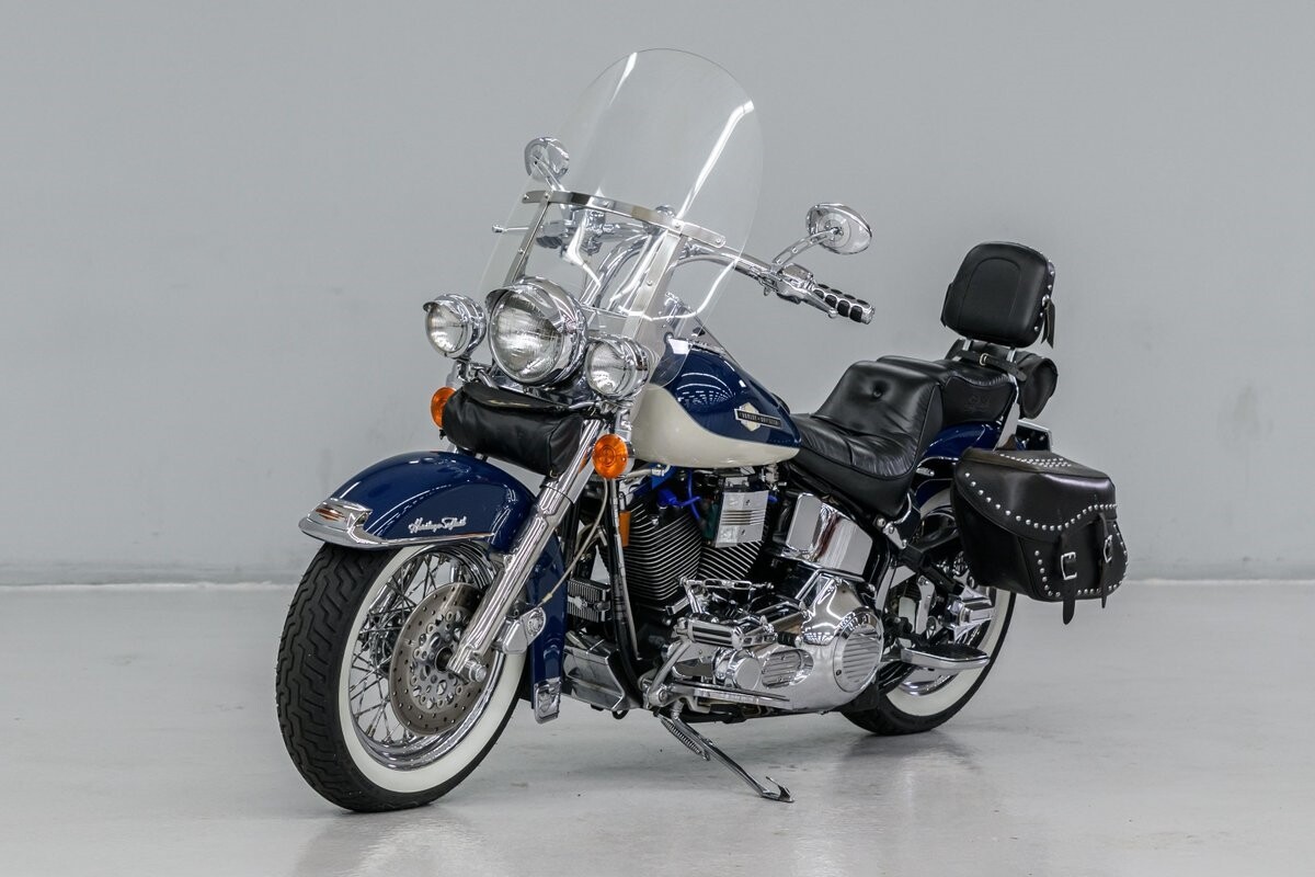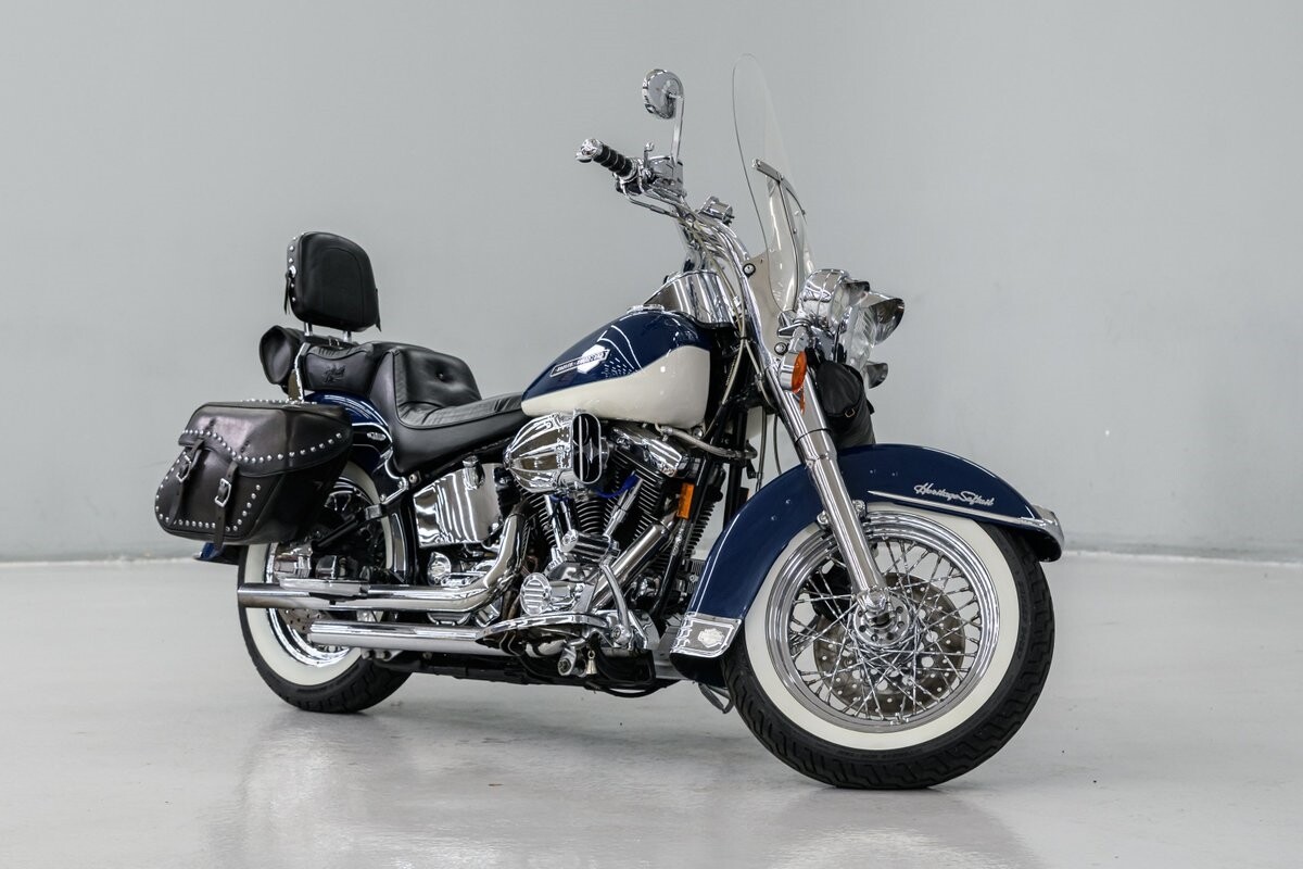 This Harley Davidson FLSTC Heritage Softail Classic was built at the York, PA plant in 1997 and it has been carefully restored to better than original. The custom 2-tone finish (applied in 2018) is exceptional and all chrome accessories are in excellent condition. The FLSTC comes factory equipped with 16" laced wheels, full fenders w/chrome trim and chrome engine accents/covers. Our owner has also added a compact windscreen, auxiliary fog lights and much more chrome. Other features include multiple seat configurations including a solo Corbin seat, foot boards, saddlebags, a 'pigtail' battery charger connection, custom cover, and three helmets. FLSTC Harleys of this era were powered by the 82 cubic inch (1340cc) 'EVO' single-cam V-twin. They came factory equipped with a Keihin 40mm carburetor and output was 67bhp and 72lb/ft of torque. This engine was completely rebuilt by Kendall Johnson and fitted with a performance cam - has logged only 2,500 miles since. The stock 5-speed transmission was upgraded to a six-speed for better highway manners and it is equipped with belt final-drive. Four-piston calipers with 11.5" front/rear discs provide braking and tires have good rubber. The fuel tank holds 4.2 gallons and the bike weighs in at 650# dry. This Harley Davidson Heritage Softail Classic is one of the most popular Softails in the Harley stable and this beauty has your name on it. ALL VEHICLES SOLD "AS IS".