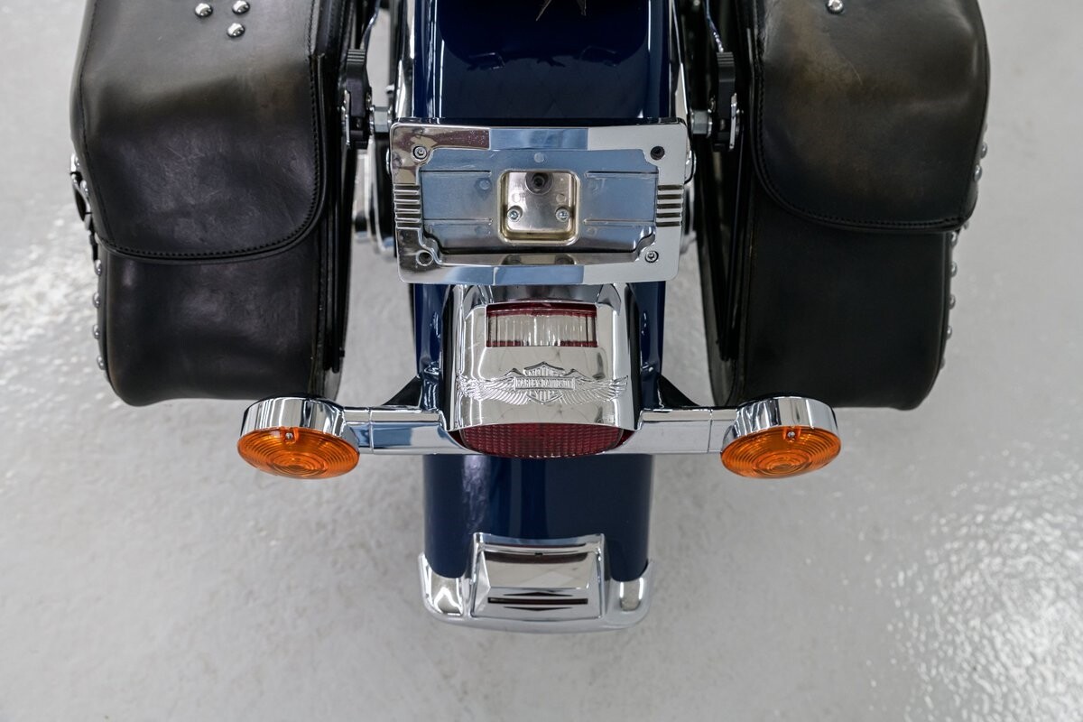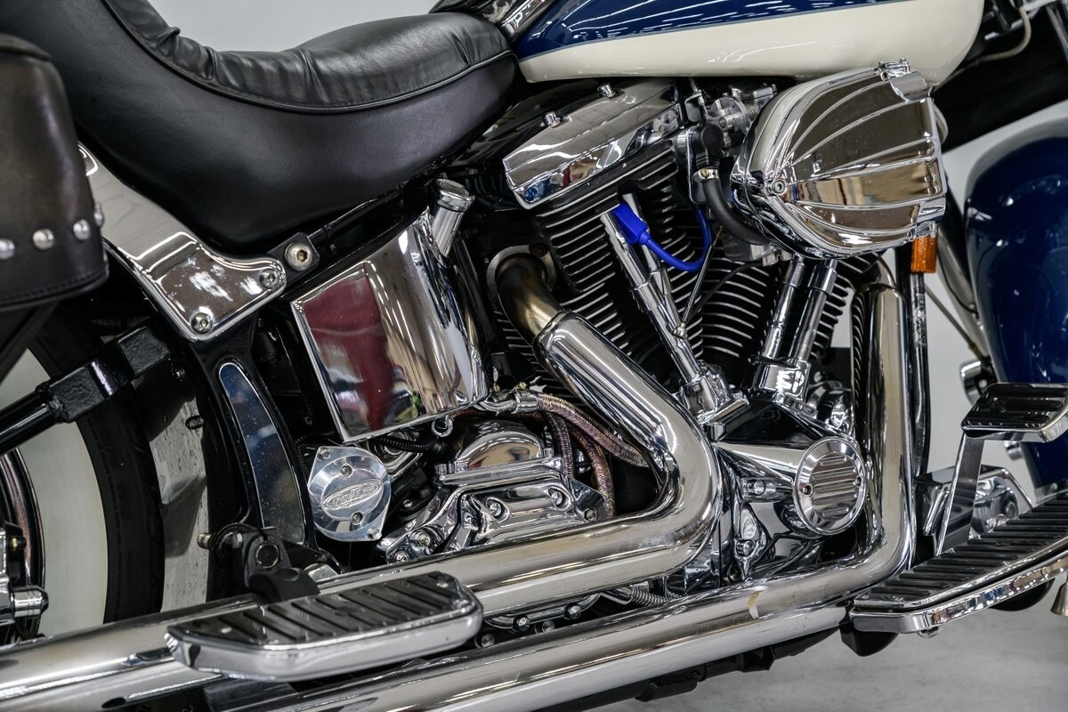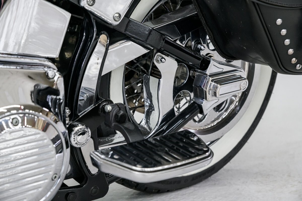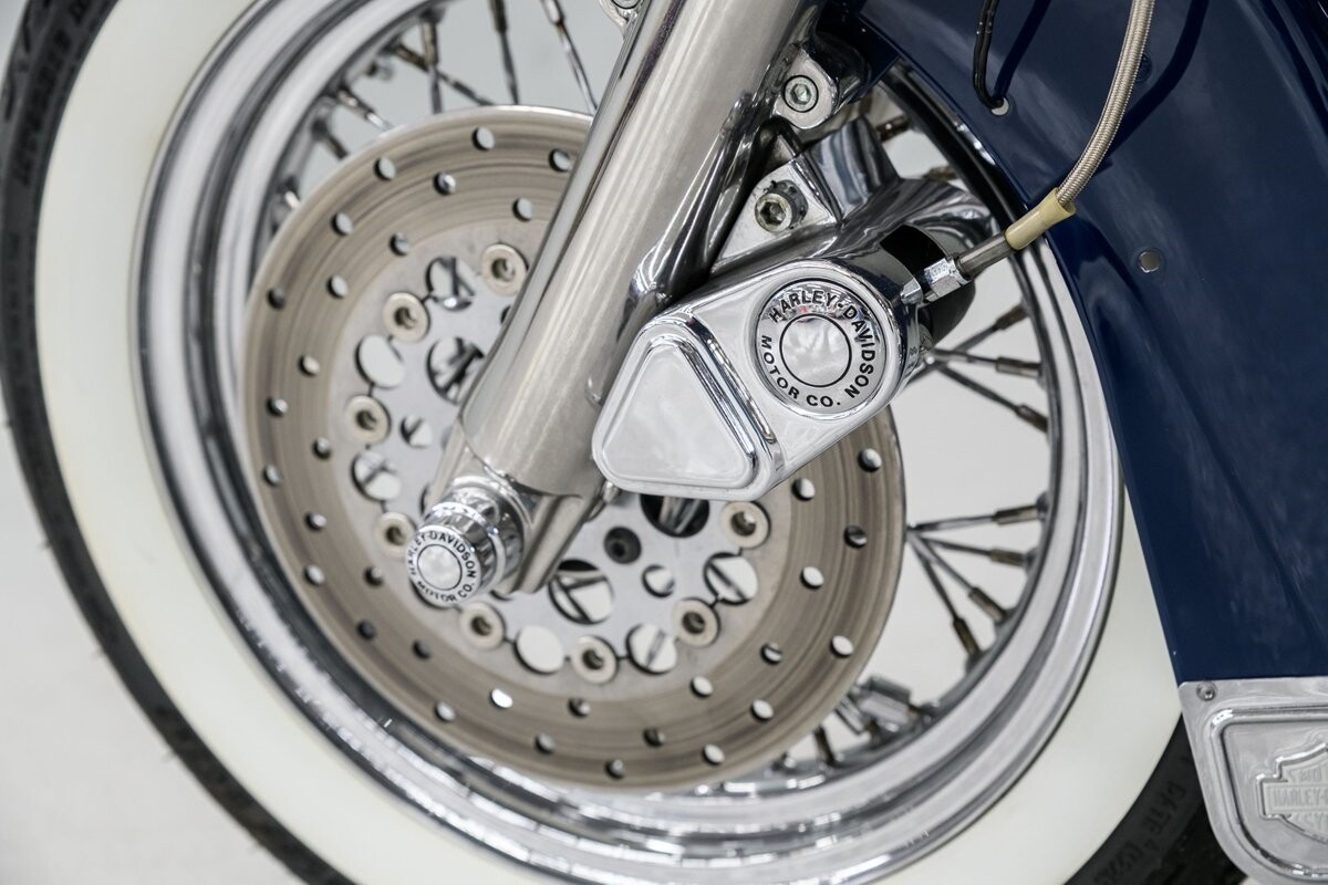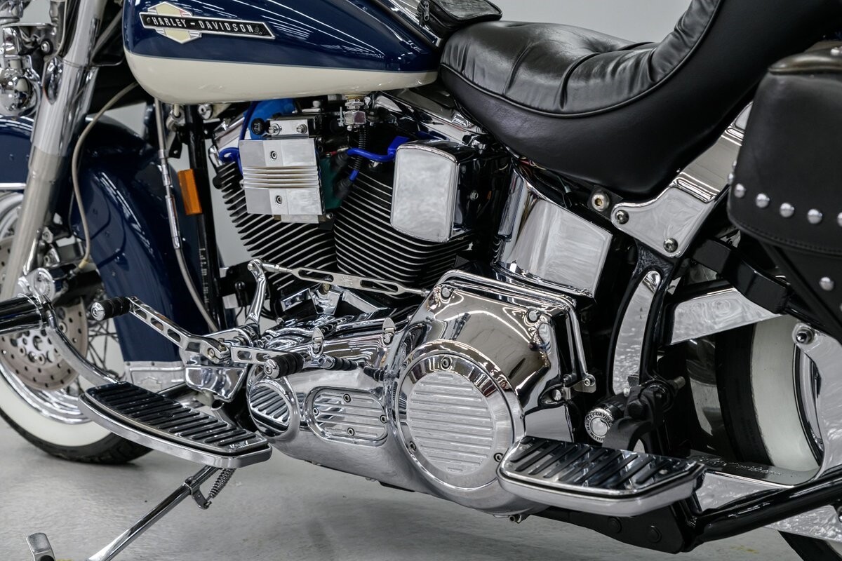This Harley Davidson FLSTC Heritage Softail Classic was built at the York, PA plant in 1997 and it has been carefully restored to better than original. The custom 2-tone finish (applied in 2018) is exceptional and all chrome accessories are in excellent condition. The FLSTC comes factory equipped with 16" laced wheels, full fenders w/chrome trim and chrome engine accents/covers. Our owner has also added a compact windscreen, auxiliary fog lights and much more chrome. Other features include multiple seat configurations including a solo Corbin seat, foot boards, saddlebags, a 'pigtail' battery charger connection, custom cover, and three helmets. FLSTC Harleys of this era were powered by the 82 cubic inch (1340cc) 'EVO' single-cam V-twin. They came factory equipped with a Keihin 40mm carburetor and output was 67bhp and 72lb/ft of torque. This engine was completely rebuilt by Kendall Johnson and fitted with a performance cam - has logged only 2,500 miles since. The stock 5-speed transmission was upgraded to a six-speed for better highway manners and it is equipped with belt final-drive. Four-piston calipers with 11.5" front/rear discs provide braking and tires have good rubber. The fuel tank holds 4.2 gallons and the bike weighs in at 650# dry. This Harley Davidson Heritage Softail Classic is one of the most popular Softails in the Harley stable and this beauty has your name on it. ALL VEHICLES SOLD "AS IS".
