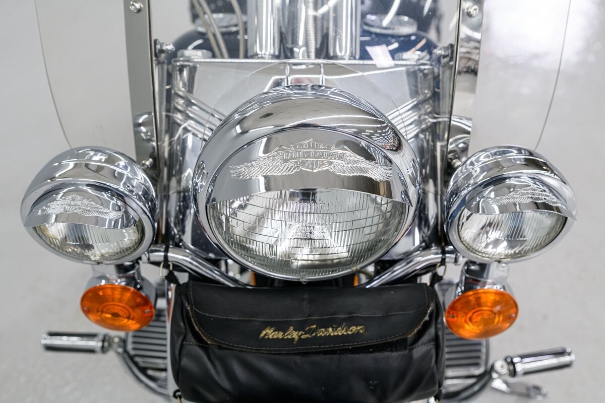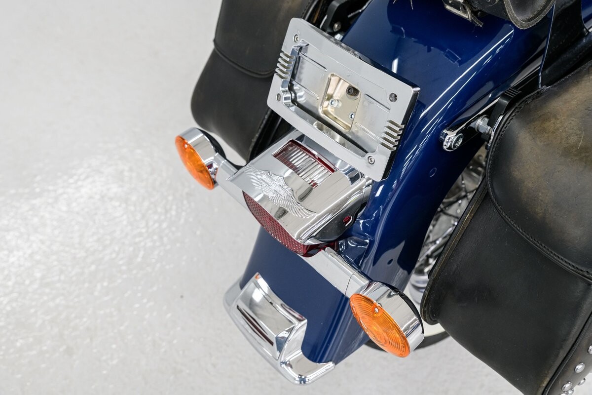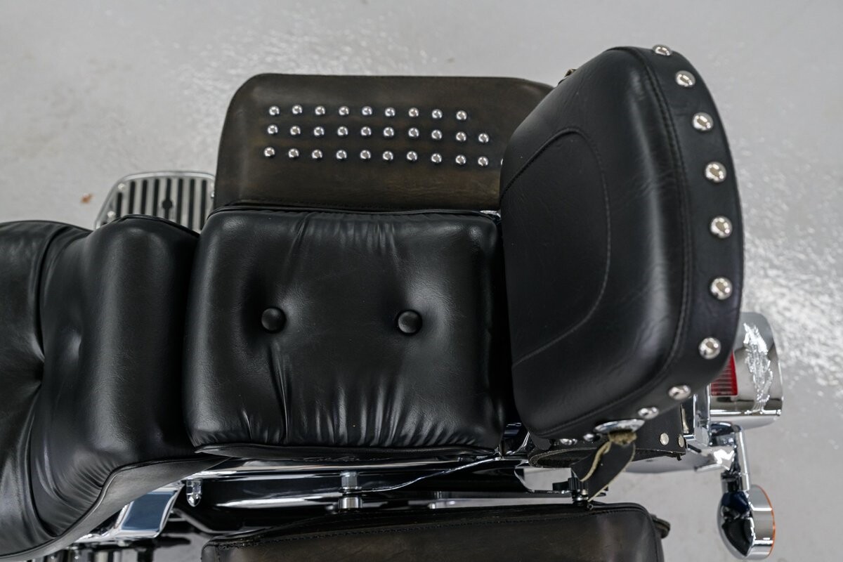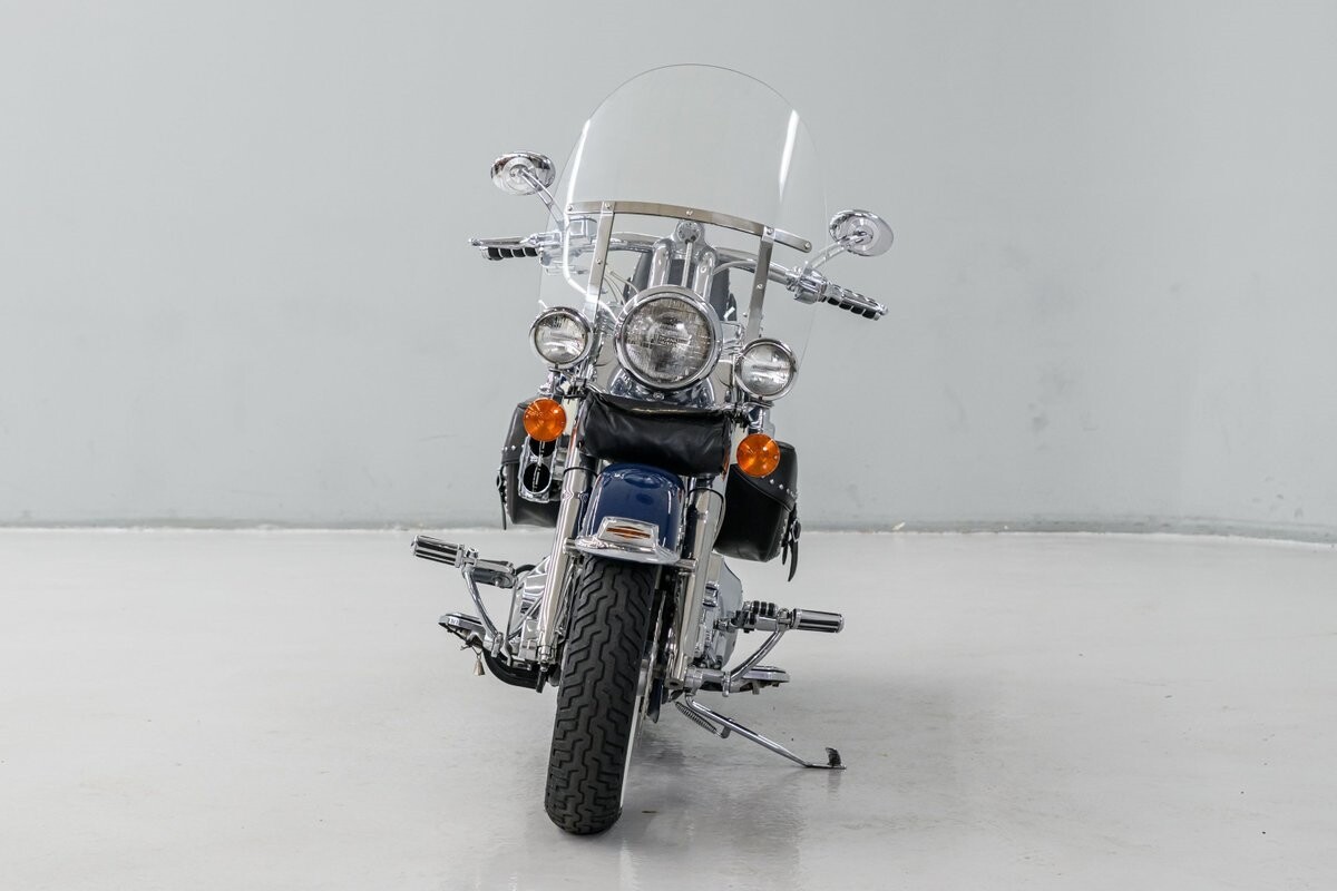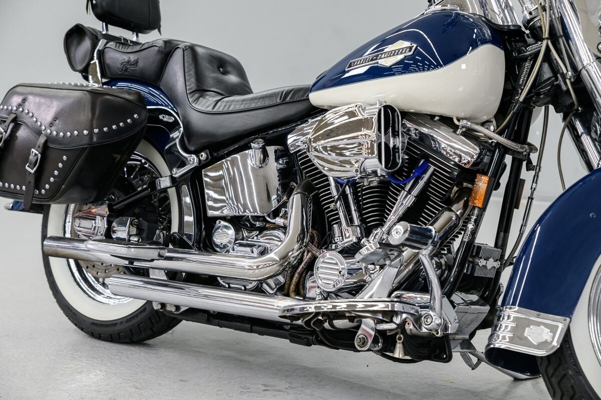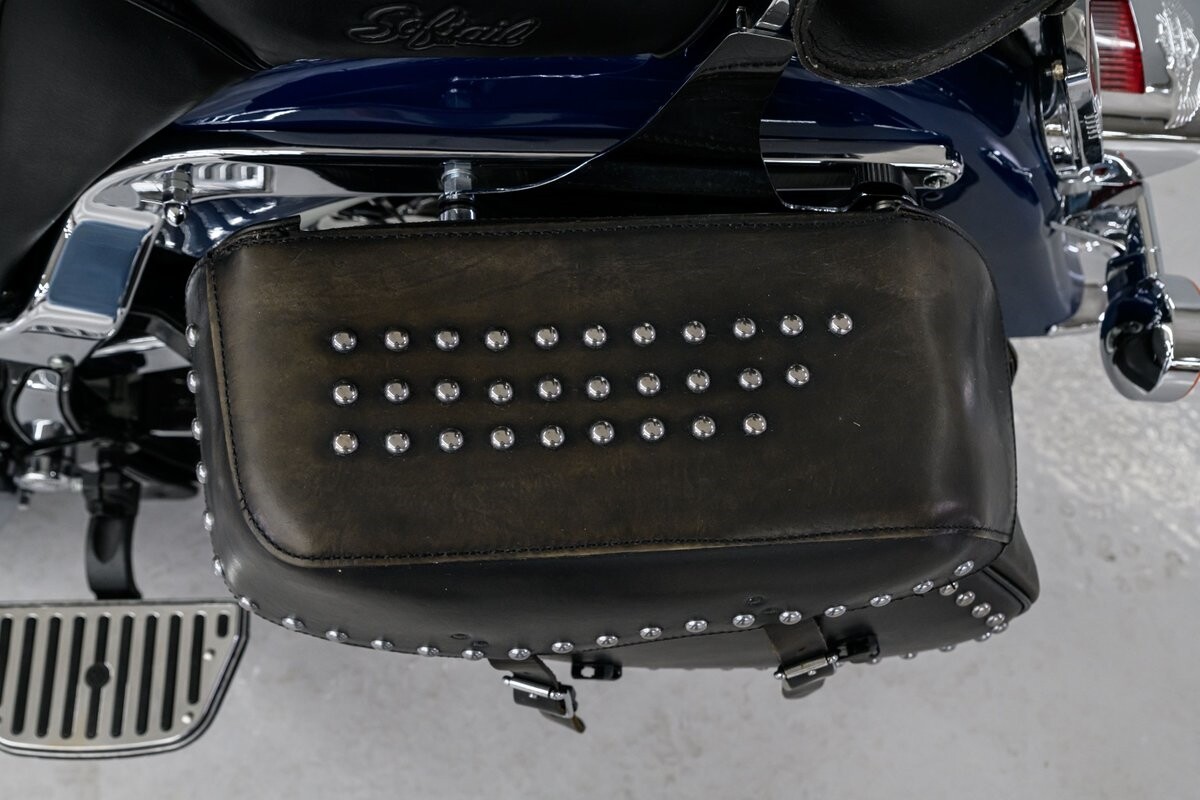 This Harley Davidson FLSTC Heritage Softail Classic was built at the York, PA plant in 1997 and it has been carefully restored to better than original. The custom 2-tone finish (applied in 2018) is exceptional and all chrome accessories are in excellent condition. The FLSTC comes factory equipped with 16" laced wheels, full fenders w/chrome trim and chrome engine accents/covers. Our owner has also added a compact windscreen, auxiliary fog lights and much more chrome. Other features include multiple seat configurations including a solo Corbin seat, foot boards, saddlebags, a 'pigtail' battery charger connection, custom cover, and three helmets. FLSTC Harleys of this era were powered by the 82 cubic inch (1340cc) 'EVO' single-cam V-twin. They came factory equipped with a Keihin 40mm carburetor and output was 67bhp and 72lb/ft of torque. This engine was completely rebuilt by Kendall Johnson and fitted with a performance cam - has logged only 2,500 miles since. The stock 5-speed transmission was upgraded to a six-speed for better highway manners and it is equipped with belt final-drive. Four-piston calipers with 11.5" front/rear discs provide braking and tires have good rubber. The fuel tank holds 4.2 gallons and the bike weighs in at 650# dry. This Harley Davidson Heritage Softail Classic is one of the most popular Softails in the Harley stable and this beauty has your name on it. ALL VEHICLES SOLD "AS IS".
