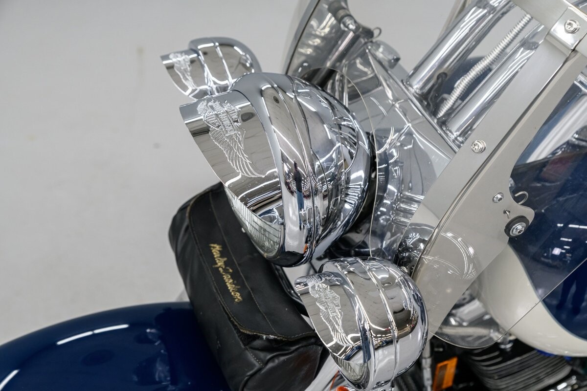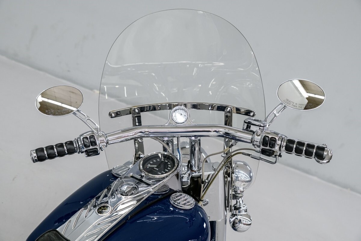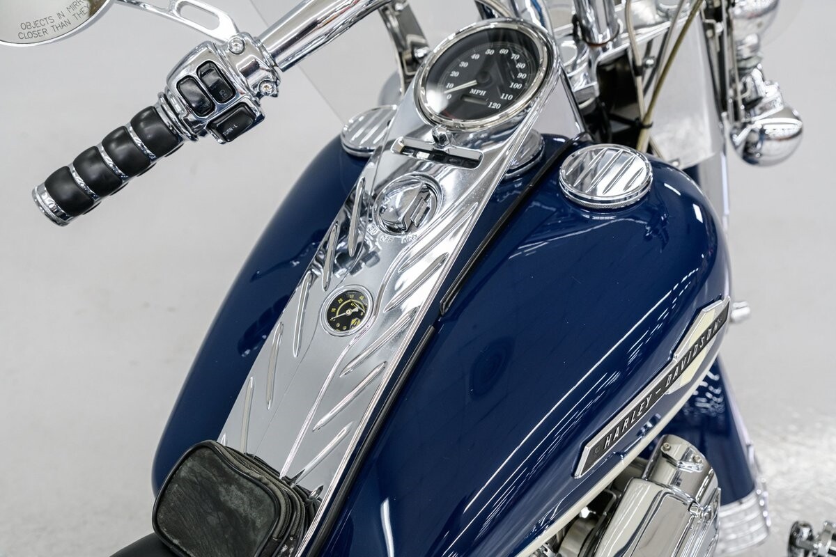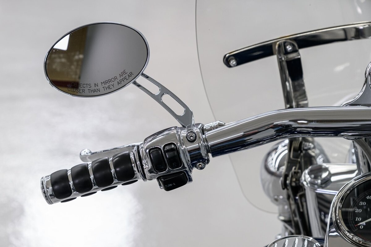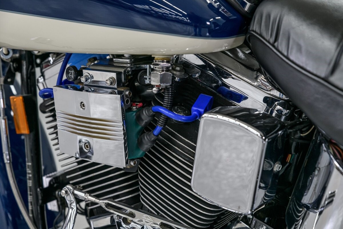 This Harley Davidson FLSTC Heritage Softail Classic was built at the York, PA plant in 1997 and it has been carefully restored to better than original. The custom 2-tone finish (applied in 2018) is exceptional and all chrome accessories are in excellent condition. The FLSTC comes factory equipped with 16" laced wheels, full fenders w/chrome trim and chrome engine accents/covers. Our owner has also added a compact windscreen, auxiliary fog lights and much more chrome. Other features include multiple seat configurations including a solo Corbin seat, foot boards, saddlebags, a 'pigtail' battery charger connection, custom cover, and three helmets. FLSTC Harleys of this era were powered by the 82 cubic inch (1340cc) 'EVO' single-cam V-twin. They came factory equipped with a Keihin 40mm carburetor and output was 67bhp and 72lb/ft of torque. This engine was completely rebuilt by Kendall Johnson and fitted with a performance cam - has logged only 2,500 miles since. The stock 5-speed transmission was upgraded to a six-speed for better highway manners and it is equipped with belt final-drive. Four-piston calipers with 11.5" front/rear discs provide braking and tires have good rubber. The fuel tank holds 4.2 gallons and the bike weighs in at 650# dry. This Harley Davidson Heritage Softail Classic is one of the most popular Softails in the Harley stable and this beauty has your name on it. ALL VEHICLES SOLD "AS IS".