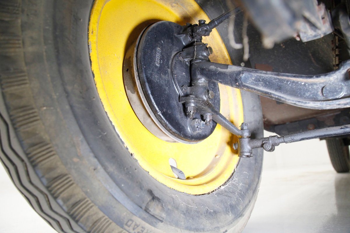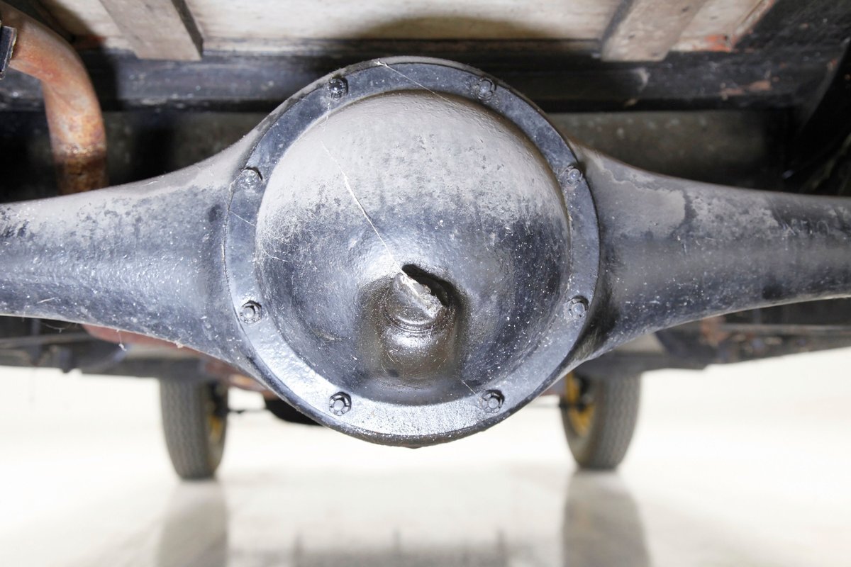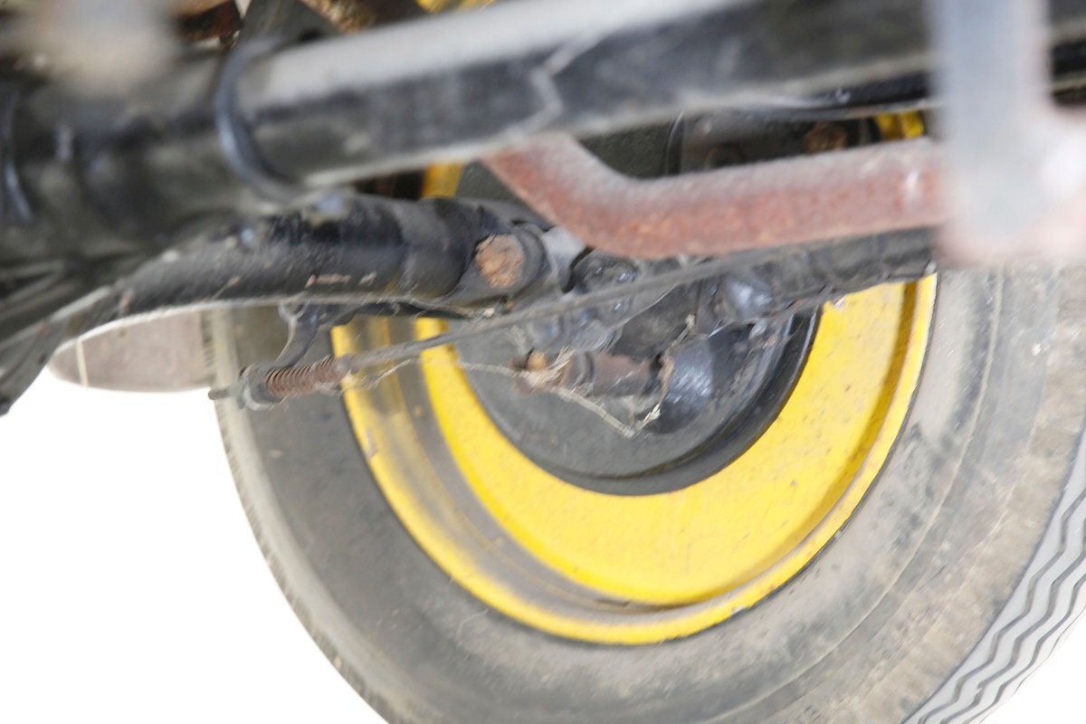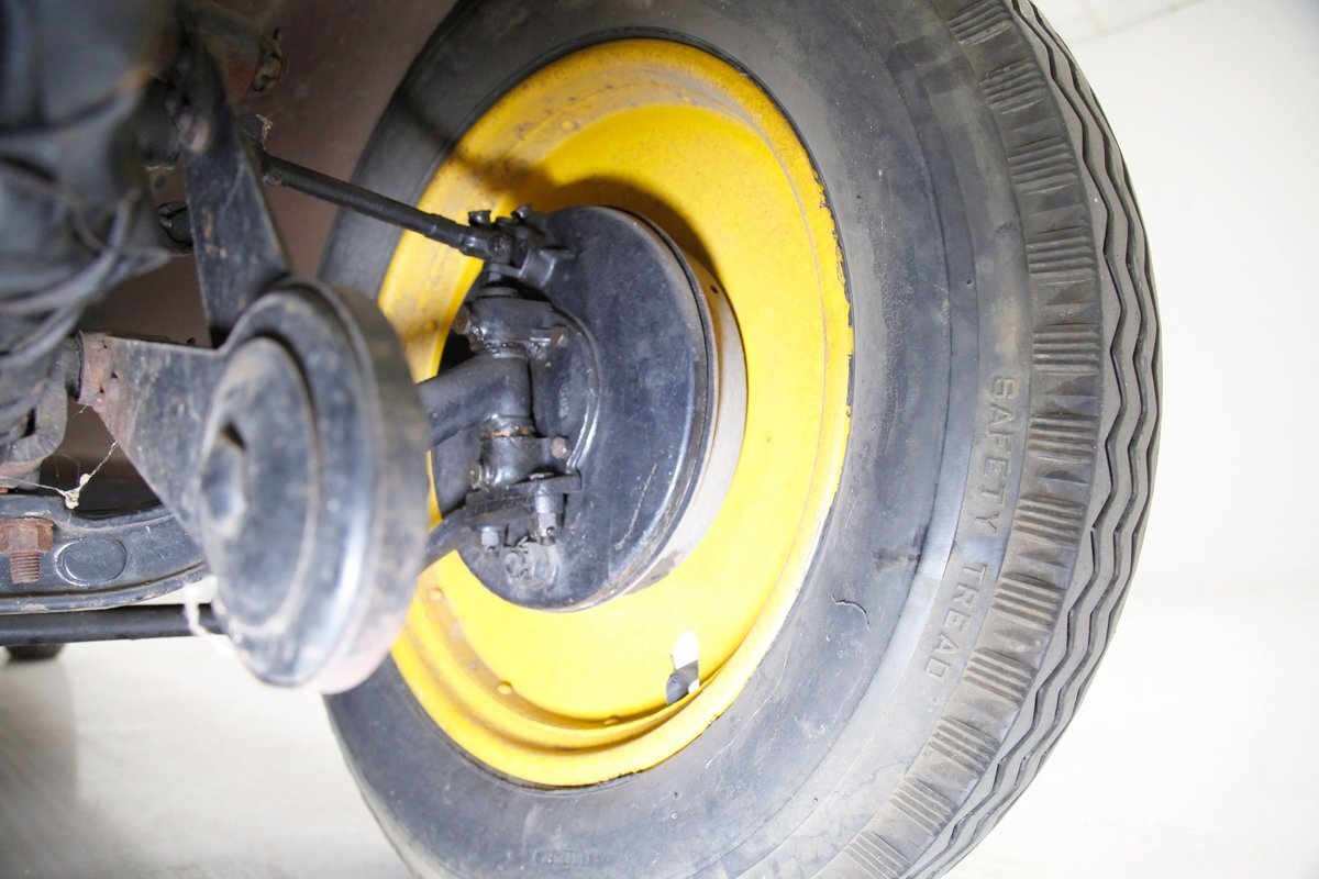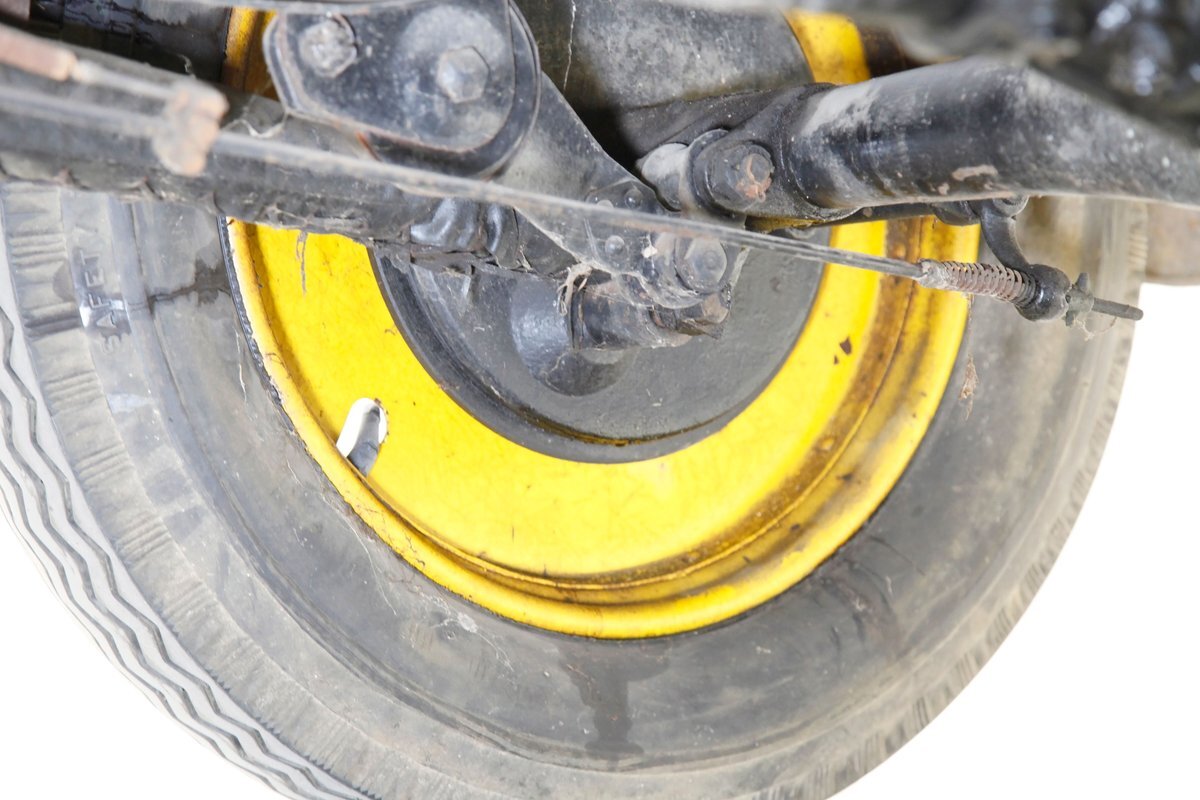 Again, no real rust to speak of, just a bit of surface rust on the muffler and exhaust piping. All else is straight black painted steel for the frame structure and leaf springs for the front, as well as quarter elliptical leaf springs for the back. Mechanical drum braking is on all 4 corners.