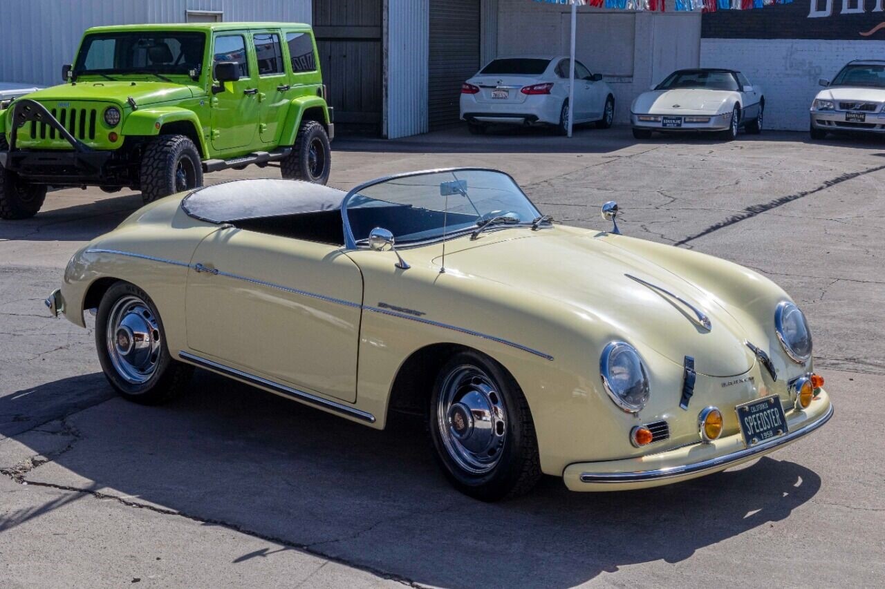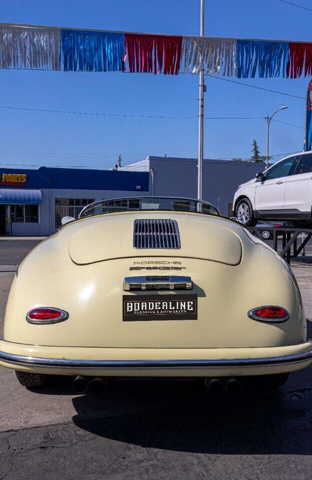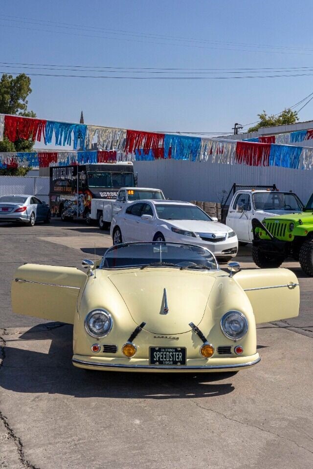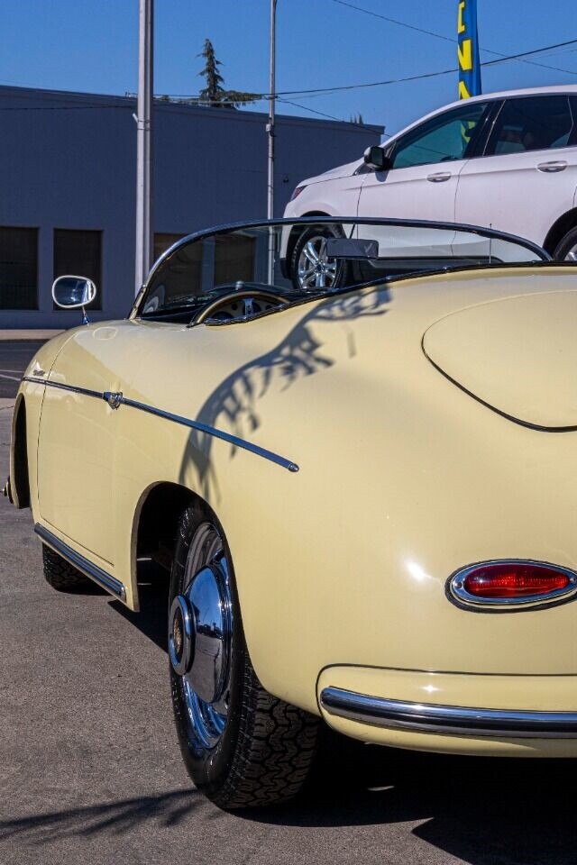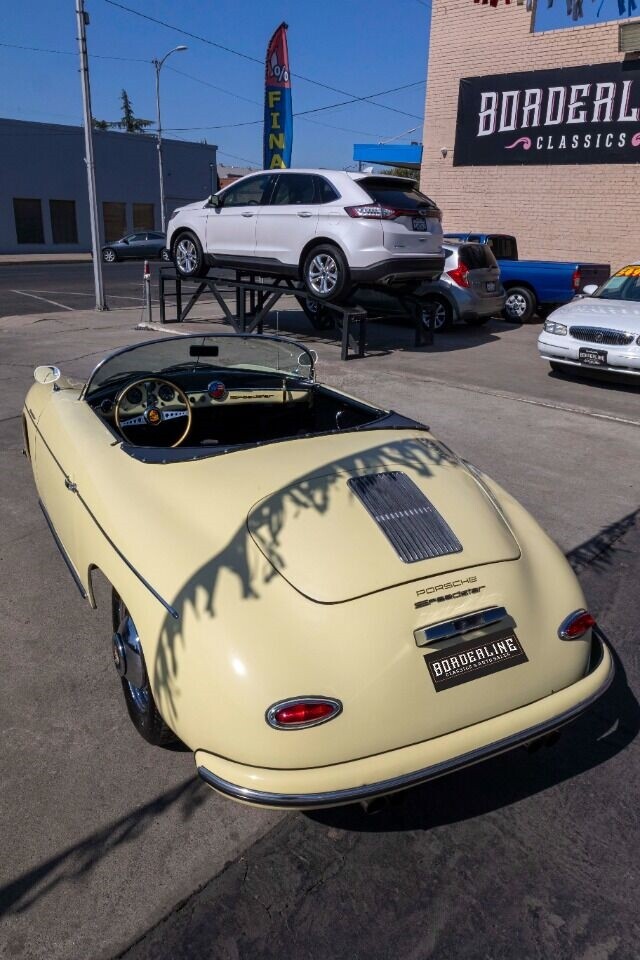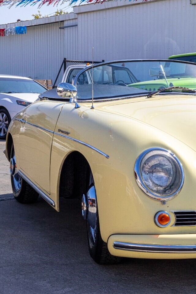 This 1958 Speedster replica was built by Classic Motor Carriages (CMC) in Miami, Florida. Founded in 1973, CMC is the largest Speedster replica manufacturer in the country, selling several hundred kits & factory cars a year. This particular car was completed a few years back, was first registered in 2020, and only has 10,412 miles on the odometer. Its finished in the very rare Primrose Yellow, and includes vintage steering wheel & side mirrors, gold Speedster emblems & accents, chrome replica wheels & hubcaps, and authentic looking bucket seats. Every effort was made to give this vehicle the proper look of a true Speedster! Under the hood is a new VW 1600cc dual-port engine with only 2,000 miles!! The engine was built with Weber carburetor & extended oil sump for better lubrication, and just had a recent tune-up that included new battery, distributor cap & generator which now charges the vehicle to 13.6 volts. The engine is mated to a 4-speed manual transmission. This beautiful recreation comes with black convertible top & side curtains, a clean & functional interior, and a front trunk compartment with proper leather tie-downs! This 1958 Speedster replica is the next best thing to owning a true Speedster – at a fraction of the cost!! See it today in our classic car showroom at Borderline Classics & Auto Sales in Downtown Dinuba!!