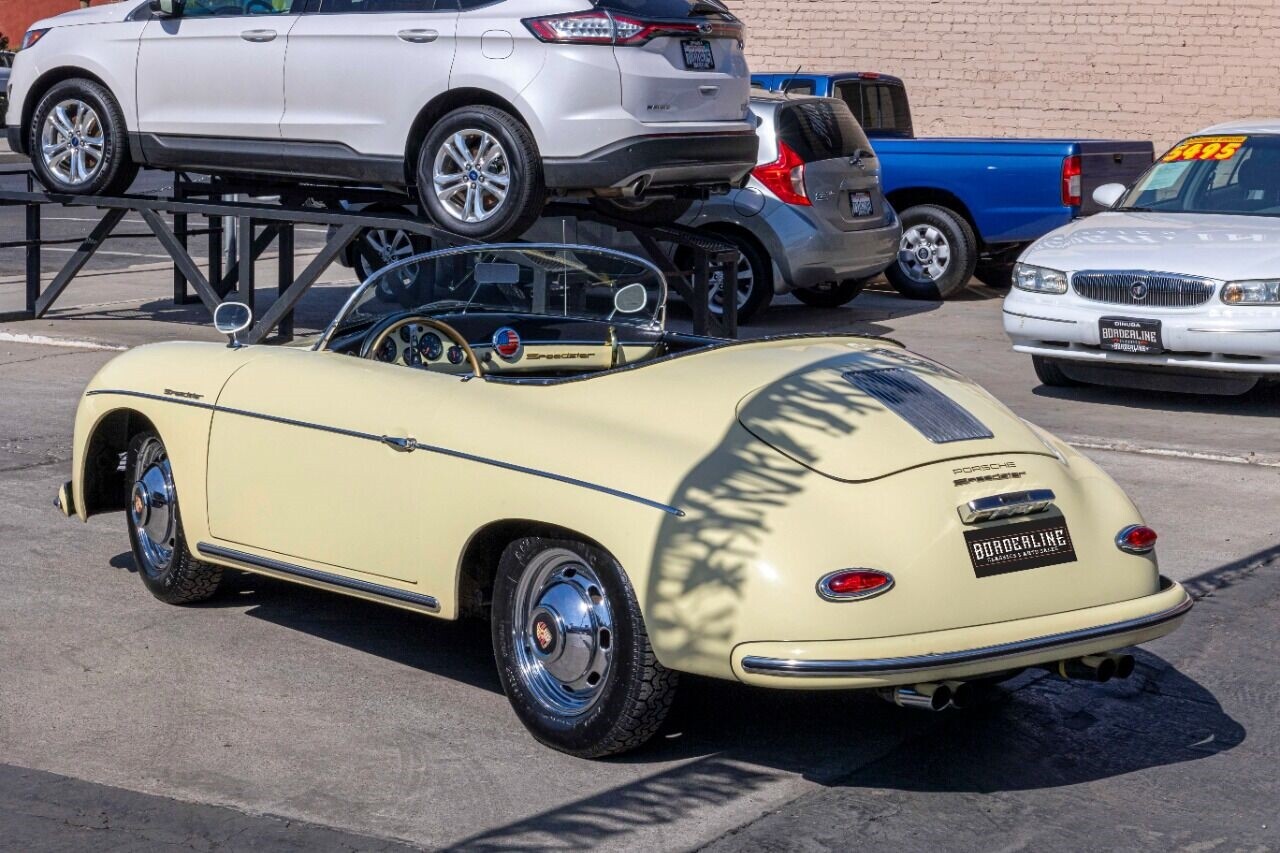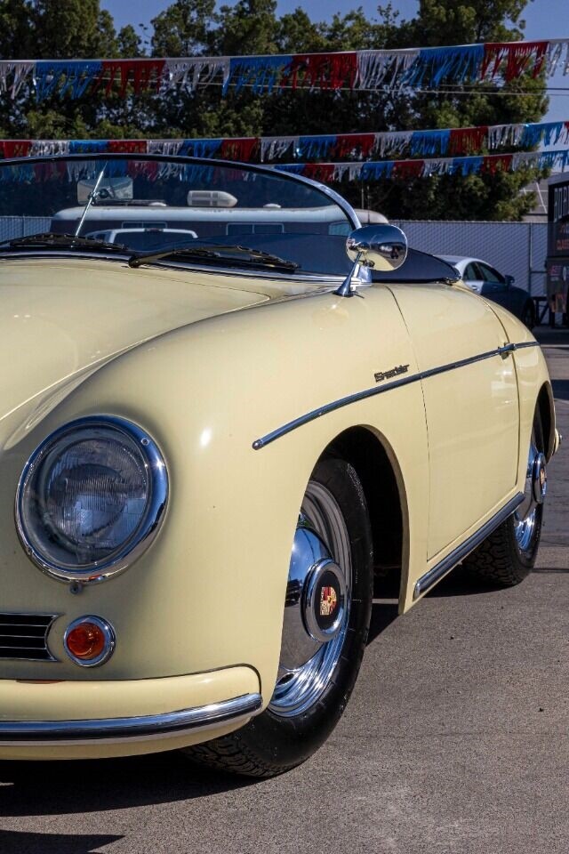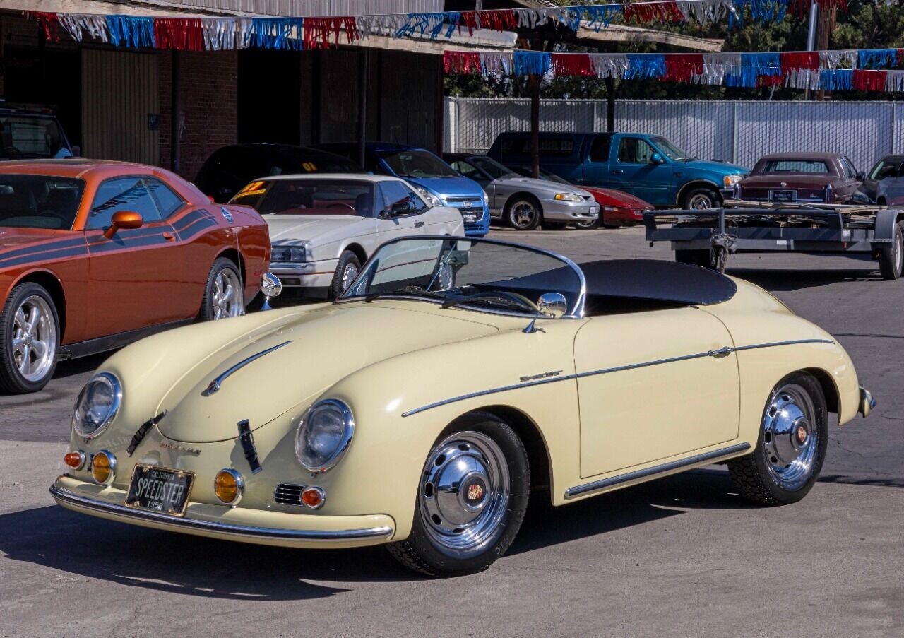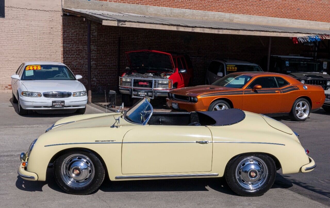 This 1958 Speedster replica was built by Classic Motor Carriages (CMC) in Miami, Florida. Founded in 1973, CMC is the largest Speedster replica manufacturer in the country, selling several hundred kits & factory cars a year. This particular car was completed a few years back, was first registered in 2020, and only has 10,412 miles on the odometer. Its finished in the very rare Primrose Yellow, and includes vintage steering wheel & side mirrors, gold Speedster emblems & accents, chrome replica wheels & hubcaps, and authentic looking bucket seats. Every effort was made to give this vehicle the proper look of a true Speedster! Under the hood is a new VW 1600cc dual-port engine with only 2,000 miles!! The engine was built with Weber carburetor & extended oil sump for better lubrication, and just had a recent tune-up that included new battery, distributor cap & generator which now charges the vehicle to 13.6 volts. The engine is mated to a 4-speed manual transmission. This beautiful recreation comes with black convertible top & side curtains, a clean & functional interior, and a front trunk compartment with proper leather tie-downs! This 1958 Speedster replica is the next best thing to owning a true Speedster – at a fraction of the cost!! See it today in our classic car showroom at Borderline Classics & Auto Sales in Downtown Dinuba!!
