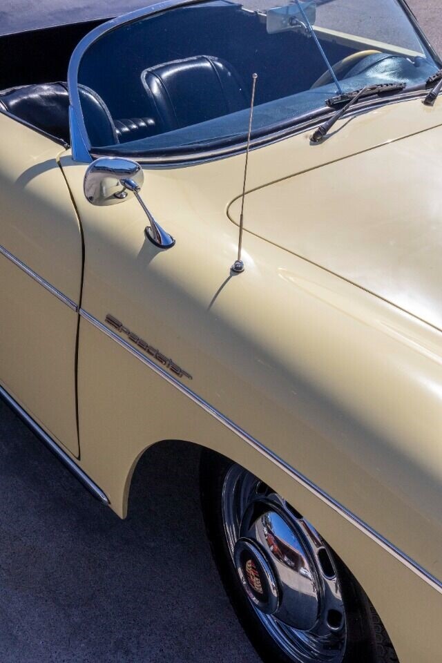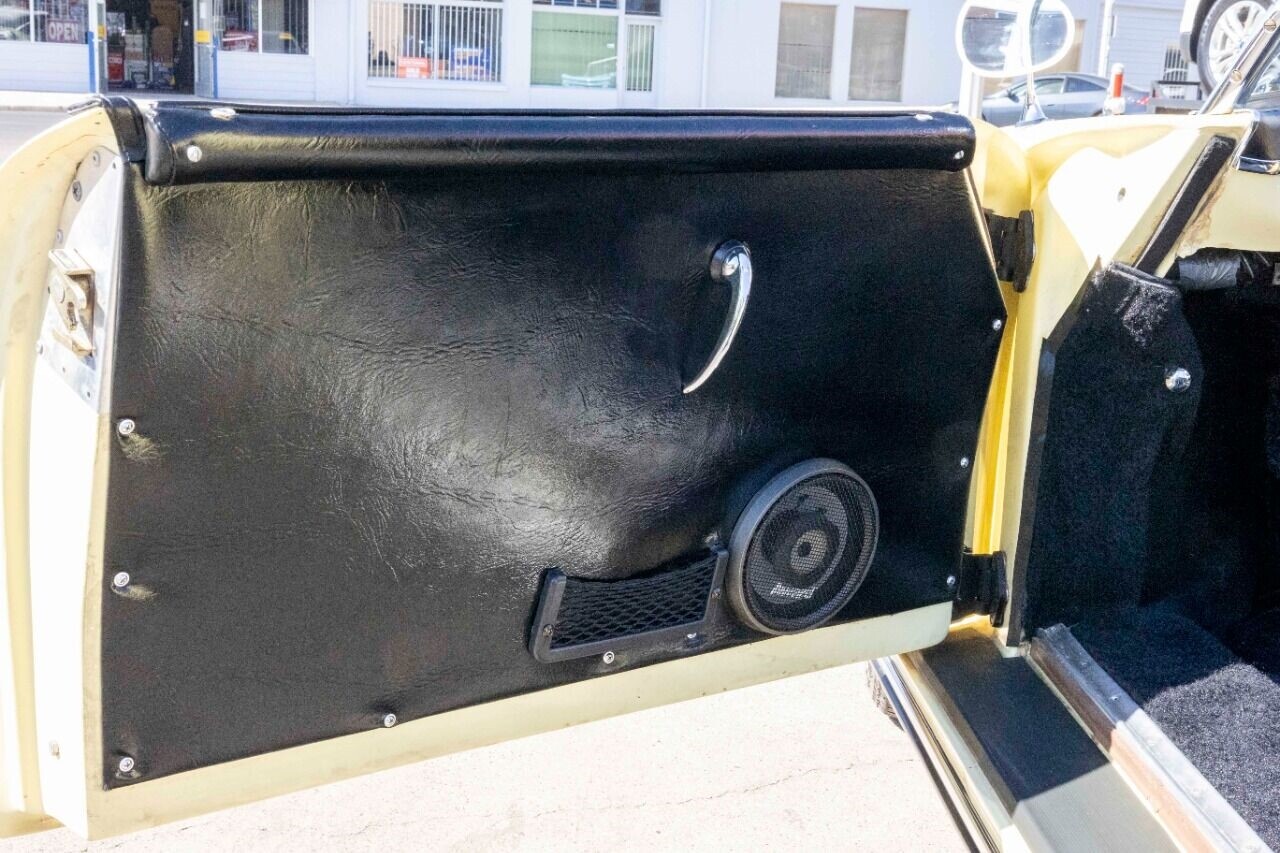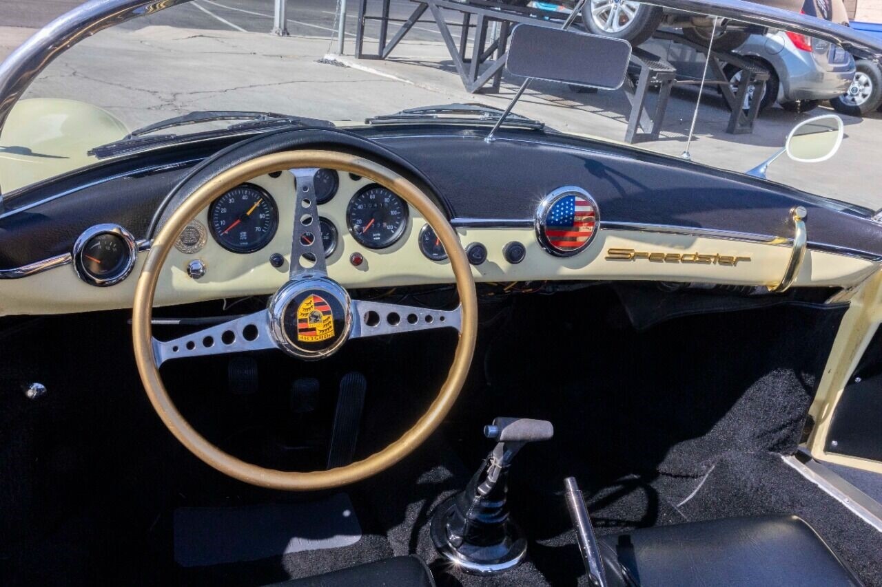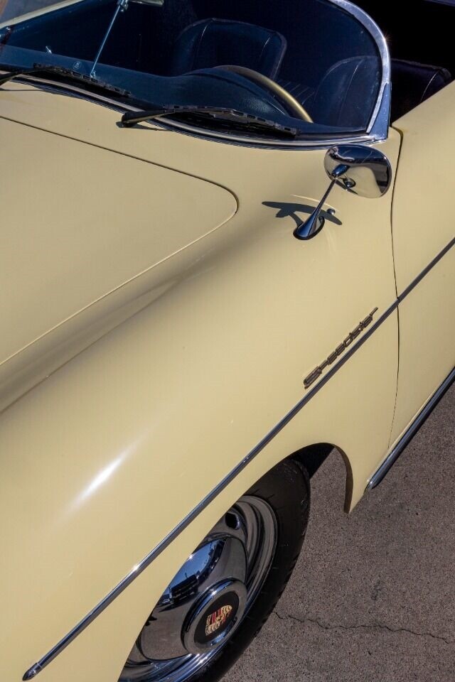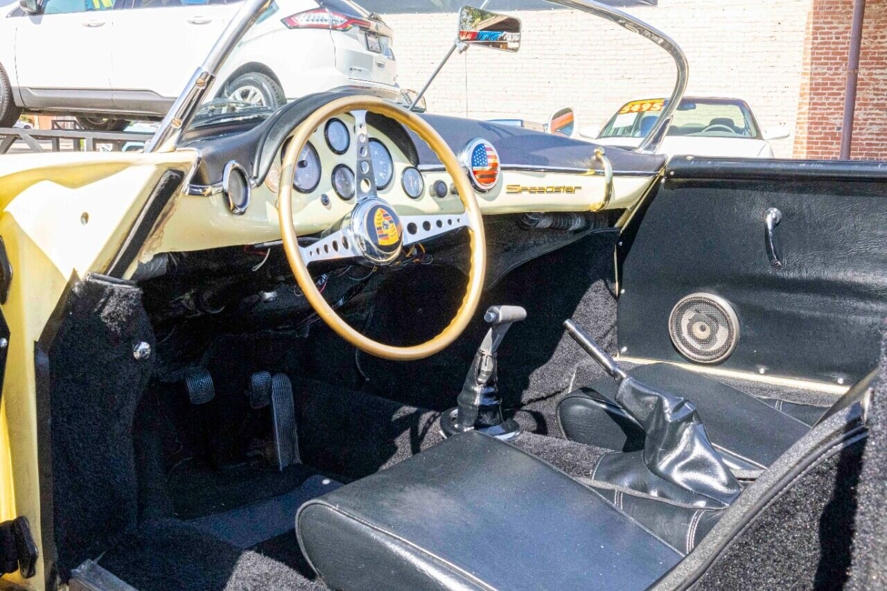 This 1958 Speedster replica was built by Classic Motor Carriages (CMC) in Miami, Florida. Founded in 1973, CMC is the largest Speedster replica manufacturer in the country, selling several hundred kits & factory cars a year. This particular car was completed a few years back, was first registered in 2020, and only has 10,412 miles on the odometer. Its finished in the very rare Primrose Yellow, and includes vintage steering wheel & side mirrors, gold Speedster emblems & accents, chrome replica wheels & hubcaps, and authentic looking bucket seats. Every effort was made to give this vehicle the proper look of a true Speedster! Under the hood is a new VW 1600cc dual-port engine with only 2,000 miles!! The engine was built with Weber carburetor & extended oil sump for better lubrication, and just had a recent tune-up that included new battery, distributor cap & generator which now charges the vehicle to 13.6 volts. The engine is mated to a 4-speed manual transmission. This beautiful recreation comes with black convertible top & side curtains, a clean & functional interior, and a front trunk compartment with proper leather tie-downs! This 1958 Speedster replica is the next best thing to owning a true Speedster – at a fraction of the cost!! See it today in our classic car showroom at Borderline Classics & Auto Sales in Downtown Dinuba!!