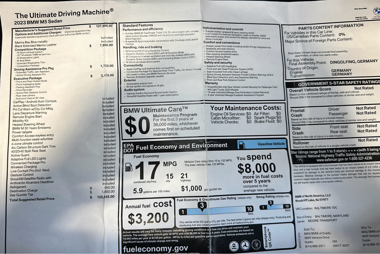 Call : 718-825-4678For Sale is this beautiful 2023 BMW M5 Competition Marina Bay Blue on BlackDriving Assistance Pro PKGExecutive Package 10K Miles, Clean Title & Carfax!Runs and Drives GREAT! Financing is Available - Trade-Ins Accepted! Call : 718-825-4678 PLEASE BE SURE TO VISIT OUR LOCATION @ 161 Marion St Staten Island NY 10310 or call for an appointment 718-825-4678