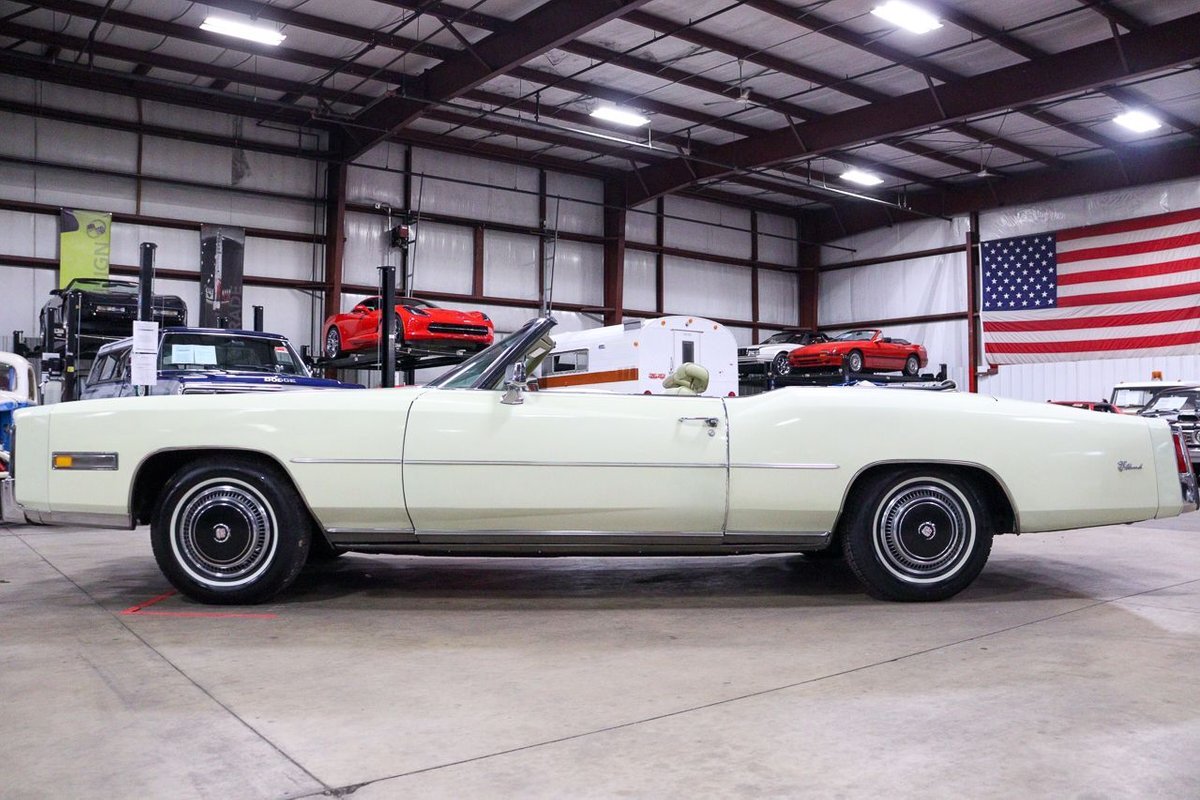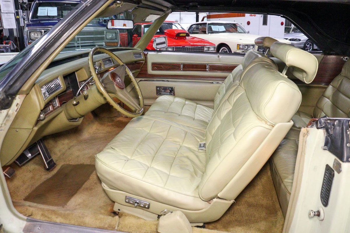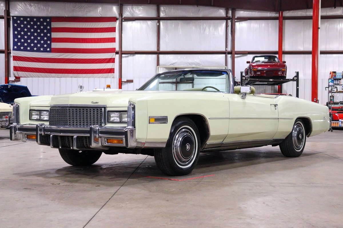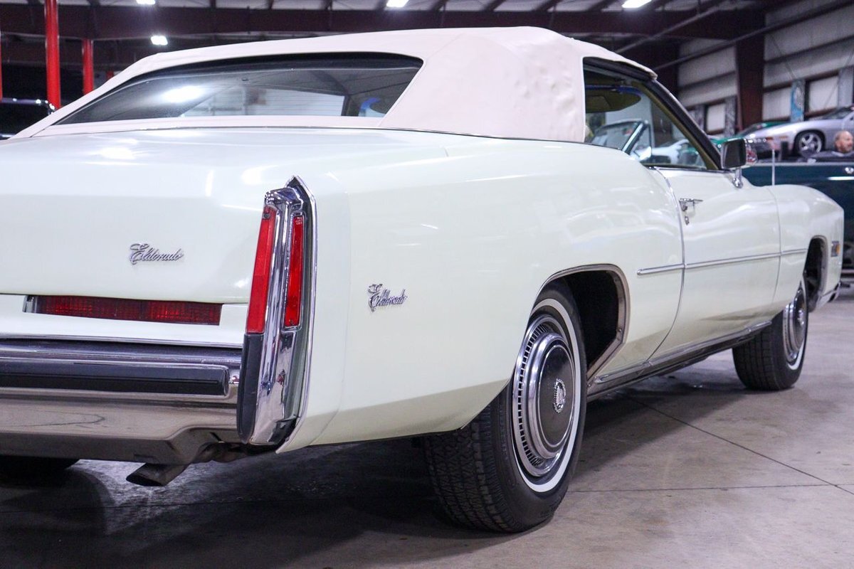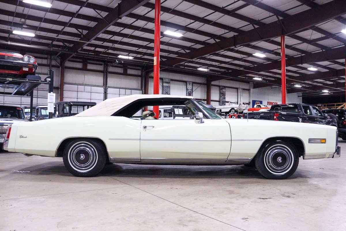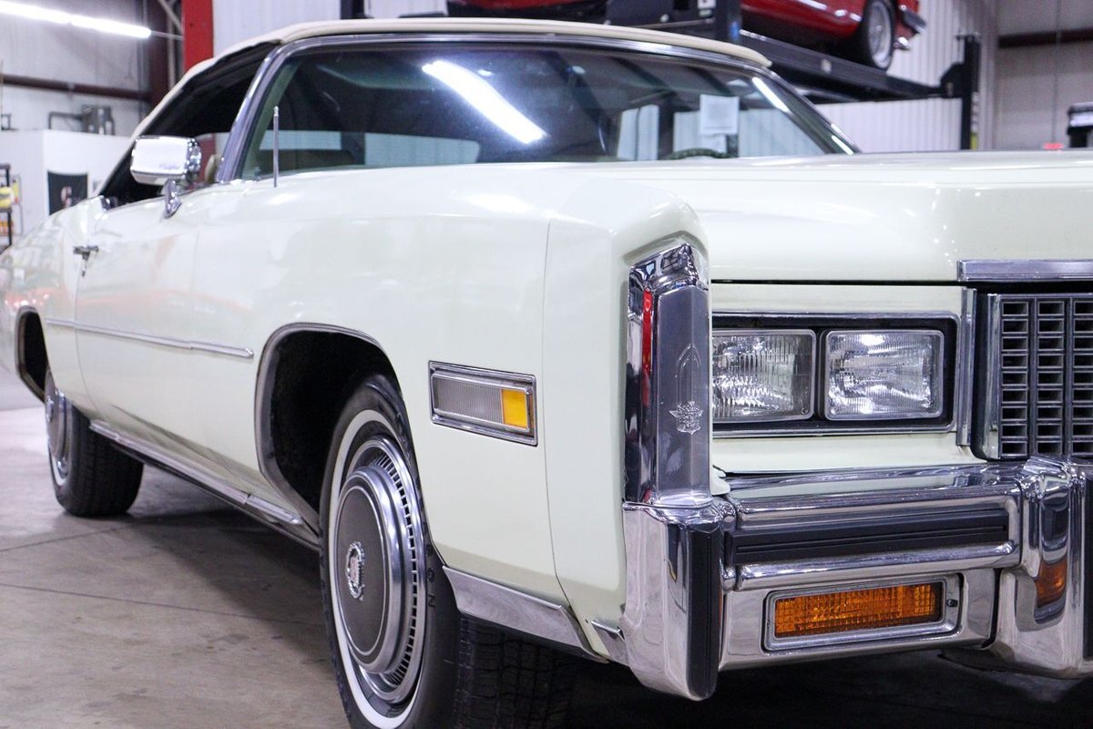 The 1976 Cadillac Eldorado Convertible was a luxurious, full-size car produced by the Cadillac division of General Motors. This car was a part of the Eldorado line that started in 1953, and was the last year that Cadillac produced a convertible until 1984. This example here is finished in Phoenician Ivory.