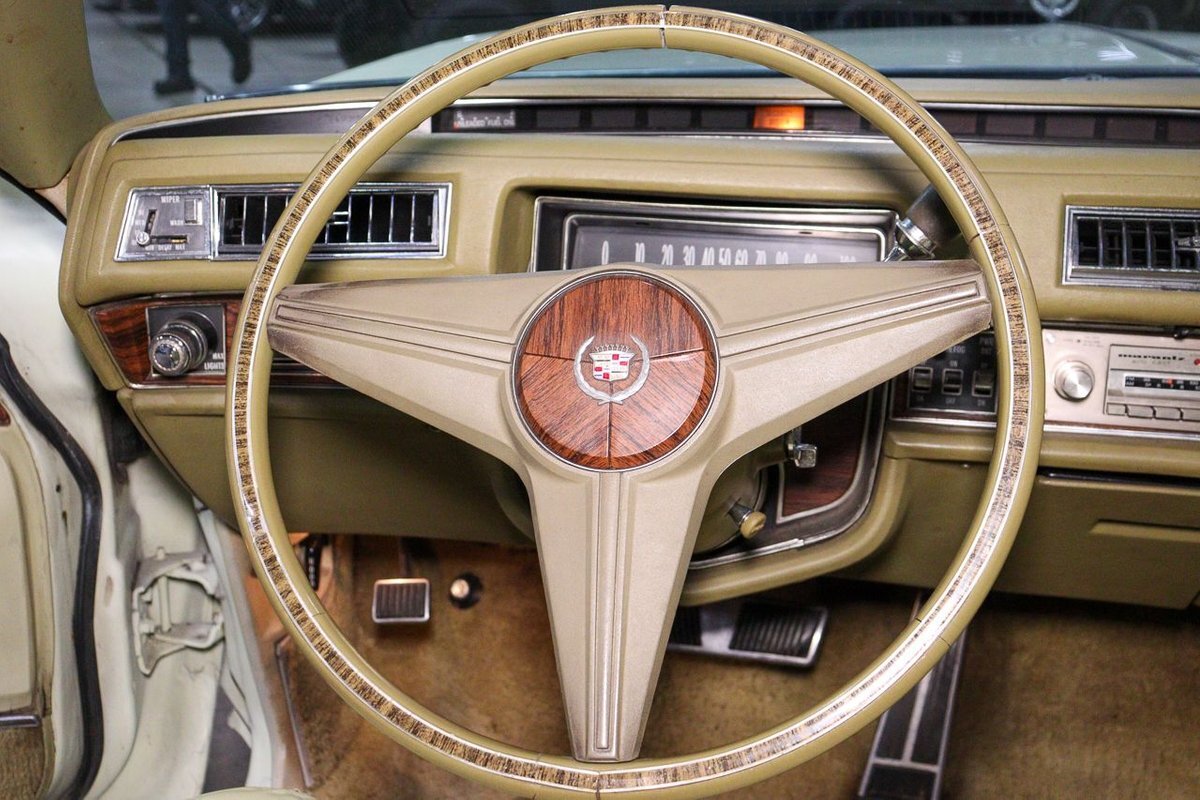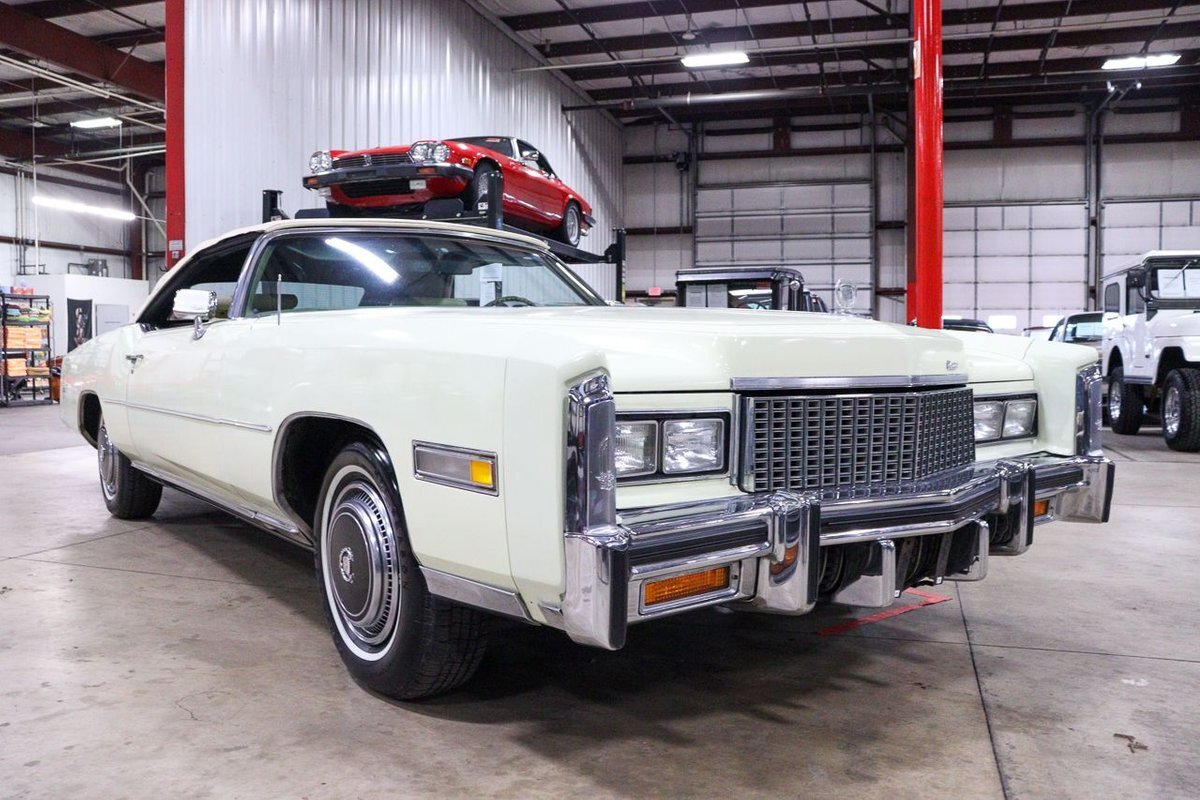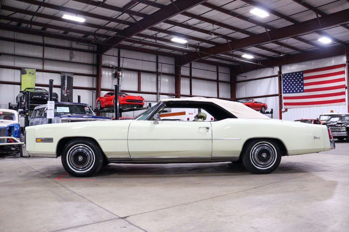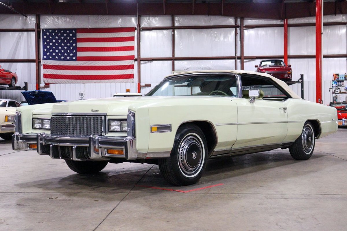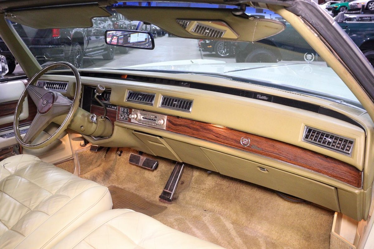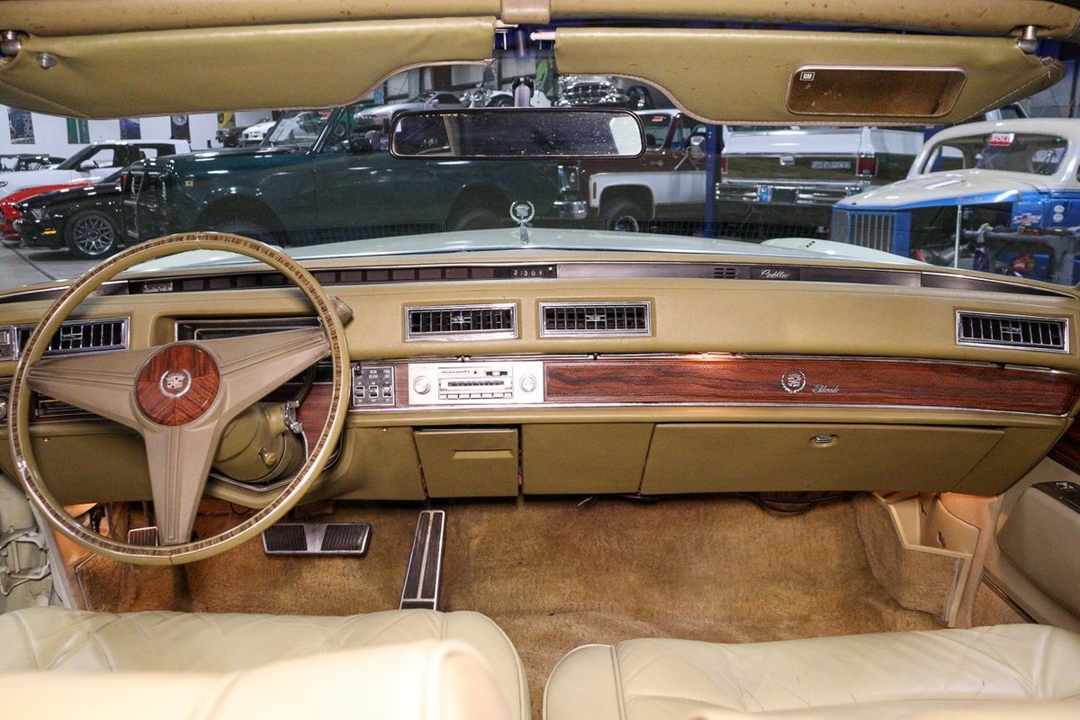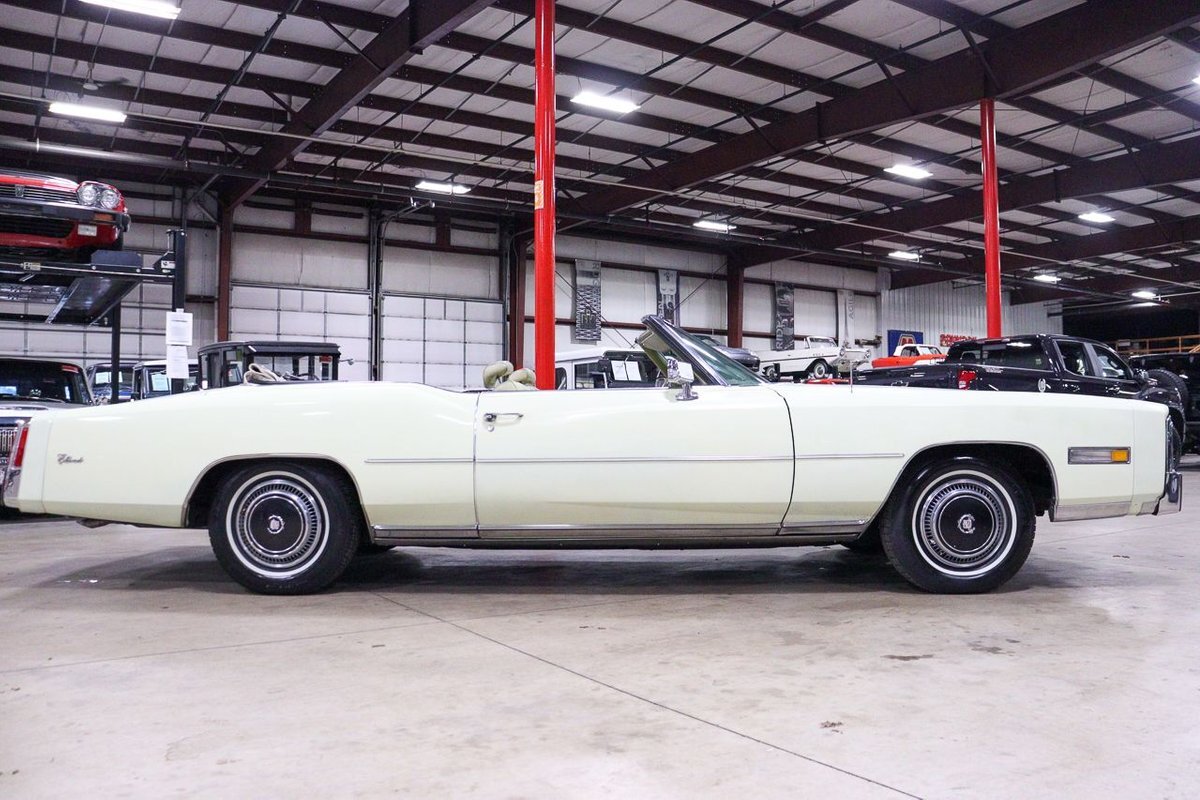 The 1976 Cadillac Eldorado Convertible was a luxurious, full-size car produced by the Cadillac division of General Motors. This car was a part of the Eldorado line that started in 1953, and was the last year that Cadillac produced a convertible until 1984. This example here is finished in Phoenician Ivory.