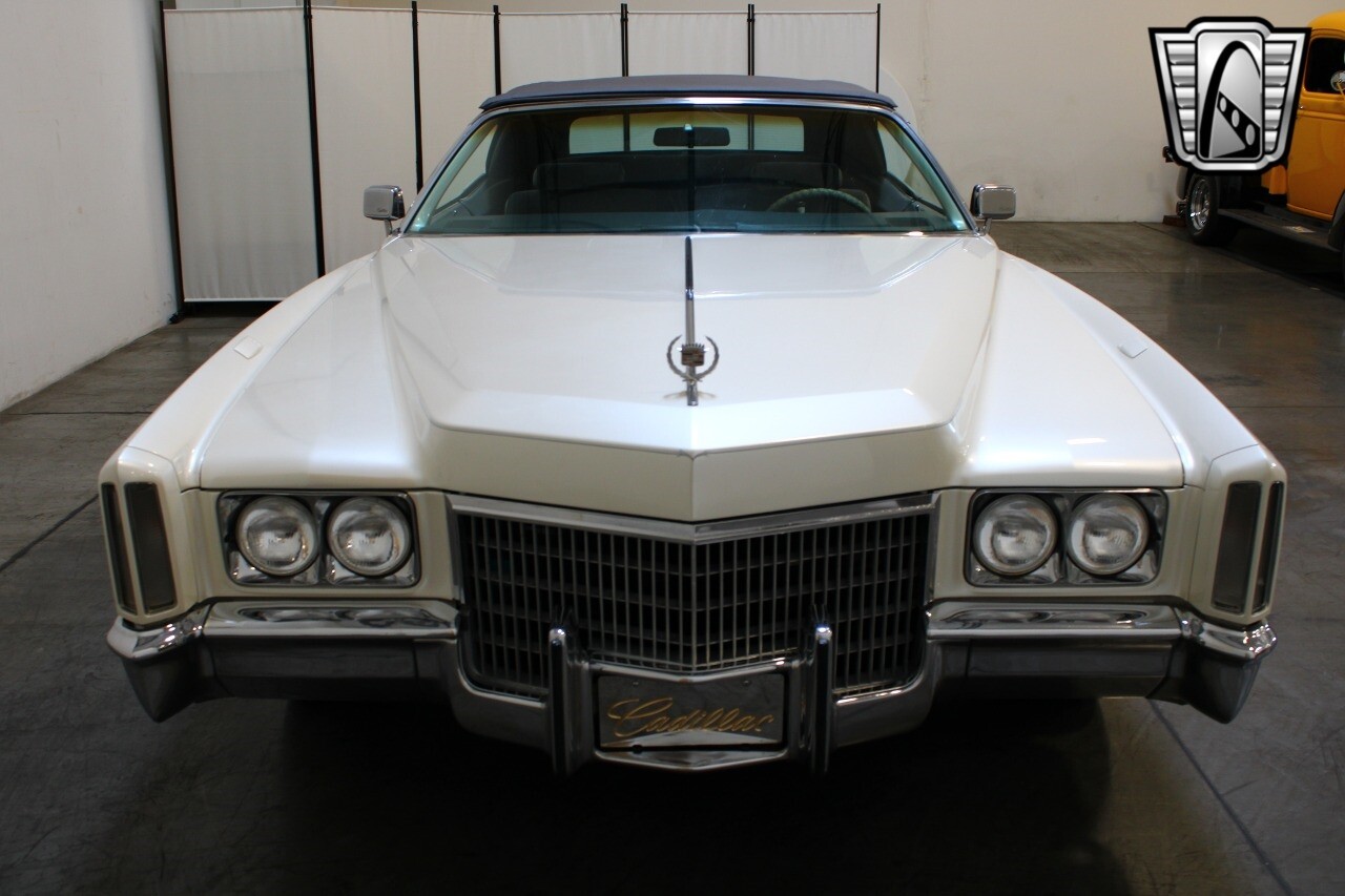 This 1971 Cadillac Eldorado Convertible is not just about the looks and performance, but it delivers Classic Elegance missing from most of todays cars! The Pearl White finish is gorgeous! It comes with a 2 piece Parade Boot with it's own storage bag. Updated LED lights with auto Dimmers. For the luxurious ride it is equipped with Air Shocks, new custom exhaust, MSD ignition and dual electric fans to help keep it cool. Only Mobile 1 Synthetic used. The hand made Boyd Coddington wheels add to the look.