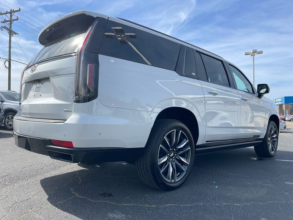 THIS VEHICLE INCLUDES THE FOLLOWING FEATURES AND OPTIONS: Cargo Convenience Package, Driver Assist Tech Package (Adaptive Cruise Control, Air Ride Adaptive Suspension, and Enhanced Automatic Emergency Braking), Heavy-Duty Trailering Package (Extra Capacity Cooling System, Trailer Tire Pressure Monitoring System, and Wired Auxiliary Trailer Camera (LPO)), Preferred Equipment Group 1SH (Air Ionizer, AKG Studio Reference 36-Speaker Audio System, Enhanced Automatic Parking Assist, Glass Breakage Sensor, Hitch Guidance w/Hitch View, In-Vehicle Trailering System App, Lane Keep Assist w/Lane Departure Warning, Platinum Interior Trim, Power Panoramic Tilt-Sliding Sunroof, Rear Camera Mirror, Rear Seat Entertainment System, and Trailer Side Blind Zone Alert), Escalade ESV Sport Platinum Super Cruise 4WD, Apple CarPlay/Android Auto, Auto High-beam Headlights, Bluetooth Headphones By AKG (LPO), Emergency communication system: OnStar and Cadillac connected services capable, Garage door transmitter, Heated & Ventilated Driver & Front Passenger Seats, Heated rear seats, Heated steering wheel, Navigation System, Power Liftgate, Power Lumbar Massage Driver Seat, Power Lumbar Massage Front Passenger Seat, Power-Retractable Assist Steps, Rain sensing wipers, SiriusXM w/360L, Super Cruise, Turn signal indicator mirrors, and Wheels: 22 12-Spoke Polished Alloy/Dark Android Finish.