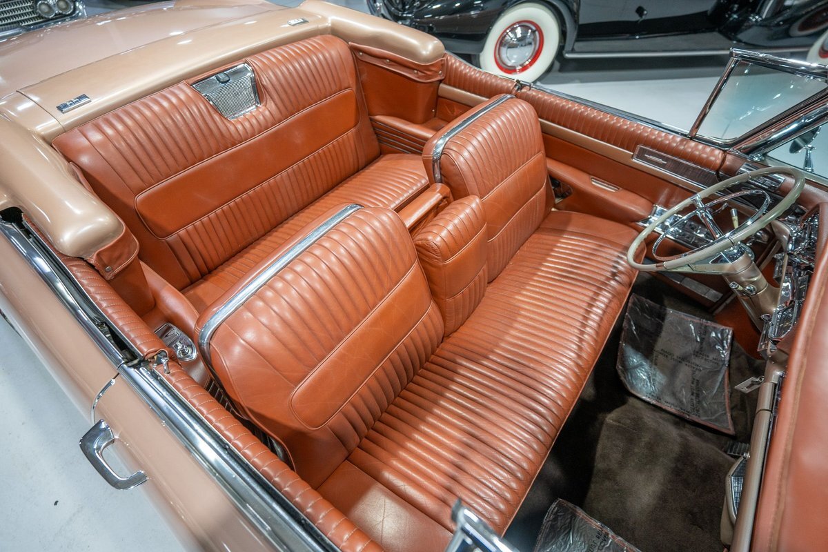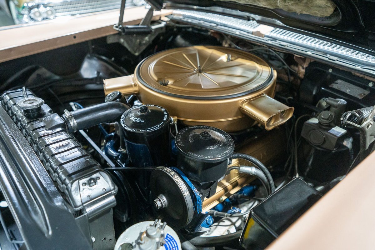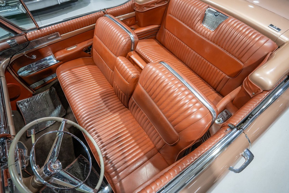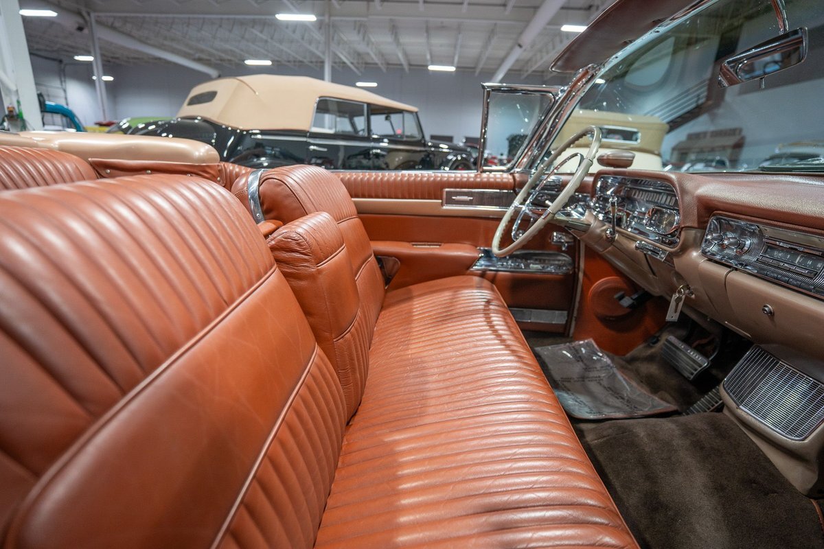 This 1958 Cadillac Eldorado Biarritz Convertible is a beautifully restored, well-optioned top-of-the-line convertible. An automobile sales downturn in 1958 affected the Cadillac division of General Motors, along with virtually all of America's automakers. Caused by an economic recession, the sales slump was the first major setback for American automakers since World War II as the economy had been rising ever since then. Nonetheless, 1958 was a celebratory year for Cadillac and its parent company GM. For General Motors, the America's largest automaker celebrated its 50th anniversary. For Cadillac, the GM marque celebrated a major milestone when it produced its two-millionth automobile. As the saying goes, "the first million is the hardest" and for Cadillac it proved true given the fact that it took Cadillac 47 years to build a million cars but only 8 years to reach the two-million mark. Even though the '58 recession caused Cadillac to sell 25,000 fewer units from the previous year, it surely wasn't for lack of effort or ability since the 1958 Cadillac design is widely considered one of the most elegant to ever come out of Cadillac. Starting with a redesigned grille that was larger and wider, and capped off with numerous cylindrical "cleats" that connected the horizontal and vertical cross-members. Due to a regulatory change, and like the rest of America's 1958 automobiles, the '58 Cadillacs also featured a quad headlight setup with each pair of headlights accented with decorative chrome trim. The new-look front ends also featured a staple of Cadillac design with "Dagmar" bumper guards along with relocated parking lights that now sat lower down. The side profile was also refined in 1958 with more elegant trim along with five horizonal windsplints ahead of the rear wheel housing. In the tail of the '58 Cadillac was a new-look tailfin design that was more muted than previous versions and an updated split-style rear bumper. Of course, the Eldorado Biarritz sat atop Cadillac's convertible heirarchy and therefore sporting elevated trim and improved standard options. Sporting an initial price tag of a whopping $7,500, nearly 30% higher than the standard Series 62, only 815 Eldorado Biarritz Convertibles were produced which makes this particular example quite a rare piece of automotive history. This Biarritz comes to us after having spent its most recent years in California and before that was cared for by southern-based collectors. Under the hood on this '58 Eldorado is a Numbers Matching 365 Cubic Inch V8 engine fed by a Tri-Power carburetor setup consisting of three dual-barrel carburetors that together generated 335 horsepower when new. The Tri-Power 365 V8 is backed by a Hydra-Matic Automatic transmission that makes this classy Cadillac an easy car for anybody to drive. Exhaust exits the numbers matching V8 via a dual exhaust setup that generates a nice throaty sound out the rear. Being that Cadillac sat atop the General Motors hierarchy and the Eldorado Biarritz was the top-of-the-line model, this convertible comes loaded with options! Power steering improves the overall driving experience on this Cadillac Eldorado since it makes squeezing into tight spots at the local car show or drive-in much easier. Further helping in manuvering this Cadillac is an adjustable chrome outside driver's side mirror. With power brakes, bringing this 5,000+ pound convertible to complete stop is simplified as well and a welcome addition on any classic cruiser from the 1950s. Riding on a set of wide whitewalls mounted on the special Sabre wheels, this '58 Eldorado Biarritz has a fantastic look cruising down the road. The mocha cloth power convertible top is in excellent condition and it goes up and down with the simple flick of switch mounted under the dashboard. When in the lowered position, the powered convertible top tucks neatly underneath a color-matched Parade Boot. The exterior of this '58 Cadillac Eldorado has been correctly refinished in a beautiful Desert Bronze, completing the wonderful exterior look of the car. The interior of this 1958 Cadillac Eldorado Biarritz is stunning! The front and rear bench seats have been correctly reupholstered in a distinguished Copper brown leather. The front leather bench seat is equipped with a folding armrest and is power adjustable as well. The matching upholstered door panels, chocolate brown carpeting, padded dash, and steering wheel are all in wonderful condition and retain a nice stock appearance. All four power windows are easily raised and lowered via door mounted switches. The chrome instrument cluster is equipped with a 120 MPH speedometer, temperature gauge, fuel gauge, and clock. Mounted atop the padded dash is an Autronic eye which is a neat novelty of the 1950s. The dash is finished with a push-button AM radio and locking glovebox. Stowed away in the glovebox and trunk is an upgraded AM/FM/XM/CD entertainment system and a trunk mounted CD changer, so that you can listen to all of your tunes while cruising down the road. Whether you're buying your first classic car or you're adding to an existing collection of Cadillacs, this 1958 Cadillac Eldorado Biarritz Convertible would make an excellent choice. Give Ellingson's a call today at763-428-7337!