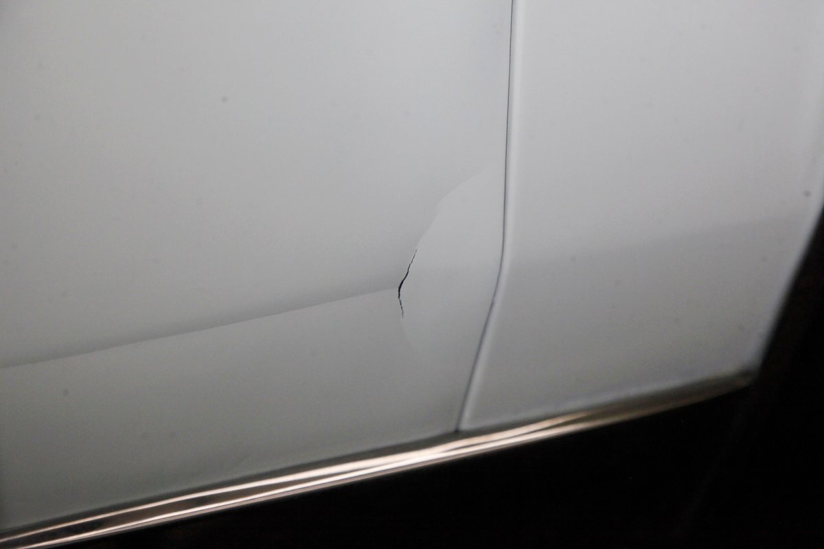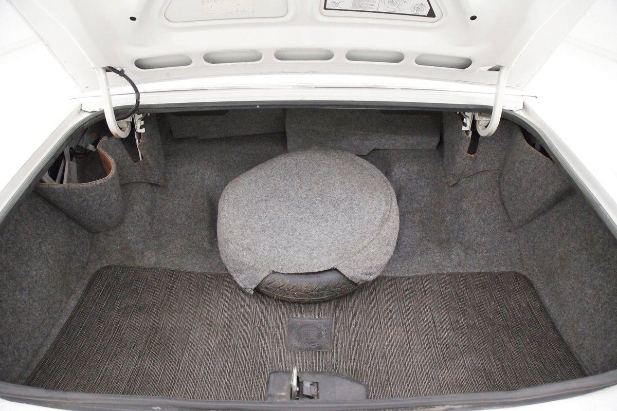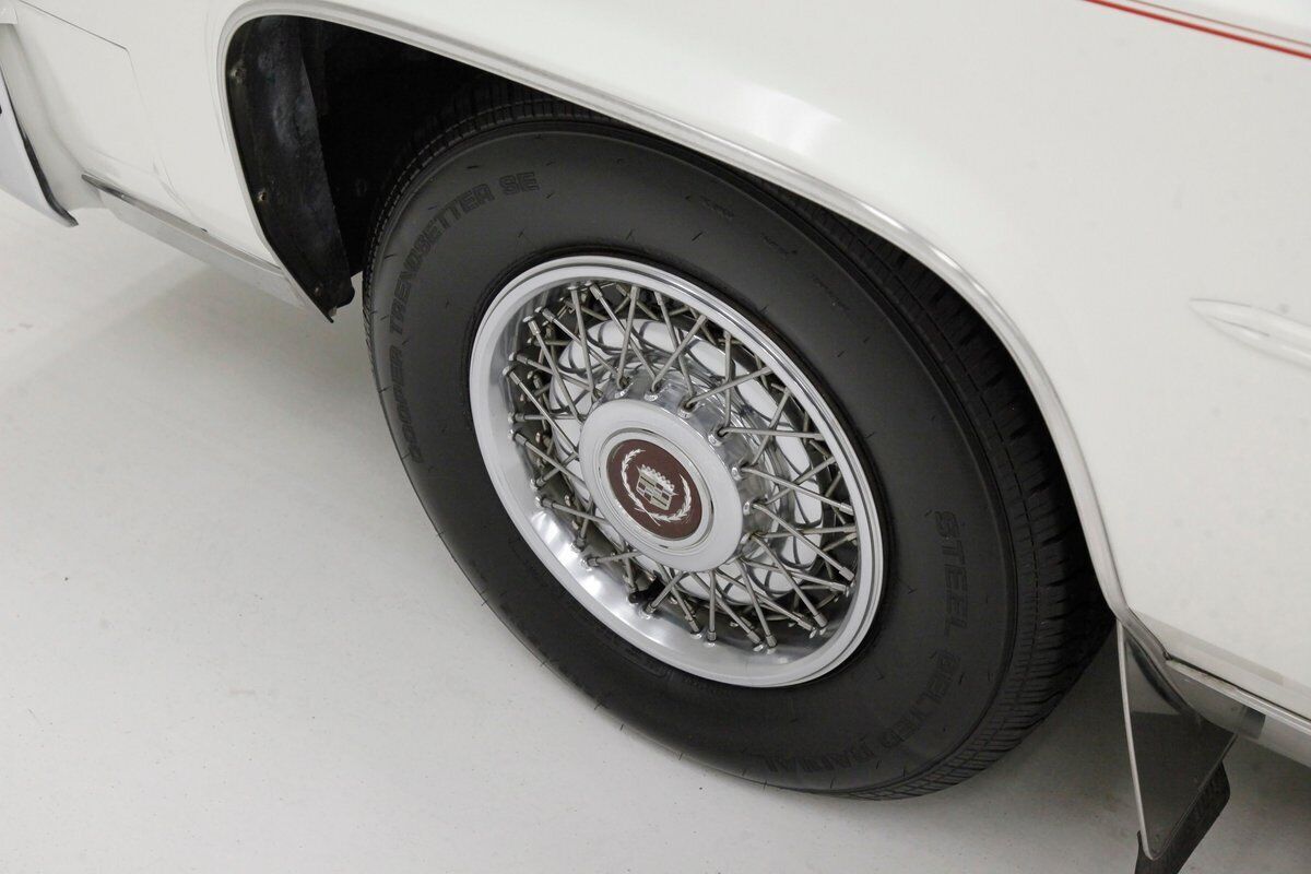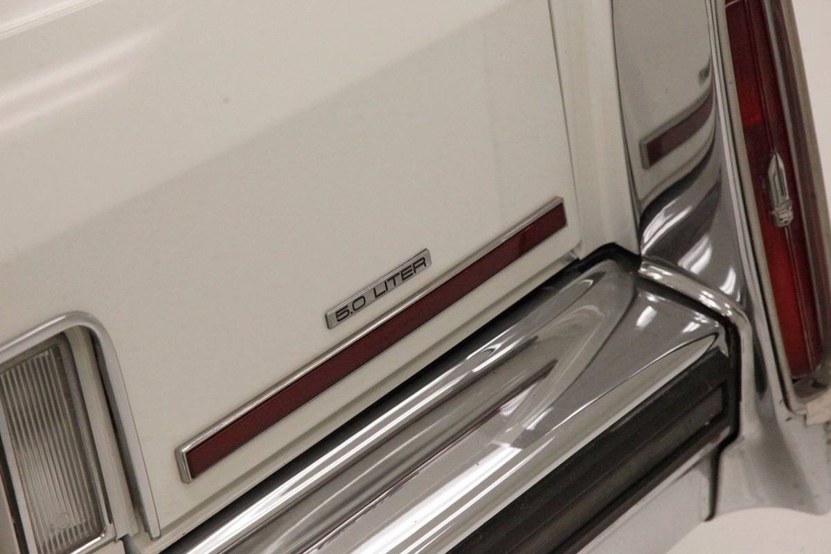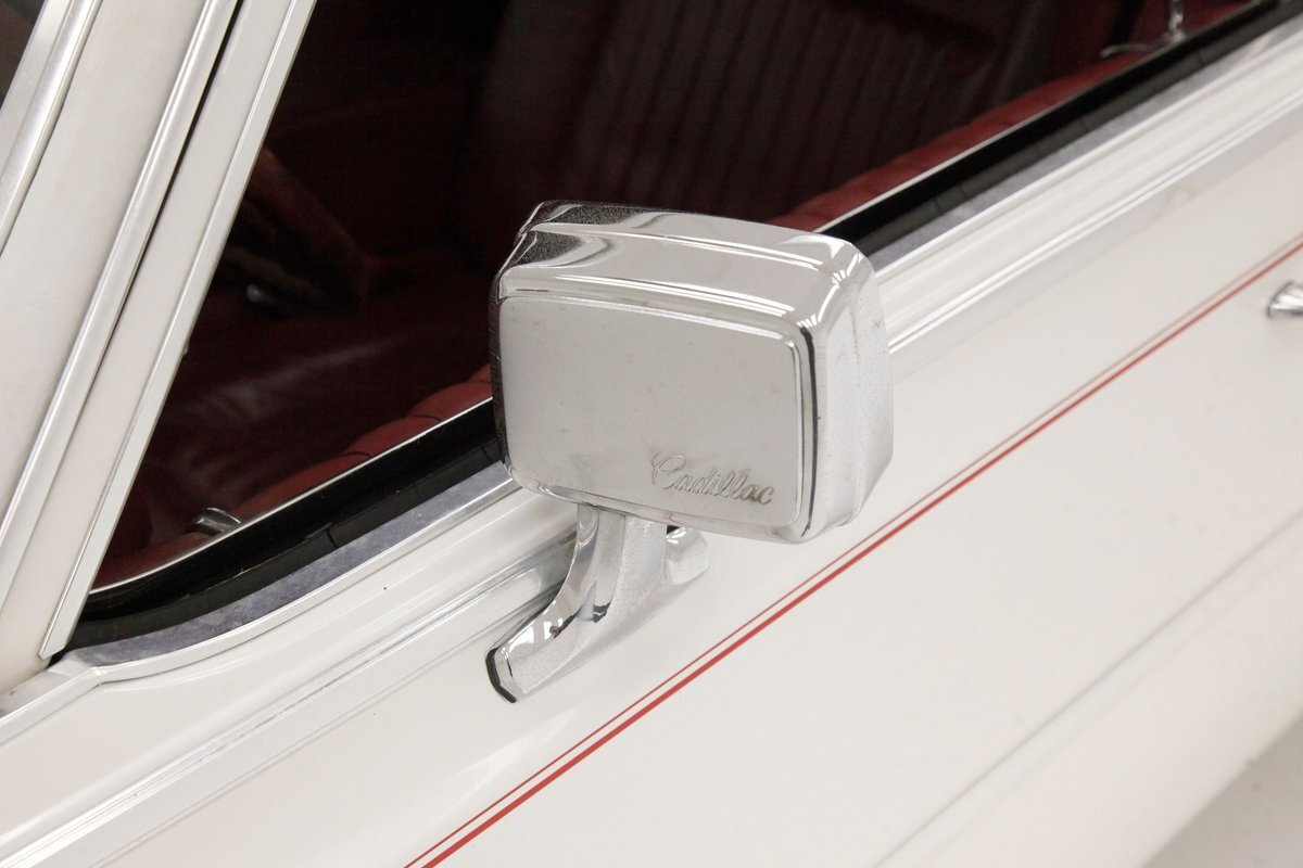 The gold faded to silver wreathed, cloisonne center crowned badge leads the way on top of the V style egg crate chromed grille which is flanked by some serious spare and rectangle design in the form of dual headlights. Just below the horizontal turn signals with a winged crown crest adhered to them, wrap around the front quarters, where they have some running lights just above them. Below all this late 80's menagerie is a clean chromed bumper with some rubber strips inserted. A large stainless rocker covering takes over up front of the wheel well and works its way to the rear of the car. This is a 4-door luxury sedan and for the gaps of this we note they are all well minded. On the roof is a new padded vinyl top in white just like the rest of the exterior. The three bedroom size trunk lid is framed on either side by vertical big bezeled taillights and more caddy crests in their centers. A shiny rear bumper is below, and I can see no problems visually with this rear framer. Faded gold leafed crown crests are peppering the exterior throughout the car, and for the chromed wire wheel covers they are also not to be out done. Finally, some tasteful red pin striping makes its way throughout the edges and panels of this wonderful piece of Detroit iron. Overall the color matched repaint presents well with some minor chips and inclusion but the body remains rust free.
