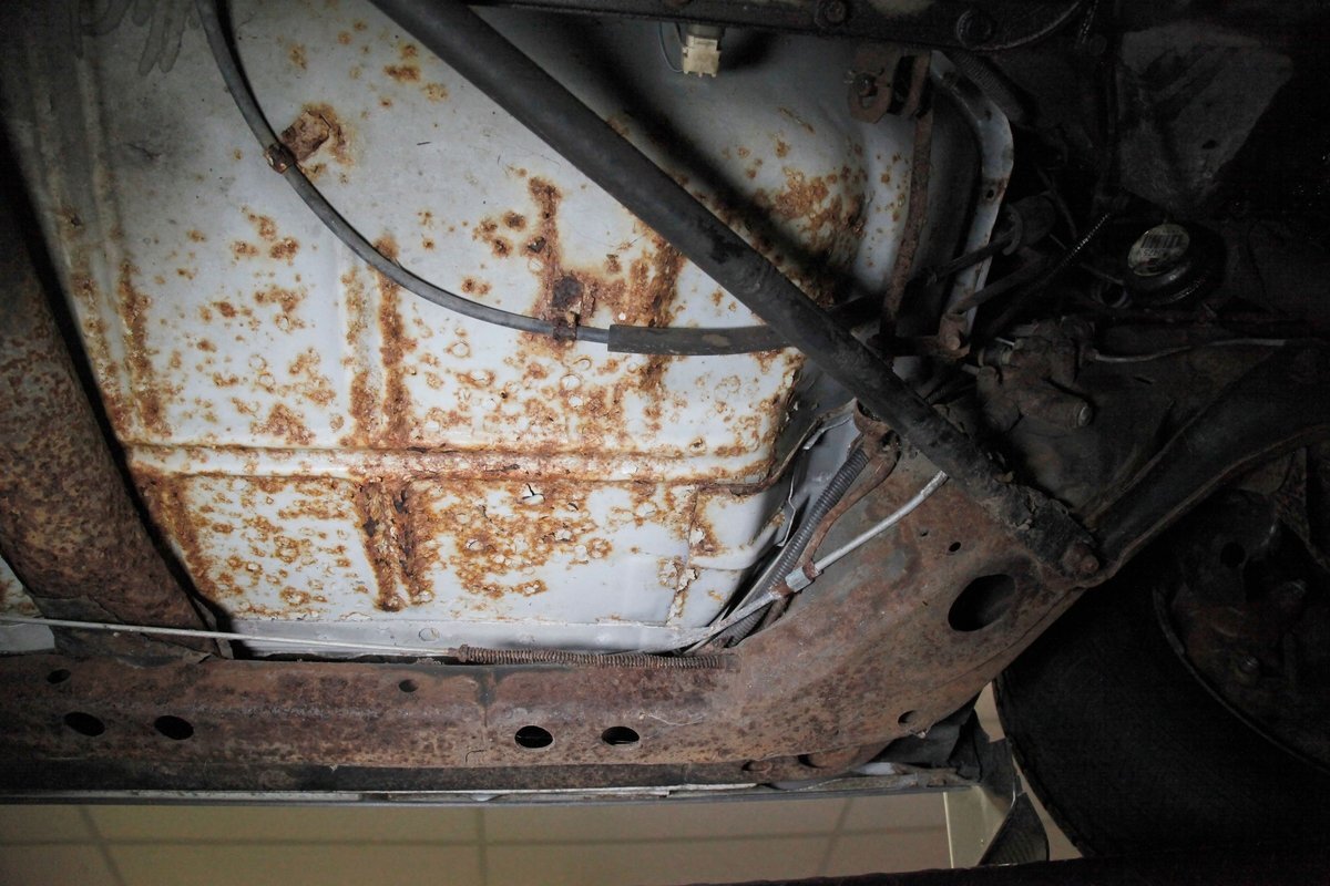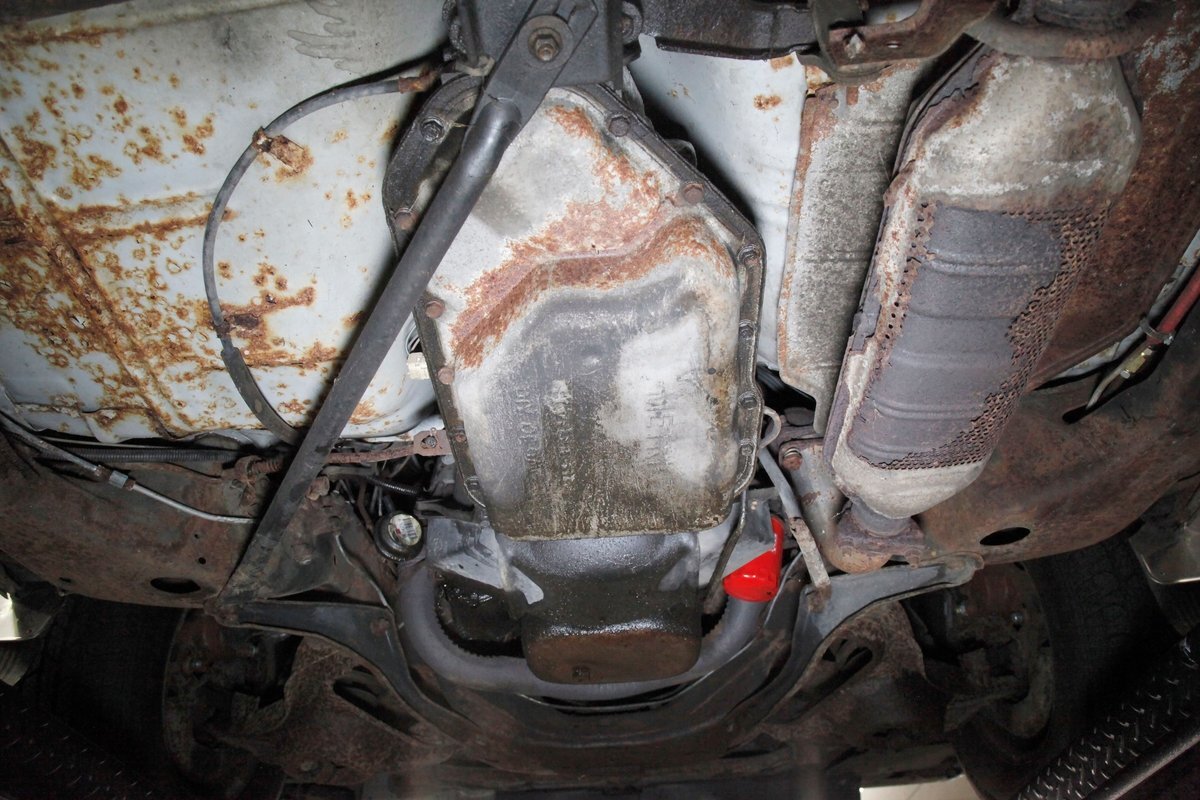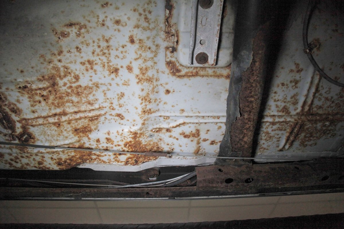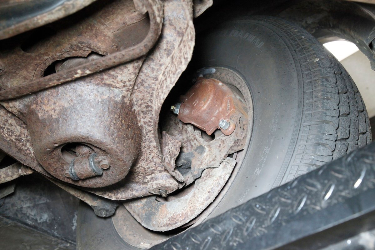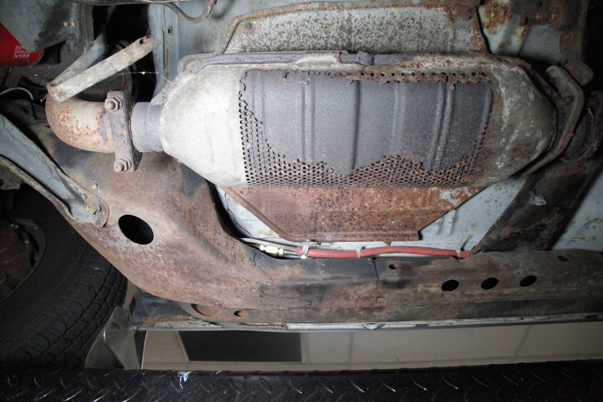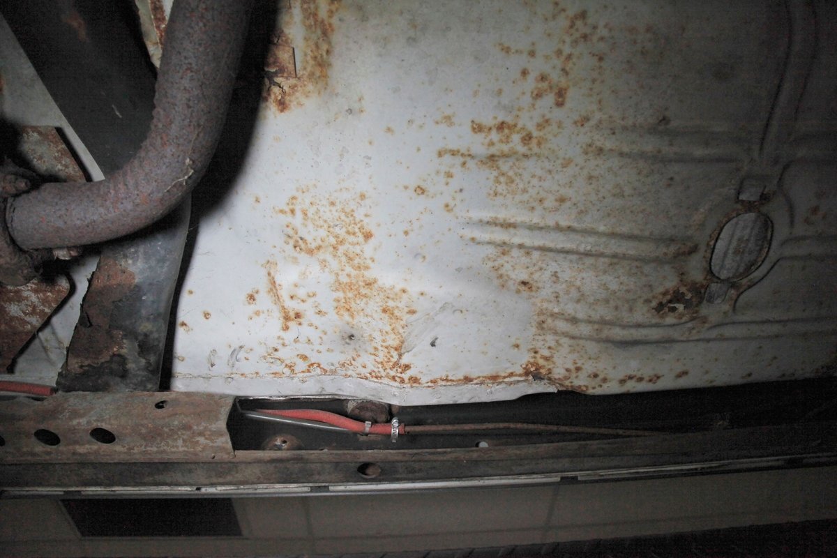 Up on the lift and it can be proven from the appearance that this is a well cared for car. All surfaces are clean save for some road splatter over sparse surface rust and solid body on framing all covered in black undercoating. Independent coil springs up front and 4 link with coil springs for the back provide the cushy rode, and power disc fronts and power drums backs all with new hoses provide the stopping.