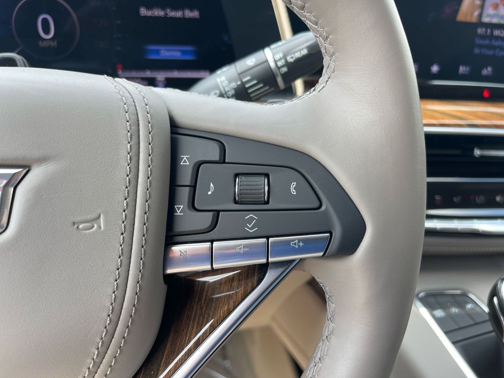 THIS VEHICLE INCLUDES THE FOLLOWING FEATURES AND OPTIONS: Touring Package (Air Ride Adaptive Suspension, Illuminating Front & Rear Sill Plates, and Soft Closing Front & Rear Doors), 4WD, Whisper Beige w/Gideon Accents w/Full Semi-Aniline Leather Seat Trim, 16.9 Diagonal OLED Infotainment Screen, 2-Presets Memory For Driver Seat Adjuster, 3.23 Axle Ratio, 3rd row seats: split-bench, 4-Way Power Driver Lumbar Seat Adjuster, 4-Way Power Front Passenger Lumbar Seat Adjuster, 4-Wheel Disc Brakes, 8-Way Power Driver Seat Adjuster, 8-Way Power Front Passenger Seat Adjuster, A/V remote, ABS brakes, Adaptive Cruise Control, Adaptive suspension, Air Conditioning, AKG Studio Reference 36-Speaker Audio System, Alloy wheels, AM/FM radio: SiriusXM with 360L, Apple CarPlay/Android Auto, Audio memory, Auto High-beam Headlights, Auto tilt-away steering wheel, Auto-dimming door mirrors, Automatic Seat Belt Tightening, Automatic temperature control, Body-Color Door Handles, Brake assist, Bumpers: body-color, Compass, Cruise Control, Delay-off headlights, Door auto-latch, Door Lock & Latch Shields, Driver door bin, Driver vanity mirror, Dual front impact airbags, Dual front side impact airbags, Electronic Limited-Slip Differential, Electronic Stability Control, Emergency communication system: OnStar and Cadillac connected services capable, Enhanced Automatic Emergency Braking, Enhanced Automatic Parking Assist, Exterior Parking Camera Rear, Floor Console w/Covered Storage, Four wheel independent suspension, Front anti-roll bar, Front Bucket Seats, Front Center Armrest w/Storage, Front dual zone A/C, Front reading lights, Full Semi-Aniline Leather Seat Trim, Fully automatic headlights, Garage door transmitter, Genuine wood console insert, Genuine wood dashboard insert, Genuine wood door panel insert, Glass Breakage Sensor, HD Radio, Headphones, Heads-Up Display, Heated & Ventilated Driver & Front Passenger Seats, Heated door mirrors, Heated Driver & Front Passenger Seats, Heated front seats, Heated rear seats, Heated steering wheel, Hitch Guidance w/Hitch View, Illuminated entry, Integrated Trailer Brake Controller, Leather steering wheel, Low tire pressure warning, Magnetic Ride Control Suspension, Memory seat, Navigation System, Occupant sensing airbag, Outside temperature display, Overhead airbag, Overhead console, Panic alarm, Passenger door bin, Passenger vanity mirror, Platinum Interior Trim, Power door mirrors, Power driver seat, Power Liftgate, Power Lumbar Massage Driver Seat, Power Lumbar Massage Front Passenger Seat, Power moonroof, Power Panoramic Tilt-Sliding Sunroof, Power passenger seat, Power steering, Power windows, Radio data system, Radio: AM/FM w/Navigation, Rain sensing wipers, Rear air conditioning, Rear anti-roll bar, Rear audio controls, Rear Camera Mirror, Rear Camera Mirror Washer, Rear Cross Traffic Alert, Rear reading lights, Rear Seat Entertainment System, Rear window defroster, Rear window wiper, Reconfigurable Full-Color Head-Up Display, Remote keyless entry, Reverse Automatic Braking, Roof rack: rails only, Running Board Assist Steps, Security system, SiriusXM w/360L, Smart Trailer Integration Indicator, Split folding rear seat, Spoiler, Steering wheel memory, Steering wheel mounted audio controls, Tachometer, Teen Driver, Telescoping steering wheel, Theft-Deterrent Alarm System, Tilt steering wheel, Traction control, Trailer Side Blind Zone Alert, Trip computer, Turn signal indicator mirrors, Variably intermittent wipers, Vehicle Inclination Sensor, Vehicle Interior Movement Sensor, Ventilated front seats, Voltmeter, Wheels: 22 12-Spoke Polished Alloy/Dark Android Finish, and Wireless Apple CarPlay/Wireless Android Auto.