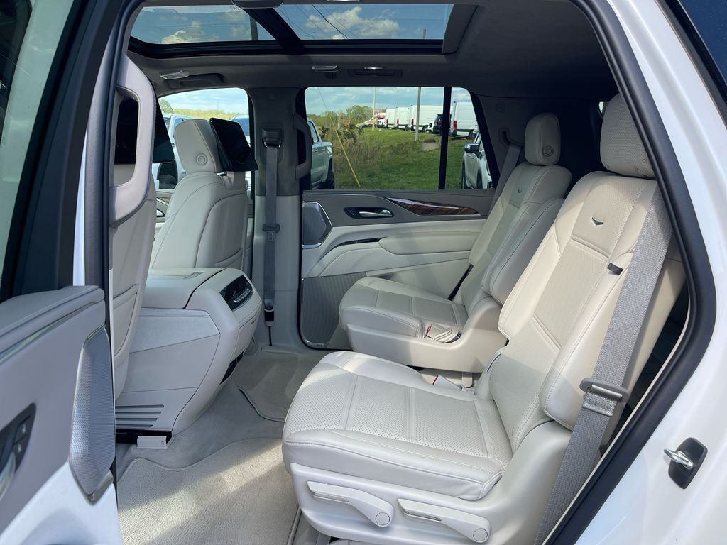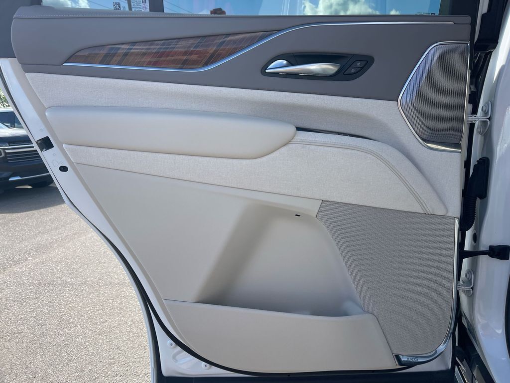 THIS VEHICLE INCLUDES THE FOLLOWING FEATURES AND OPTIONS: Touring Package (Air Ride Adaptive Suspension, Illuminating Front & Rear Sill Plates, and Soft Closing Front & Rear Doors), AWD, Whisper Beige w/Jet Black Accents w/Leather Seating Surfaces w/Precision Perf Inserts, 16.9 Diagonal OLED Infotainment Screen, 2-Presets Memory For Driver Seat Adjuster, 3.23 Axle Ratio, 3rd row seats: split-bench, 4-Way Power Driver Lumbar Seat Adjuster, 4-Way Power Front Passenger Lumbar Seat Adjuster, 4-Wheel Disc Brakes, 8-Way Power Driver Seat Adjuster, 8-Way Power Front Passenger Seat Adjuster, A/V remote, ABS brakes, Adaptive Cruise Control, Adaptive suspension, Air Conditioning, AKG Studio Reference 36-Speaker Audio System, Alloy wheels, AM/FM radio: SiriusXM with 360L, Apple CarPlay/Android Auto, Audio memory, Auto High-beam Headlights, Auto tilt-away steering wheel, Auto-dimming door mirrors, Automatic Seat Belt Tightening, Automatic temperature control, Body-Color Door Handles, Brake assist, Bumpers: body-color, Compass, Cruise Control, Delay-off headlights, Door auto-latch, Door Lock & Latch Shields, Driver door bin, Driver vanity mirror, Dual front impact airbags, Dual front side impact airbags, Electronic Limited-Slip Differential, Electronic Stability Control, Emergency communication system: OnStar and Cadillac connected services capable, Enhanced Automatic Emergency Braking, Enhanced Automatic Parking Assist, Exterior Parking Camera Rear, Floor Console w/Covered Storage, Four wheel independent suspension, Front anti-roll bar, Front Bucket Seats, Front Center Armrest w/Storage, Front dual zone A/C, Front reading lights, Full Semi-Aniline Leather Seat Trim, Fully automatic headlights, Garage door transmitter, Genuine wood console insert, Genuine wood dashboard insert, Genuine wood door panel insert, Glass Breakage Sensor, HD Radio, Headphones, Heads-Up Display, Heated & Ventilated Driver & Front Passenger Seats, Heated door mirrors, Heated Driver & Front Passenger Seats, Heated front seats, Heated rear seats, Heated steering wheel, Hitch Guidance w/Hitch View, Illuminated entry, Integrated Trailer Brake Controller, Leather steering wheel, Low tire pressure warning, Magnetic Ride Control Suspension, Memory seat, Navigation System, Occupant sensing airbag, Outside temperature display, Overhead airbag, Overhead console, Panic alarm, Passenger door bin, Passenger vanity mirror, Platinum Interior Trim, Power door mirrors, Power driver seat, Power Liftgate, Power Lumbar Massage Driver Seat, Power Lumbar Massage Front Passenger Seat, Power moonroof, Power Panoramic Tilt-Sliding Sunroof, Power passenger seat, Power steering, Power windows, Radio data system, Radio: AM/FM w/Navigation, Rain sensing wipers, Rear air conditioning, Rear anti-roll bar, Rear audio controls, Rear Camera Mirror, Rear Camera Mirror Washer, Rear Cross Traffic Alert, Rear reading lights, Rear Seat Entertainment System, Rear window defroster, Rear window wiper, Reconfigurable Full-Color Head-Up Display, Remote keyless entry, Reverse Automatic Braking, Roof rack: rails only, Running Board Assist Steps, Security system, SiriusXM w/360L, Smart Trailer Integration Indicator, Split folding rear seat, Spoiler, Steering wheel memory, Steering wheel mounted audio controls, Tachometer, Teen Driver, Telescoping steering wheel, Theft-Deterrent Alarm System, Tilt steering wheel, Traction control, Trailer Side Blind Zone Alert, Trip computer, Turn signal indicator mirrors, Variably intermittent wipers, Vehicle Inclination Sensor, Vehicle Interior Movement Sensor, Ventilated front seats, Voltmeter, Wheels: 22 12-Spoke Polished Alloy/Dark Android Finish, and Wireless Apple CarPlay/Wireless Android Auto.