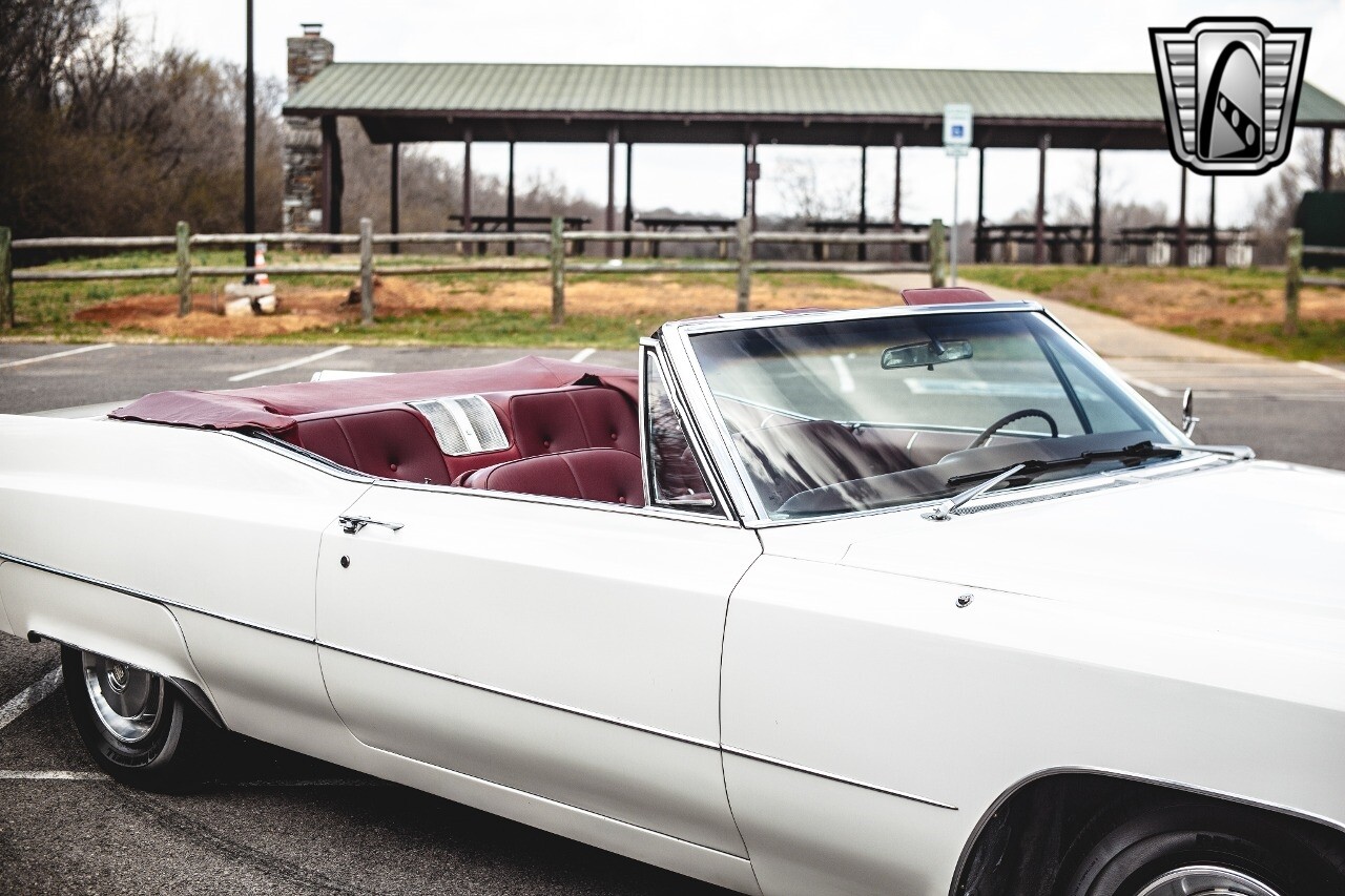 Gateway Classic Cars of Nashville is proud to present this 1967 Cadillac DeVille Convertible, a true icon of American luxury and style. This stunning vehicle is finished in a timeless white exterior color, beautifully contrasted by a vibrant red vinyl interior, offering a unique blend of elegance and excitement.