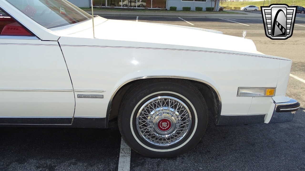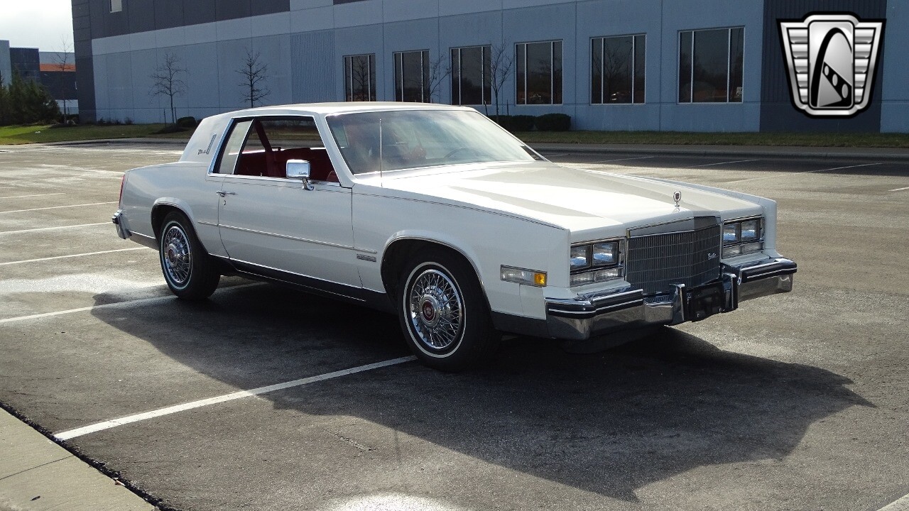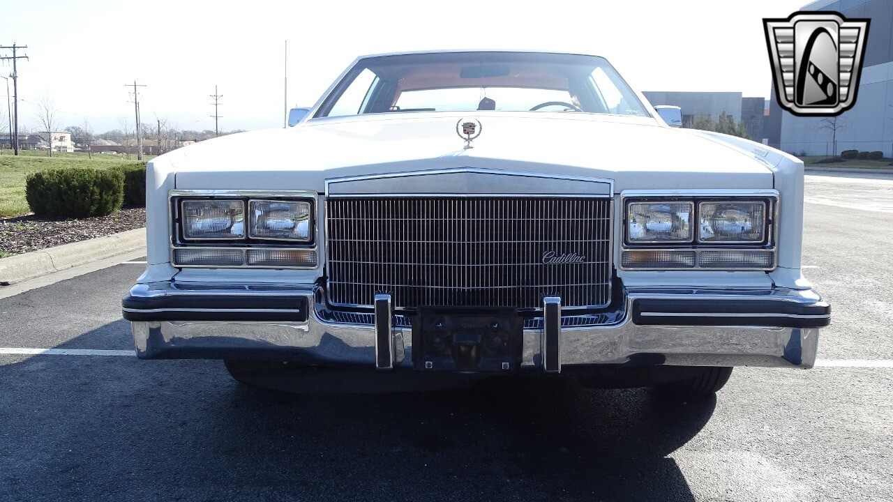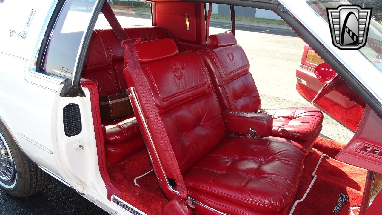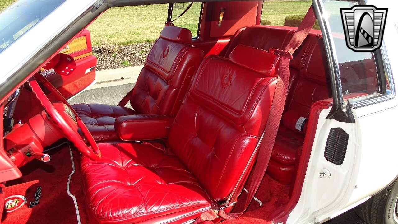Introducing the classic 1983 Cadillac Eldorado, a timeless piece of automotive history that captures the essence of luxury and style. This vehicle is presented in a stunning white exterior that nicely complements its vibrant red leather interior, creating a striking contrast that is sure to turn heads wherever you go.