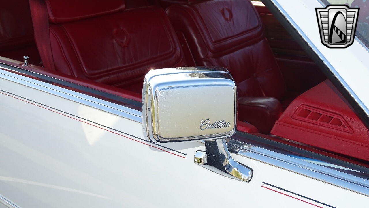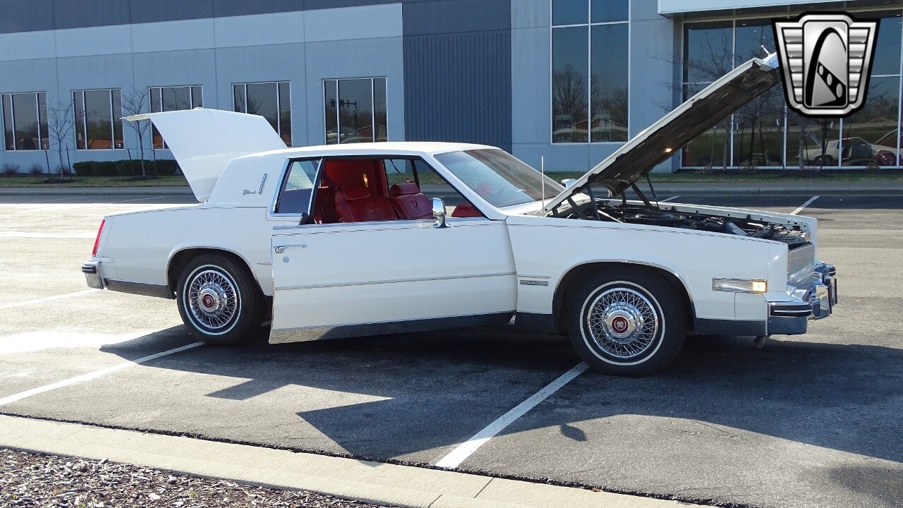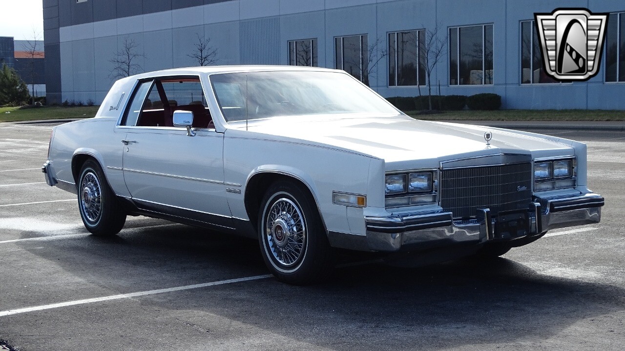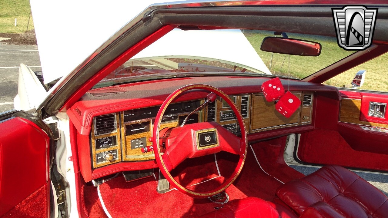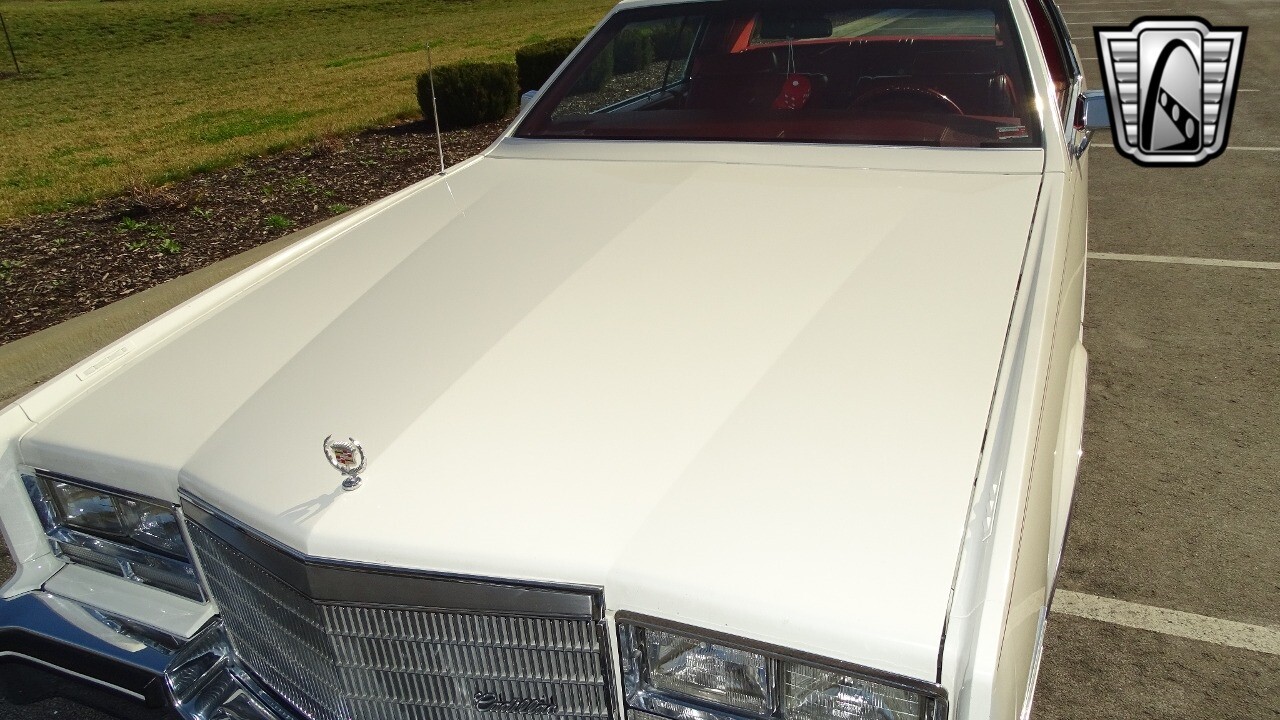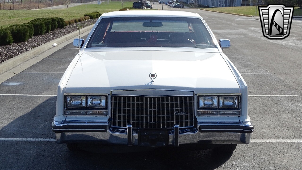 Introducing the classic 1983 Cadillac Eldorado, a timeless piece of automotive history that captures the essence of luxury and style. This vehicle is presented in a stunning white exterior that nicely complements its vibrant red leather interior, creating a striking contrast that is sure to turn heads wherever you go.